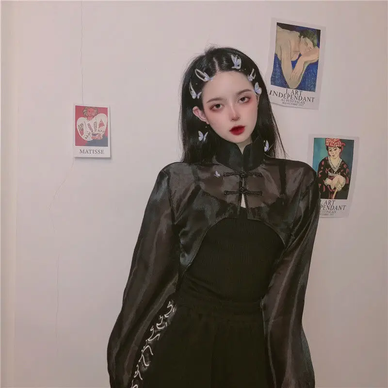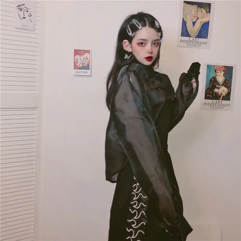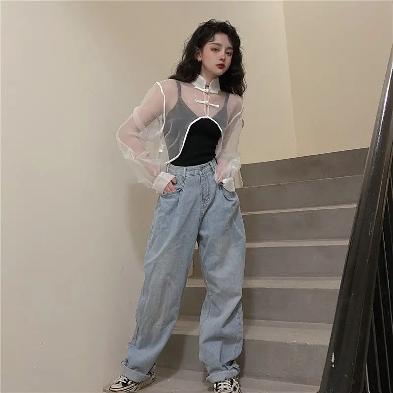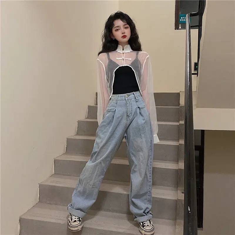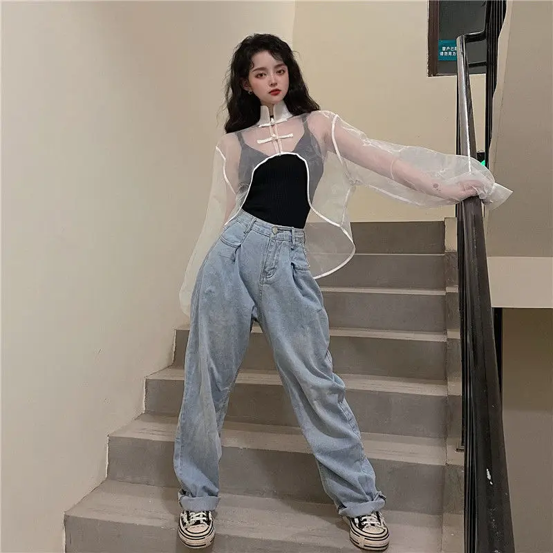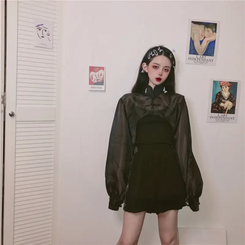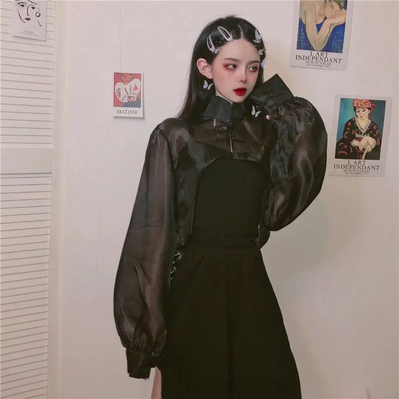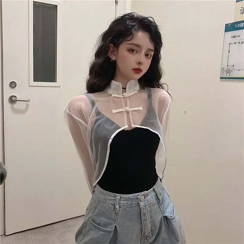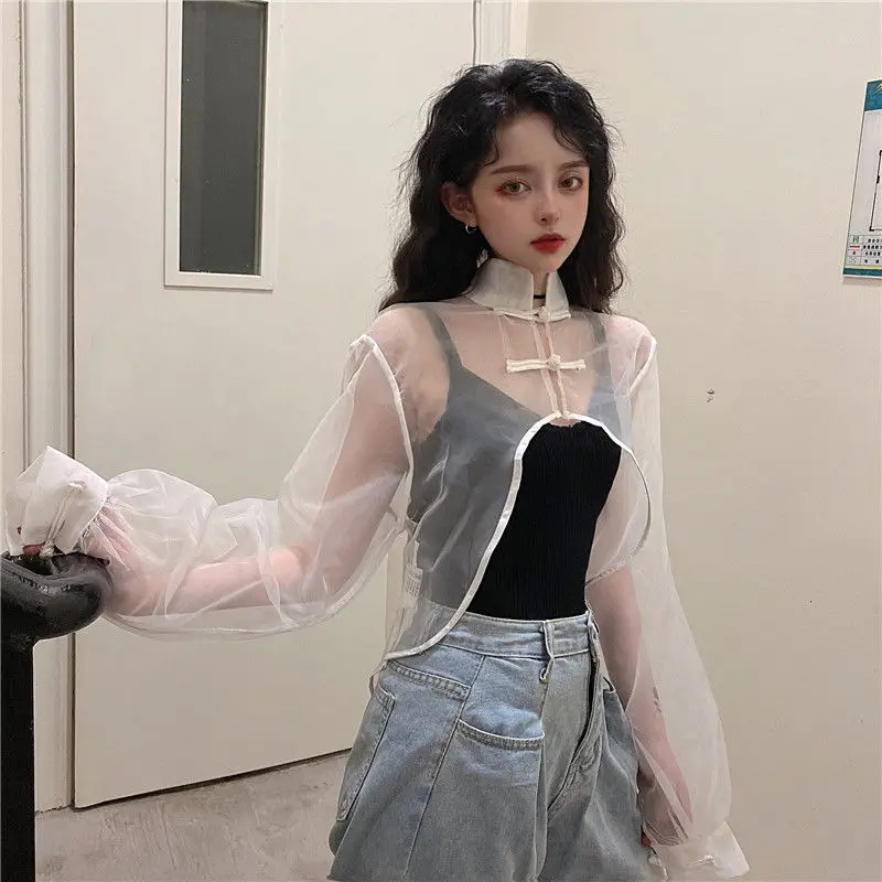 Advbridge Sexy Women Blouses Transparent Top Harajuku Crop White Black Shirt Long Sleeve Sweet Outerwear Chic Beautiful Ins Fashion