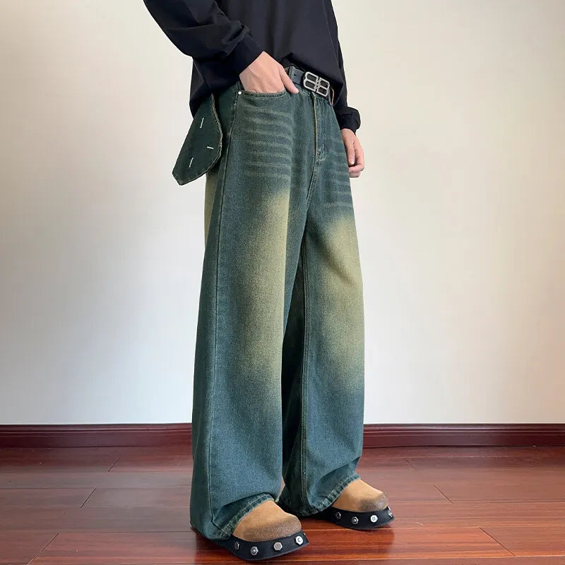 Advbridge Straight Jeans Men's Women's Chic Pocket Retro Fashion Pants High Street Loose Casual Wide Leg Denim Pants 2025 New trend-design