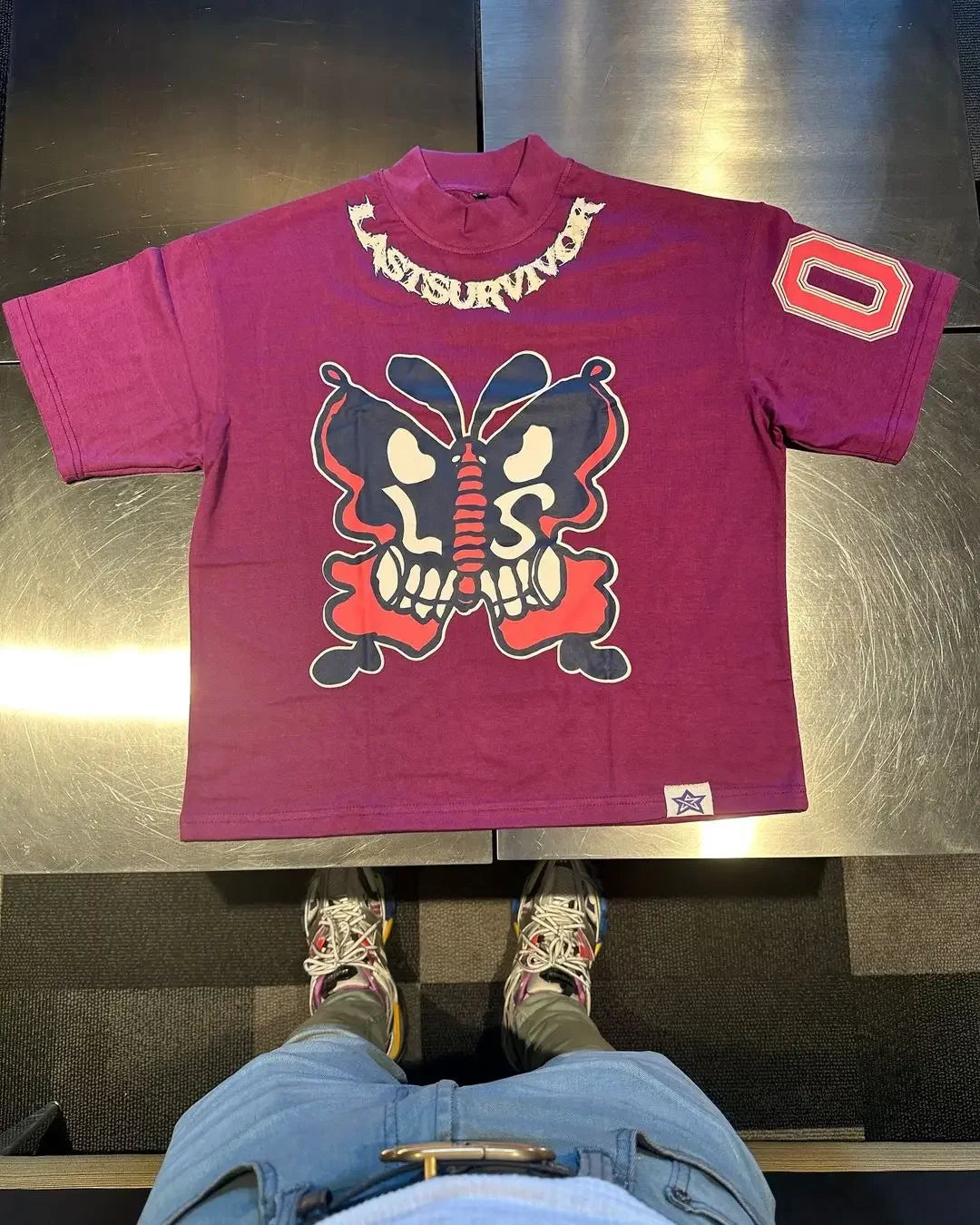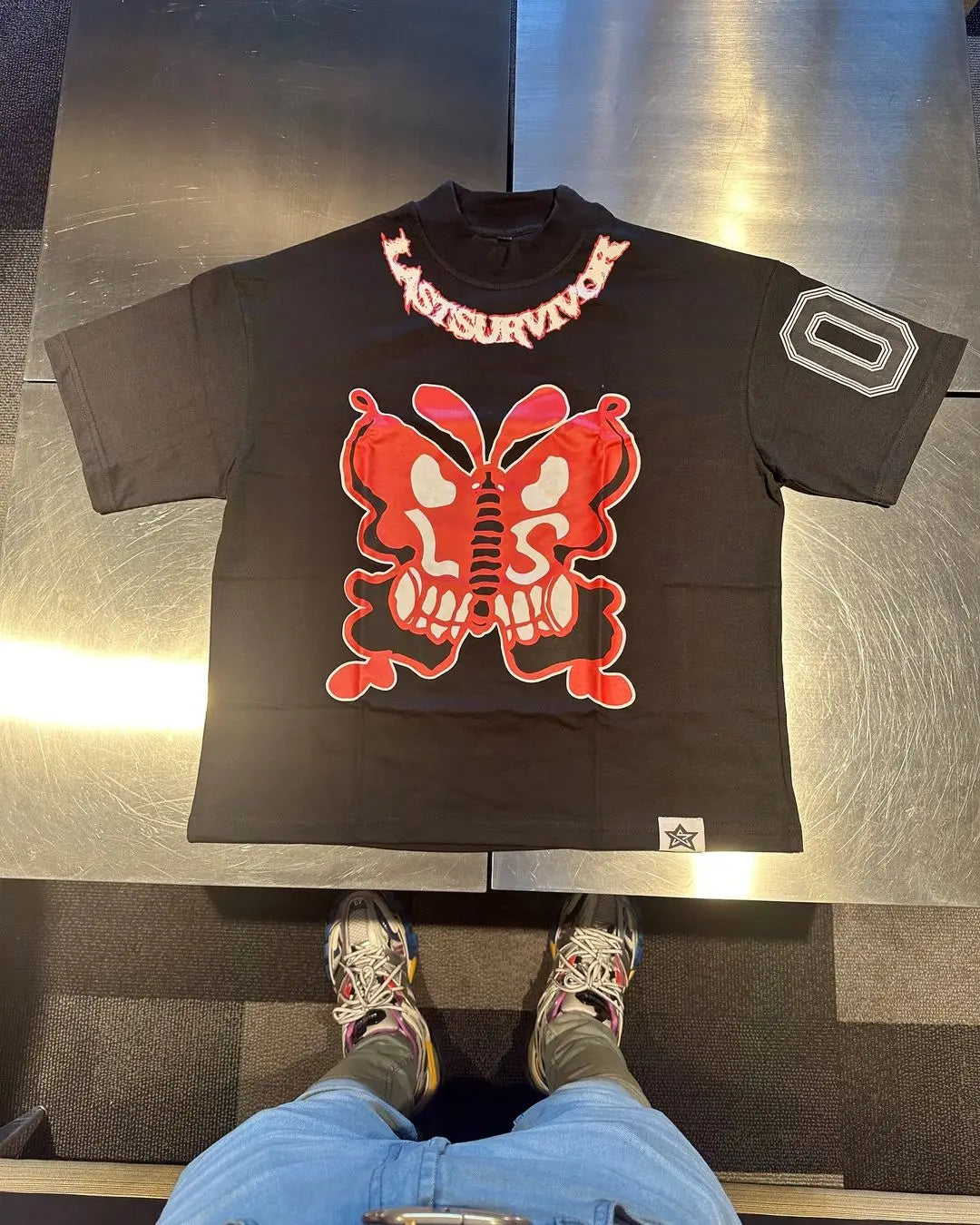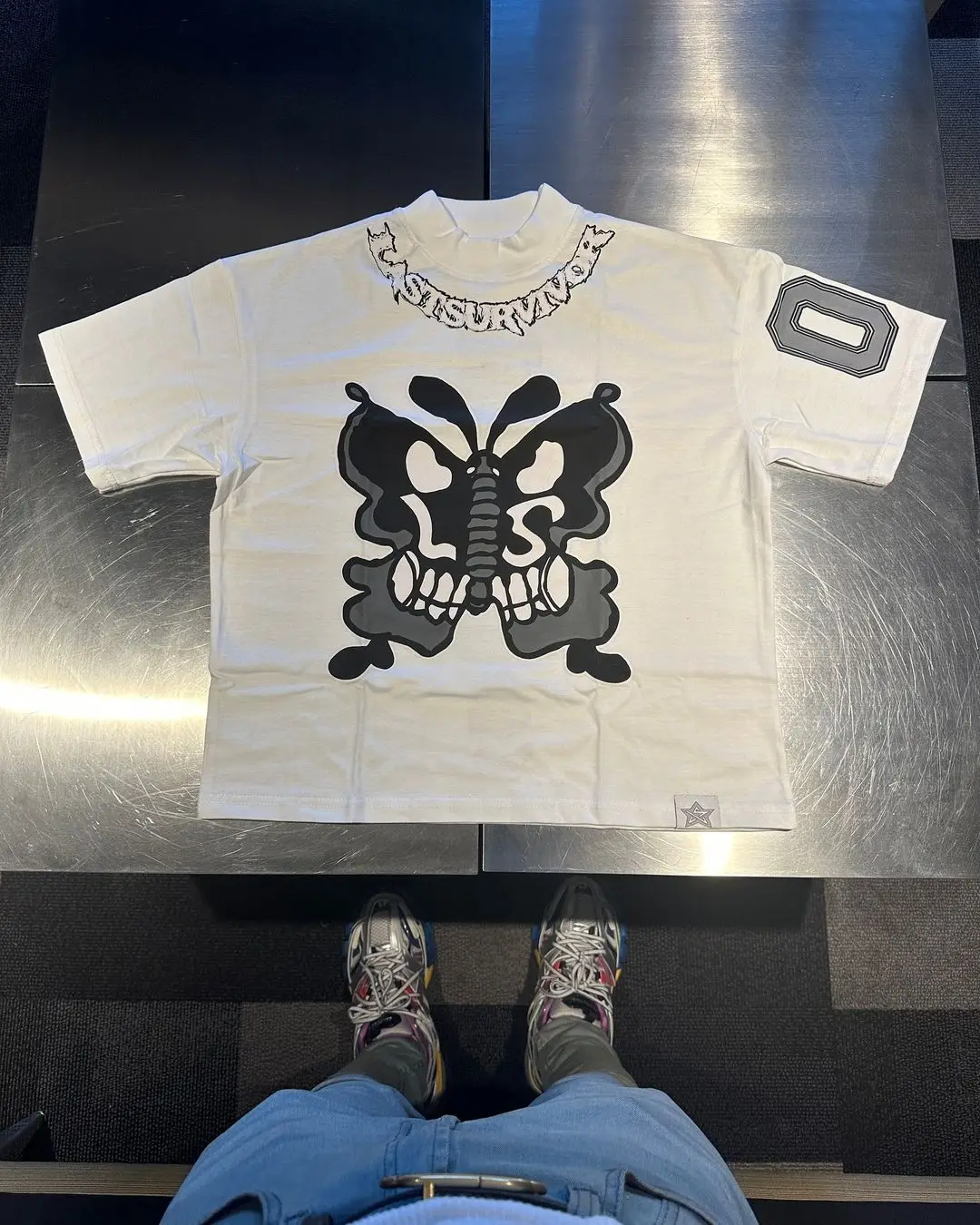 Advbridge Street T-shirt Harajuku Butterfly Print short sleeve men and women hip hop fashion round neck cotton short sleeve Y2K goth
