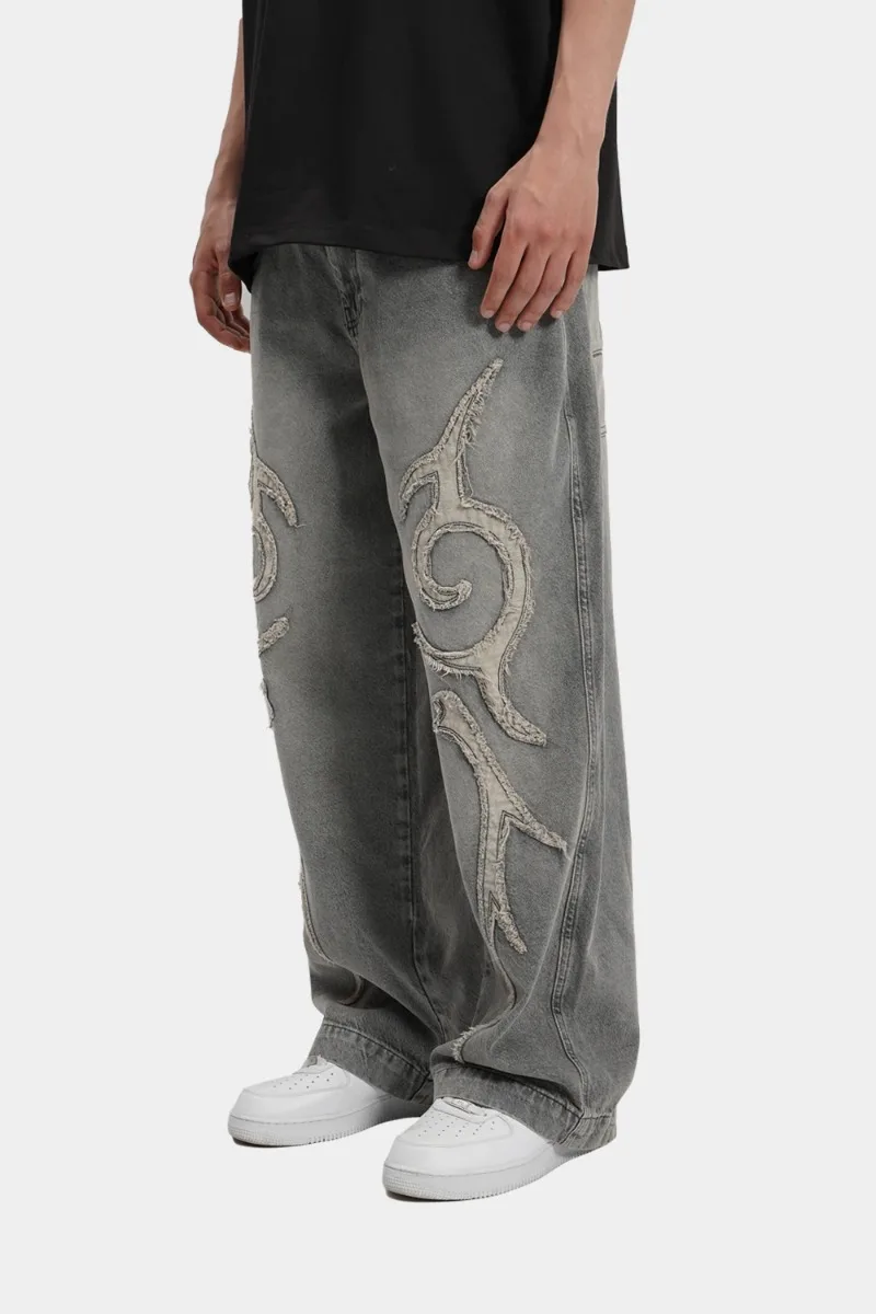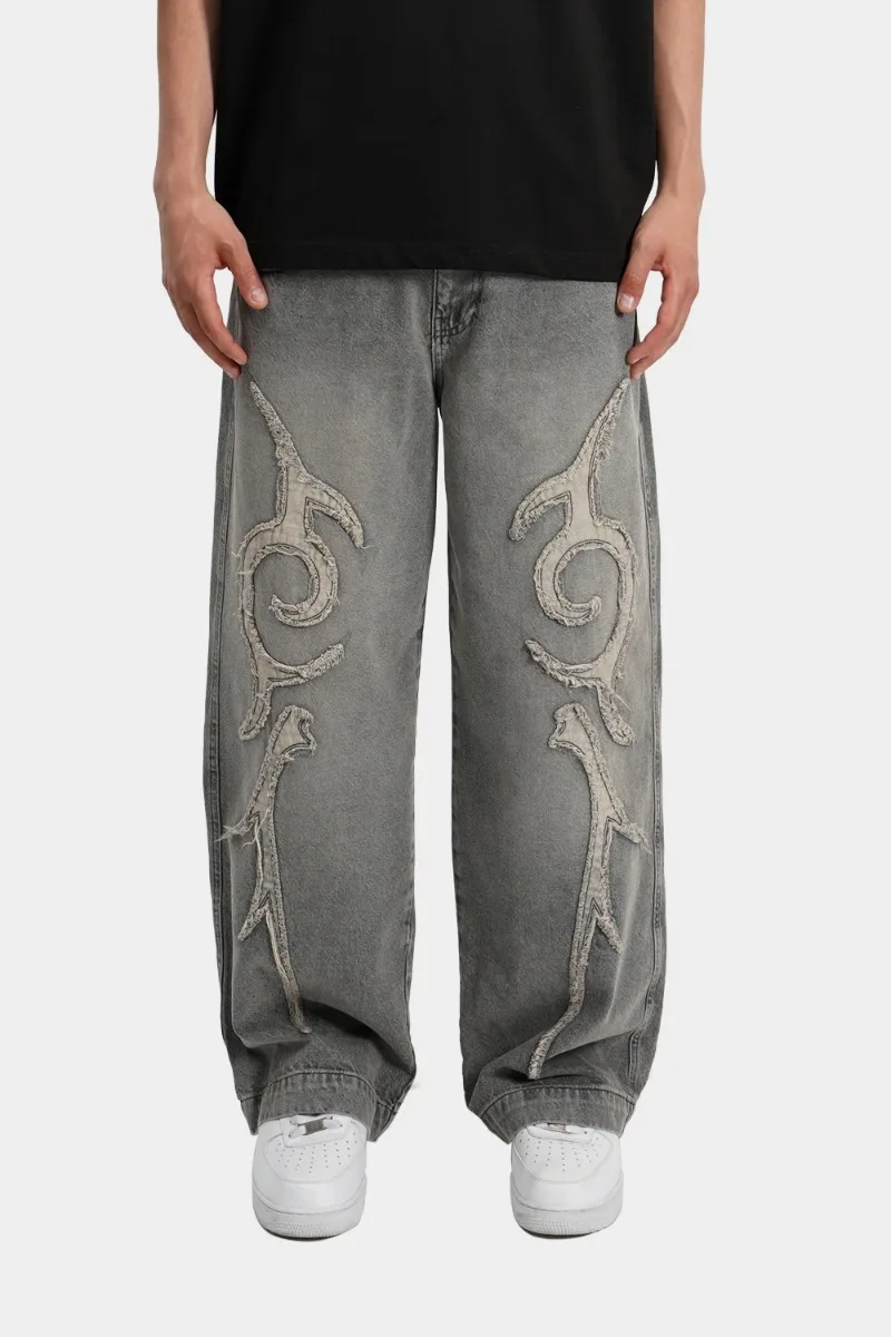 Advbridge Street Vintage Jeans New Y2K Harajuku Yellow Embroidery patch Baggy Jeans Denim Pants Mens Womens High Waist Wide Trousers