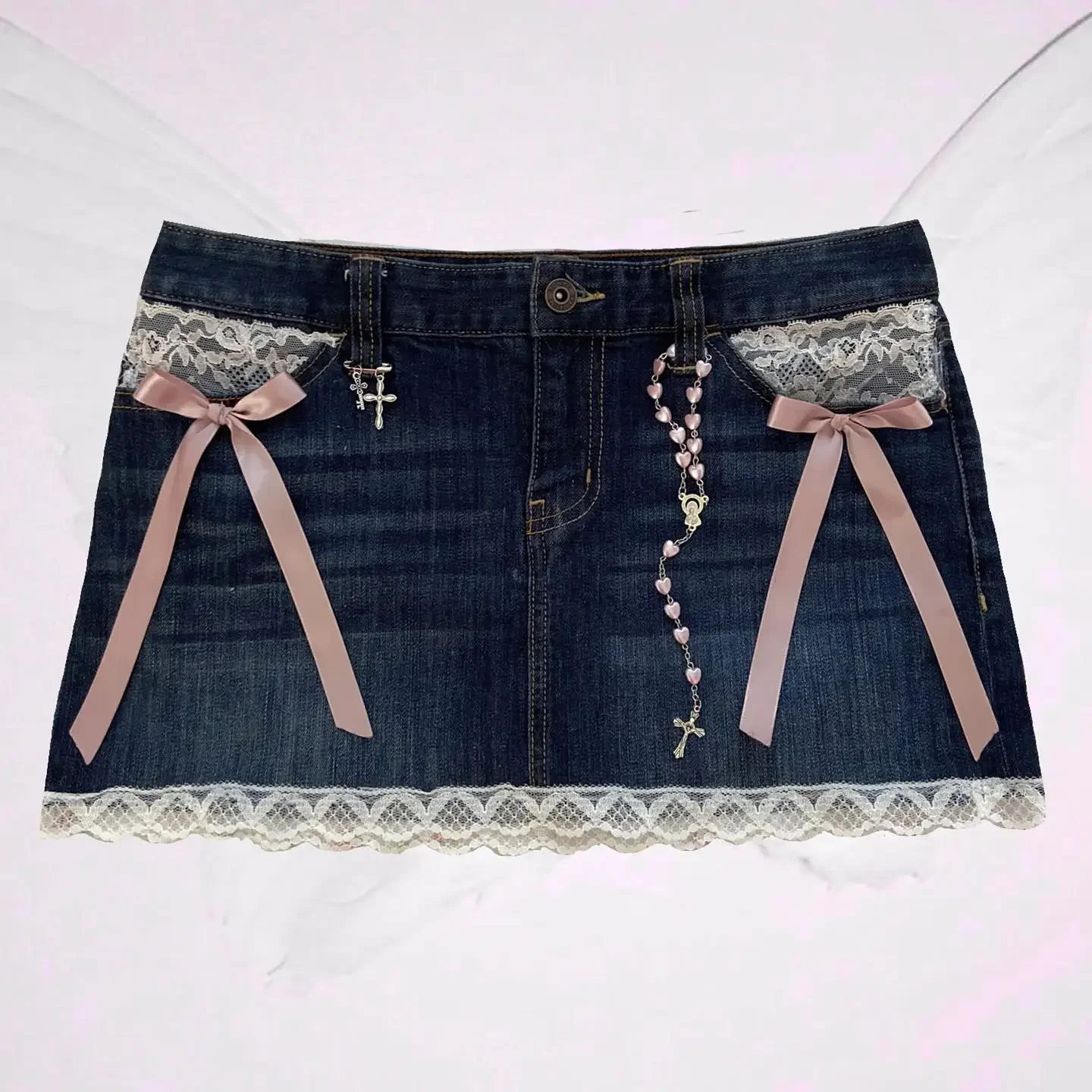 Advbridge Streetwear Skirt Y2K Womens Gothic Lace Sexy Retro Blue Mini Skirt Pleat A Line Girl Sweetheart High Waist Slim Mini Short Skirt