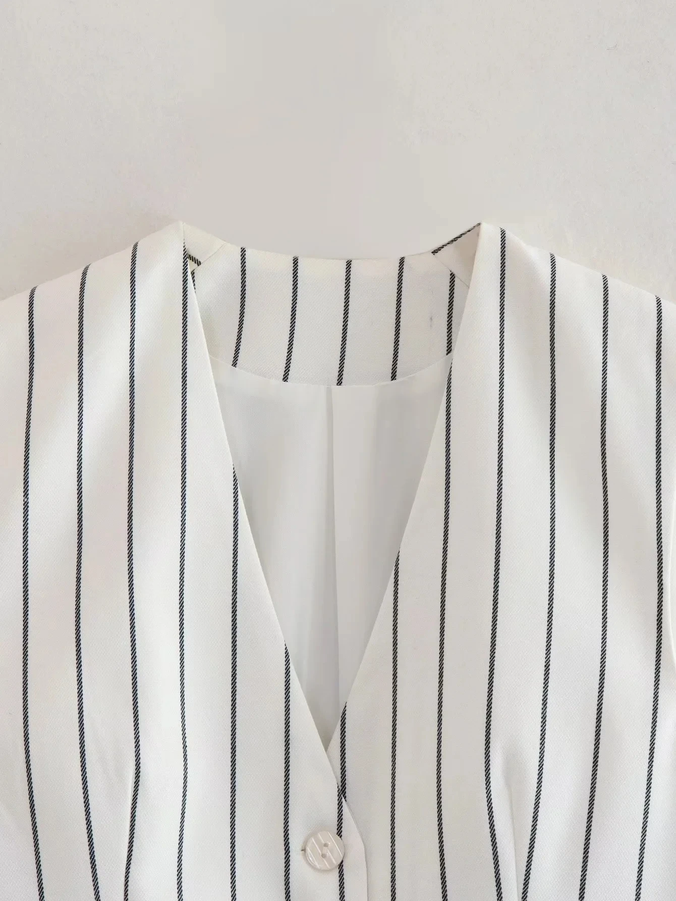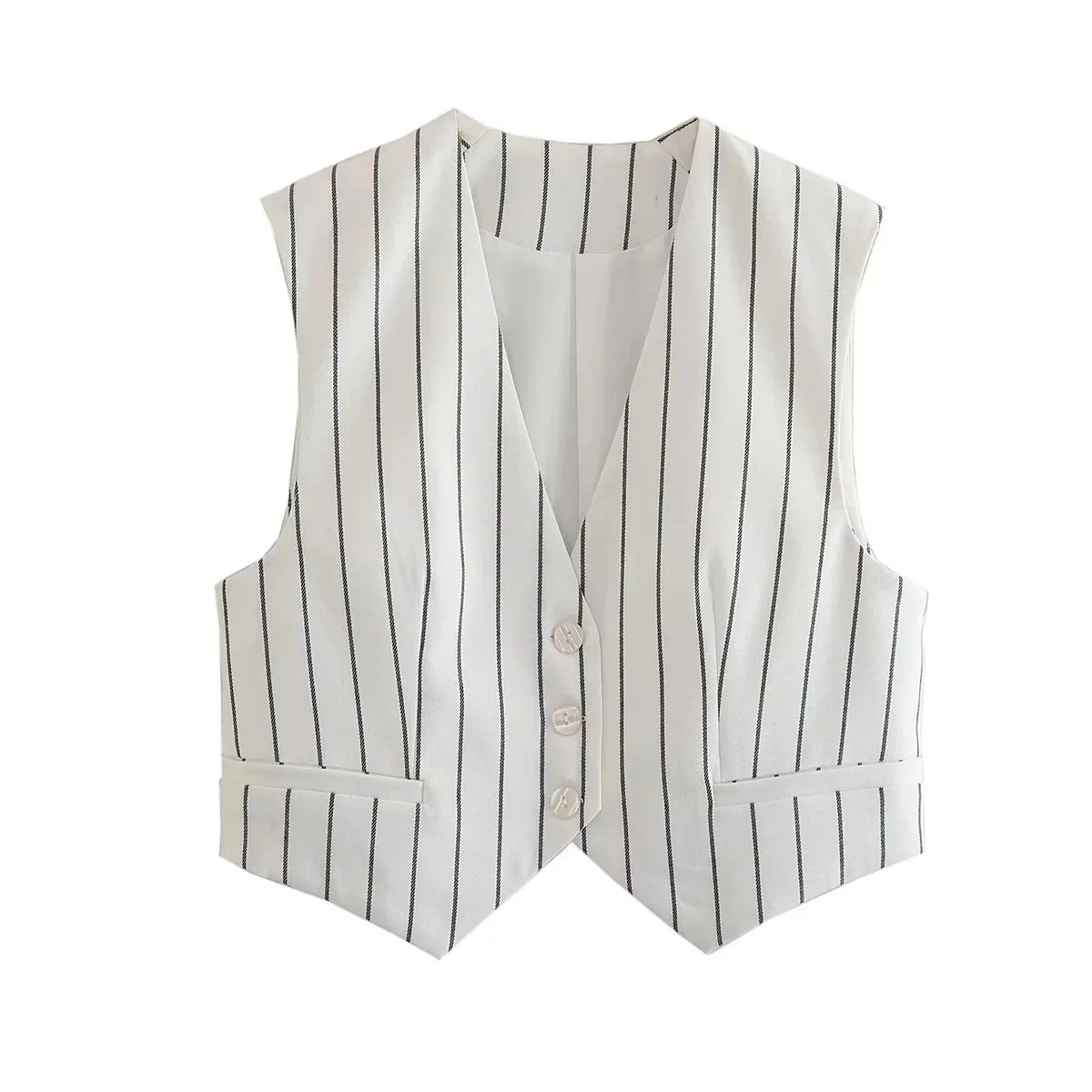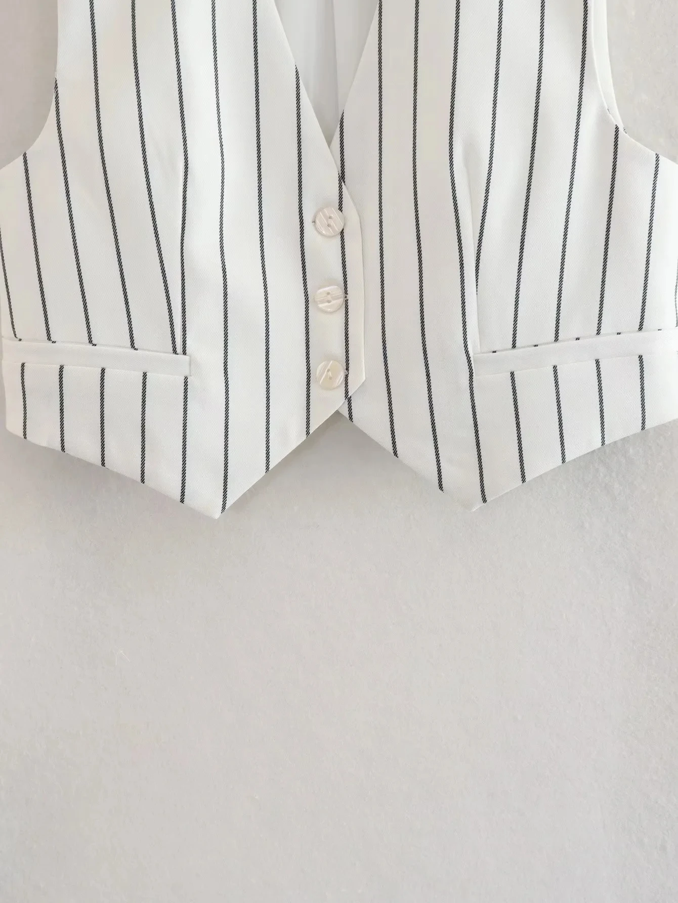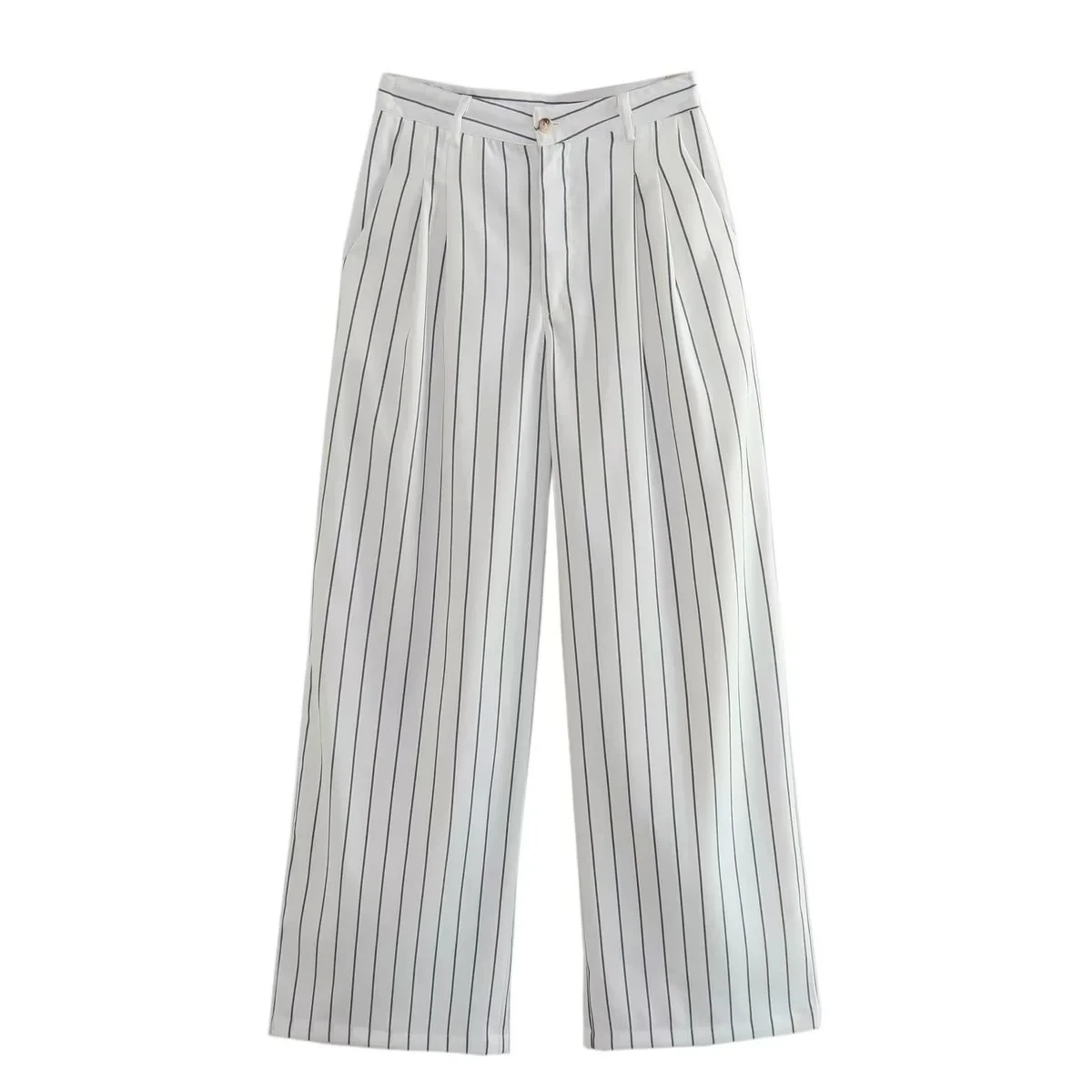 Advbridge Stripes Vest Pants Set Fashion 2 Pcs Outfits Summer Autumn Women Blazer Pants Set Loose Casual Wide Leg Pants Suit New