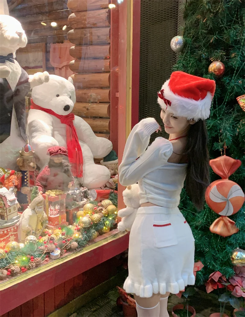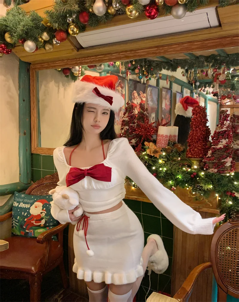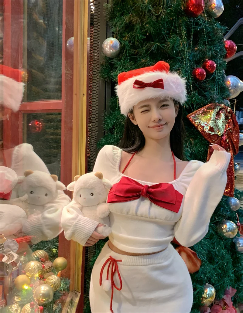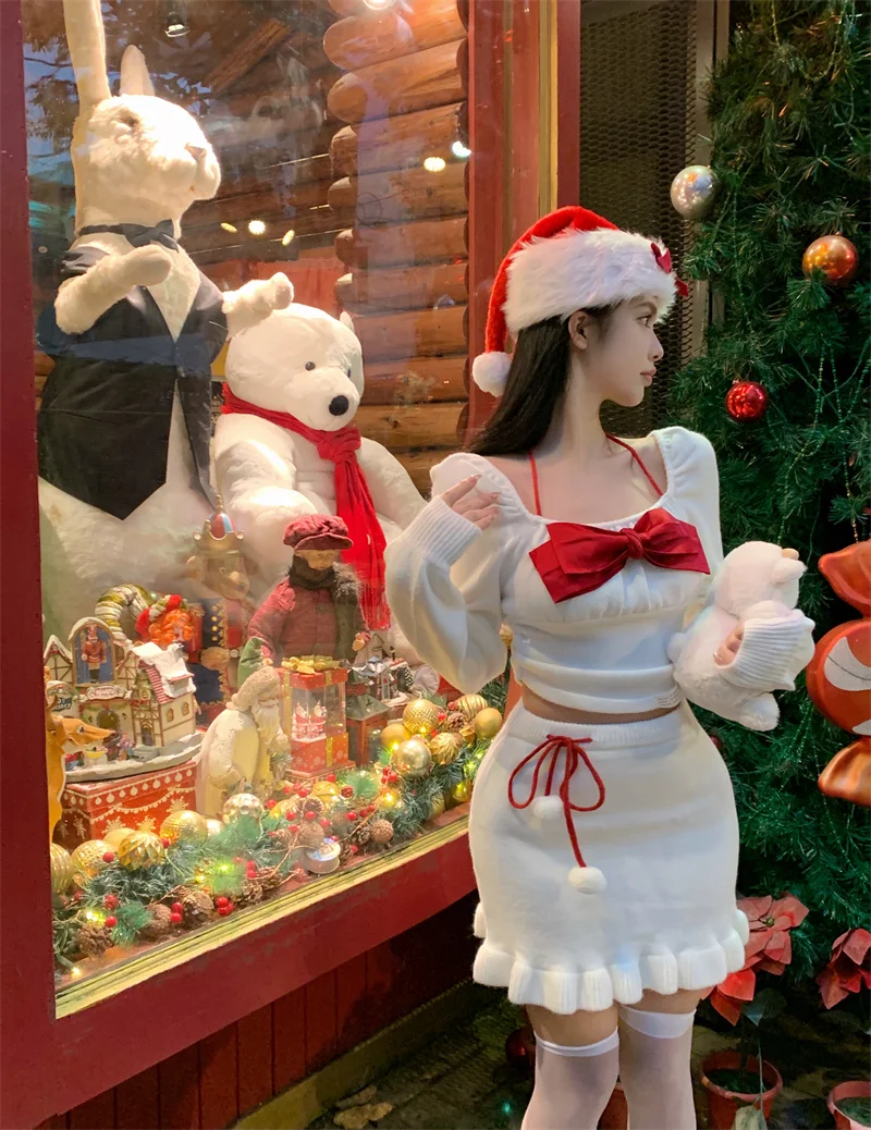 Advbridge - Sweet Hot Girl Suit Women's Autumn and Winter Bow Tie Halter Neck Sweater High Waisted Short Skirt Two-piece Set Female Clothes