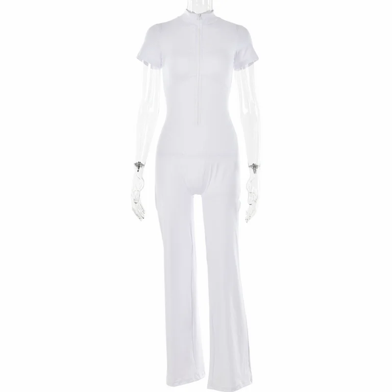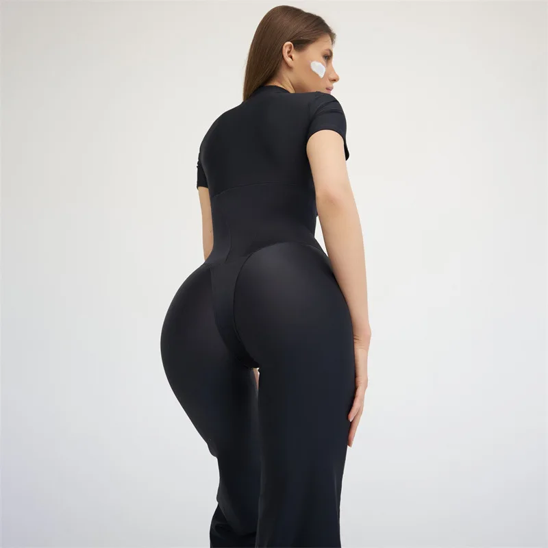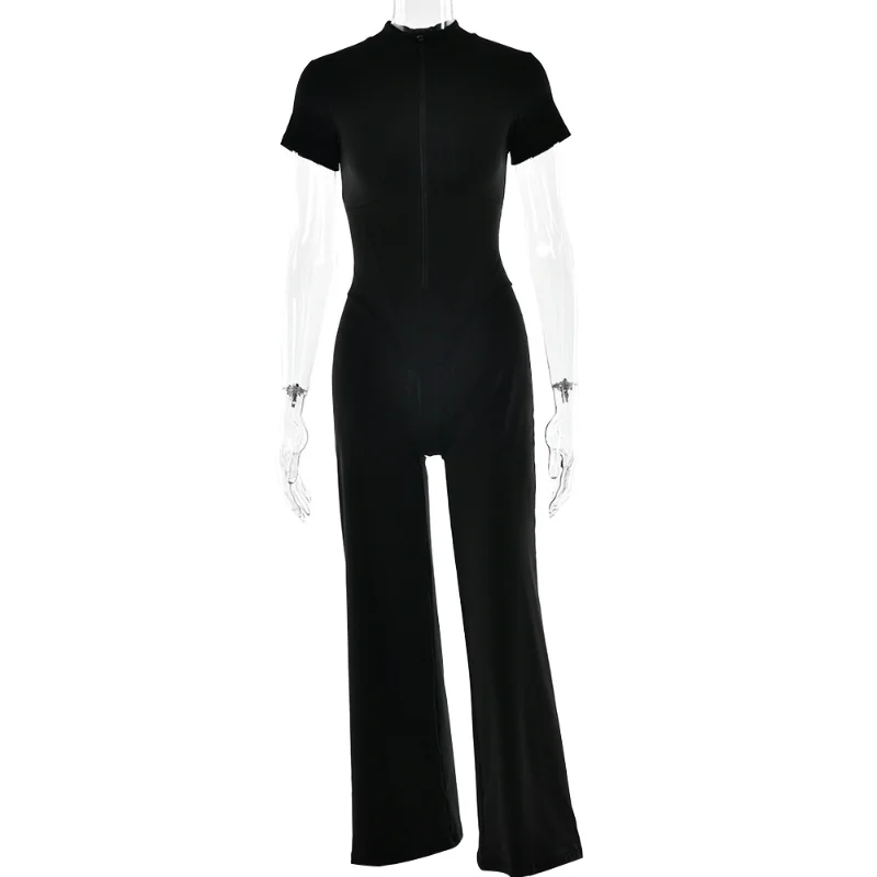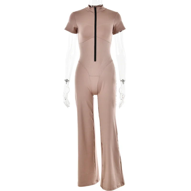 Advbridge Tight Short Sleeve Spots Jumpsuits Women Fashion Sexy Hot Girl Fitted Waist Jumpsuit Solid Color Slim Fits Rompers