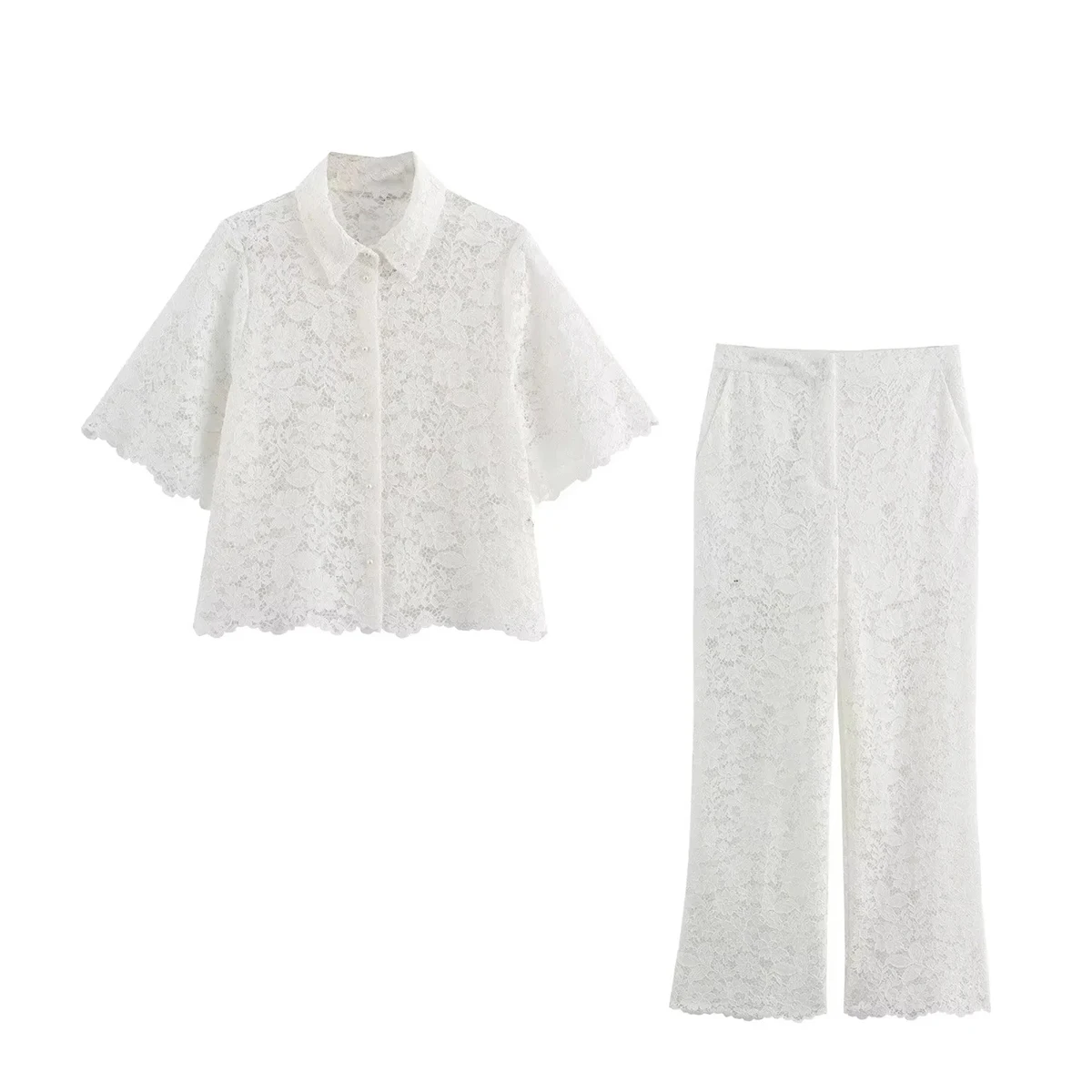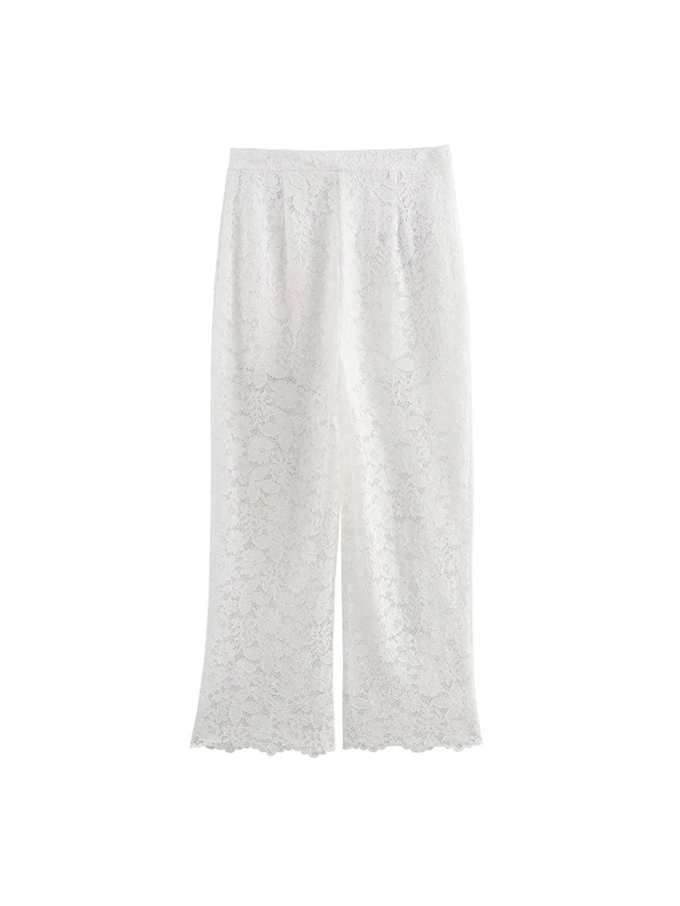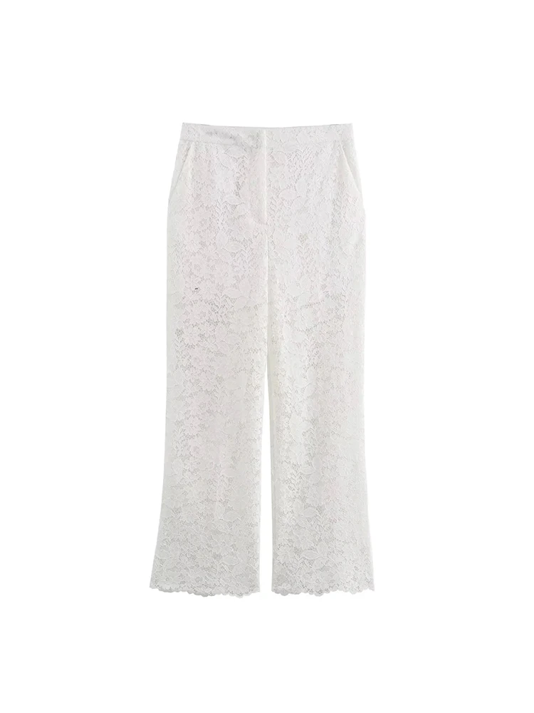 Advbridge Transparent White Pants Set Women Summer Casual Office Female Outfit 2024 Hollow Out Matching Set Spring Suit