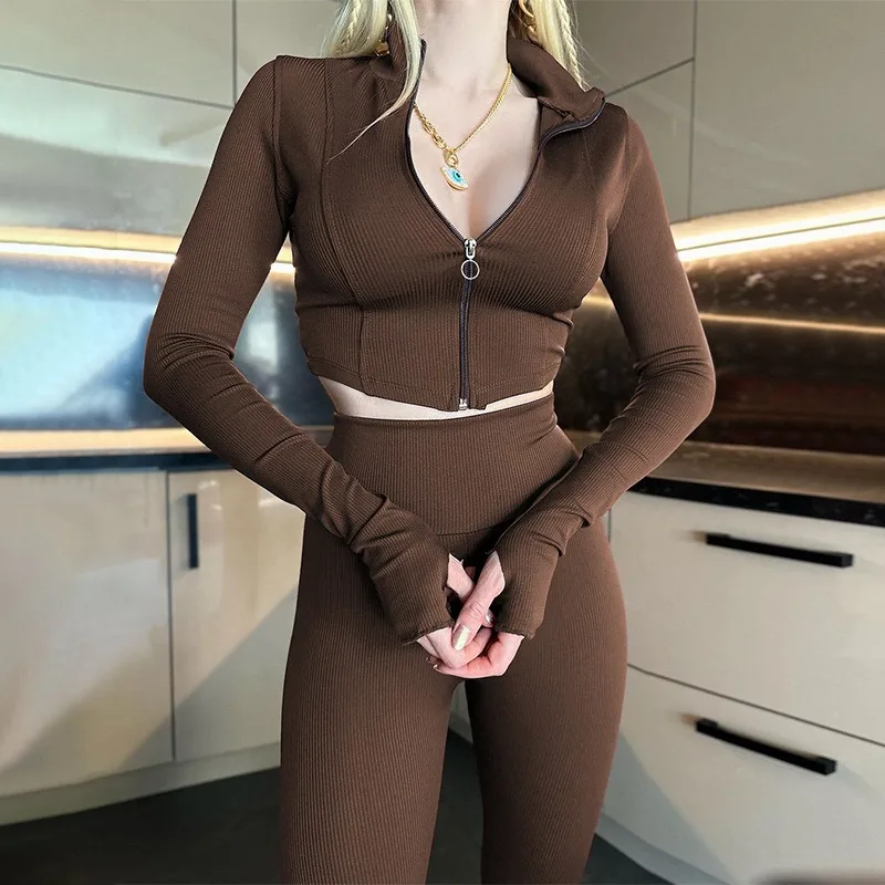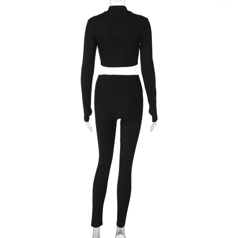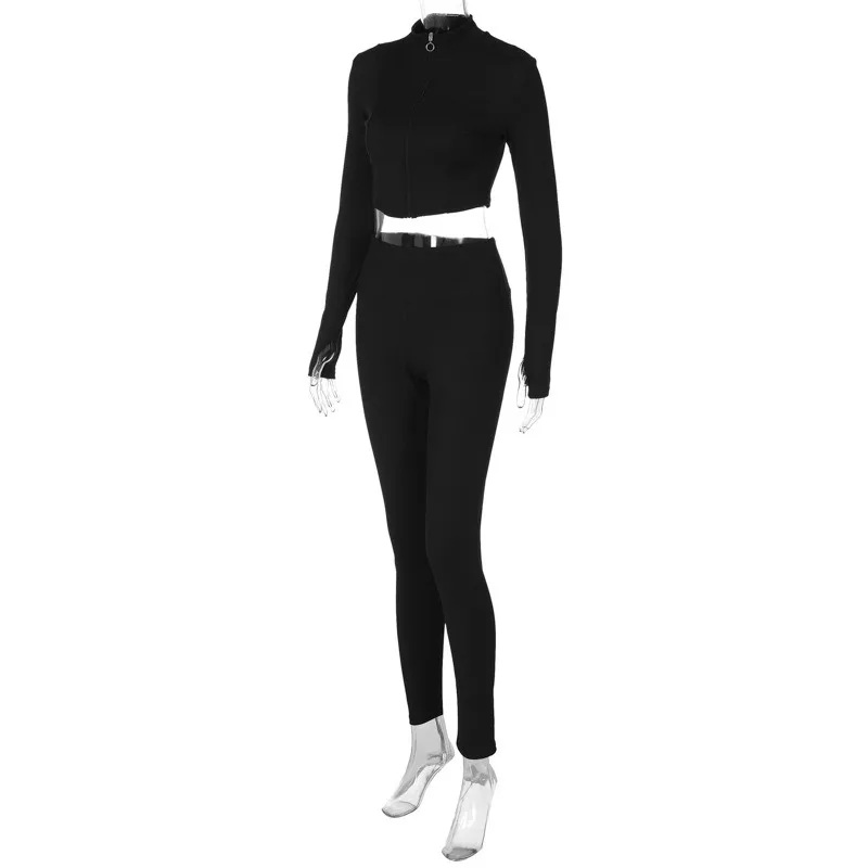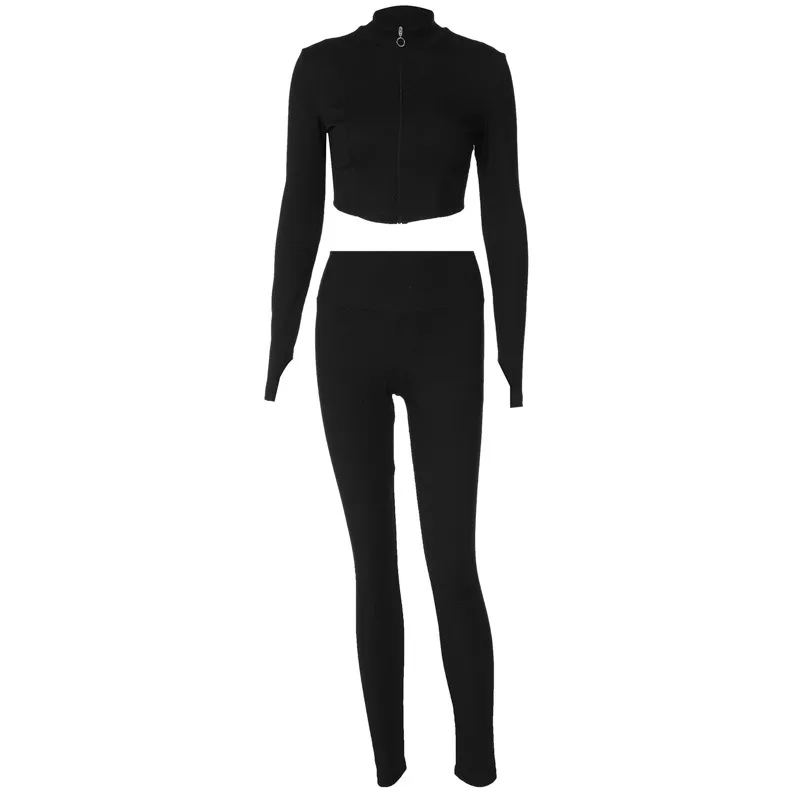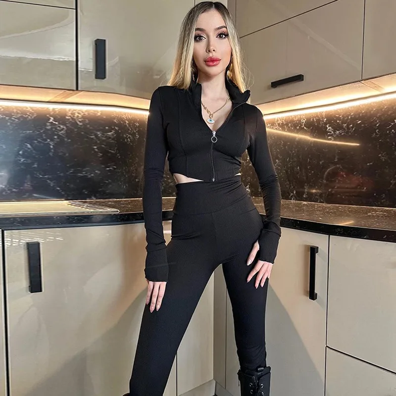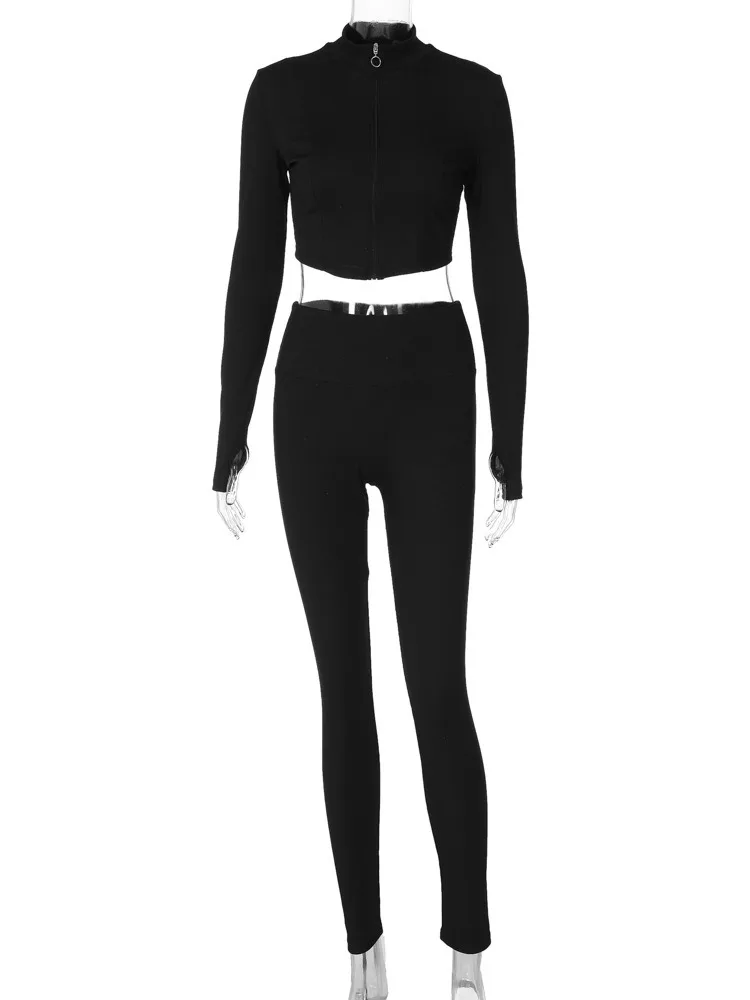 Advbridge - Two Pieces Set Women Matching Sets Slim Zipper Long Sleeve Tops And Skinny Pencil Autumn Winter Streetwear Casual Pants Sets