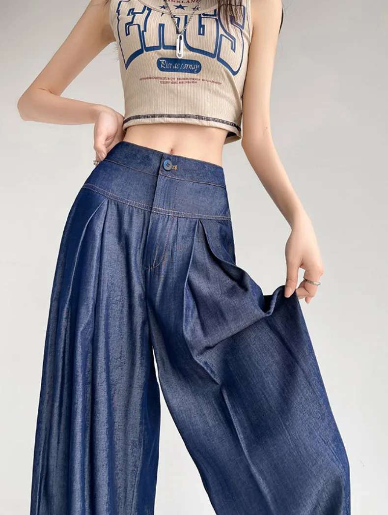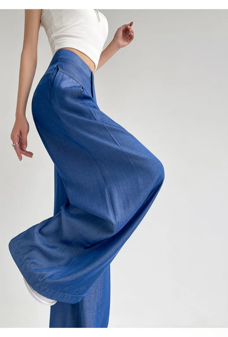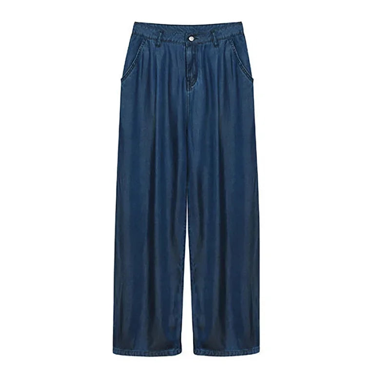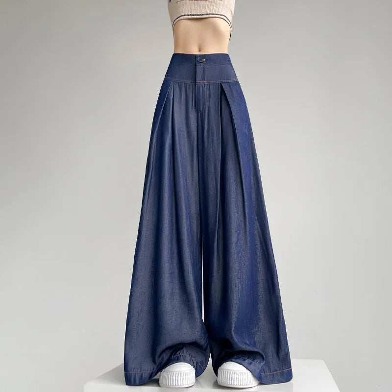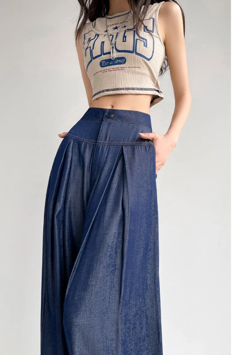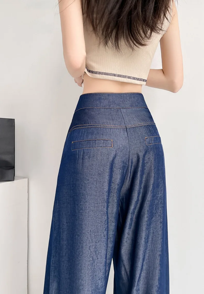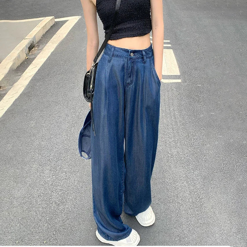 Advbridge Ultra Thin Dark Blue Jeans High Waist Draped Wide Legs Denim Pants Women Summer Loose Straight Ice Silk Casual Pants Streetwear