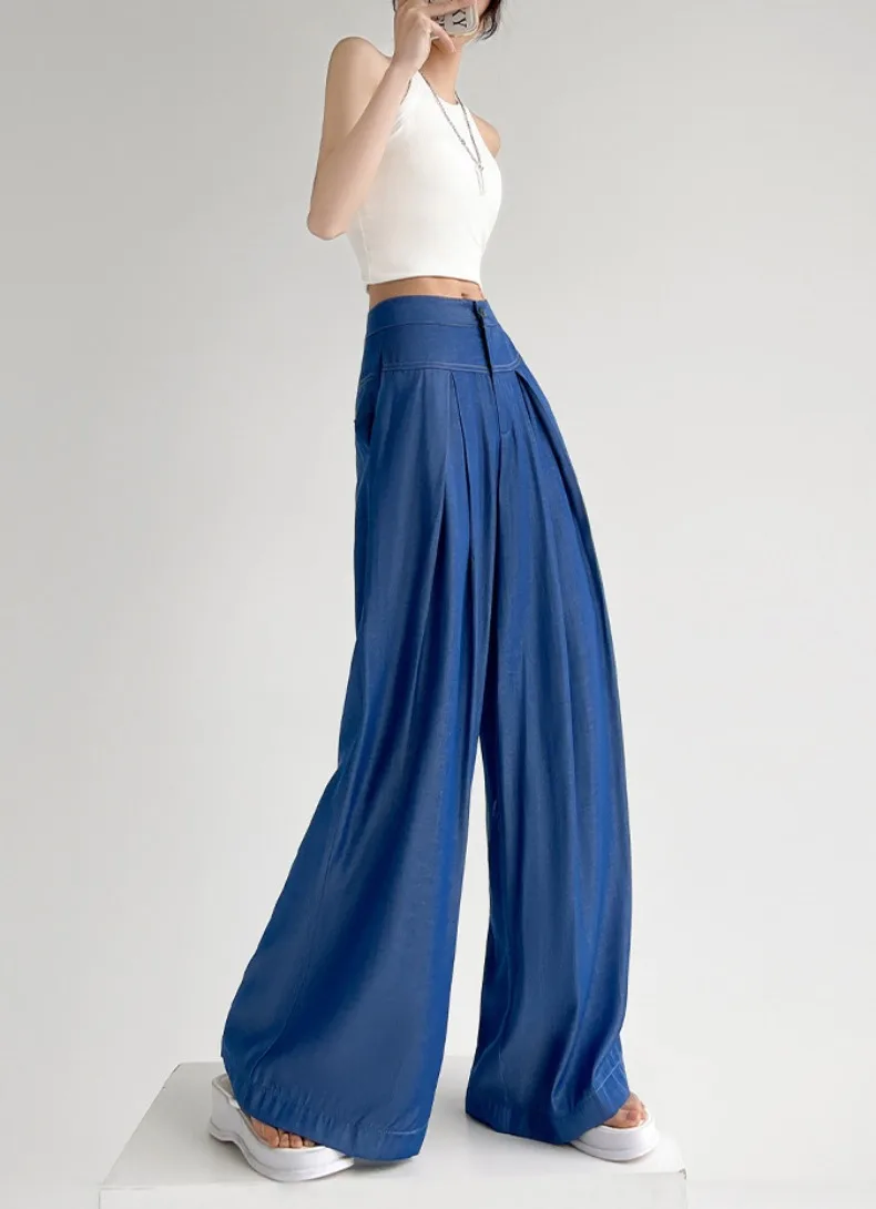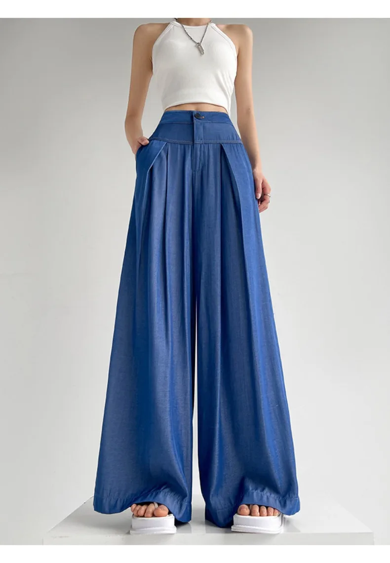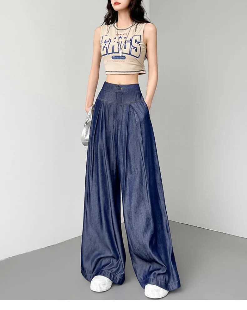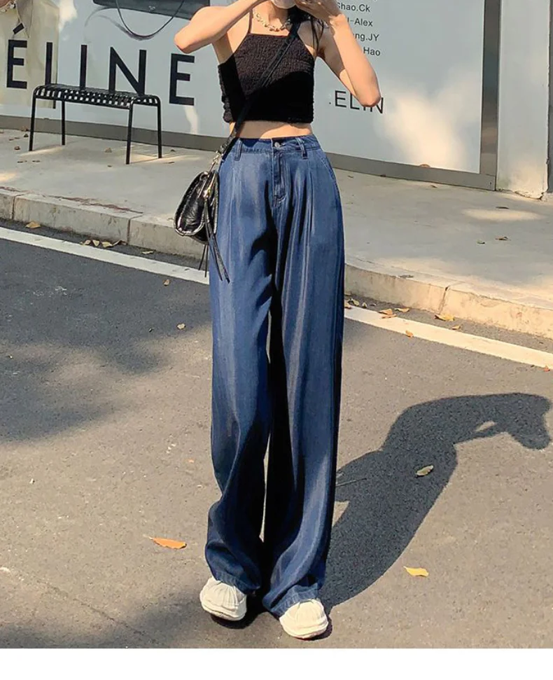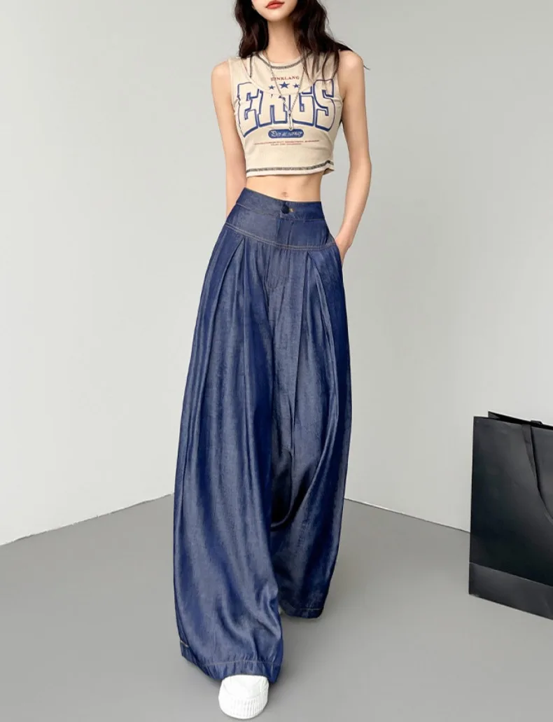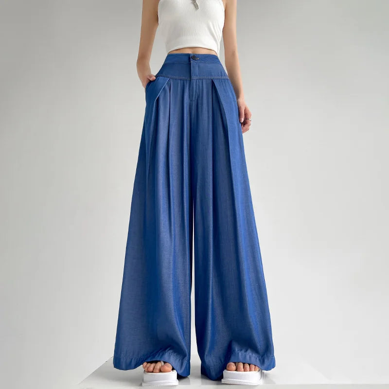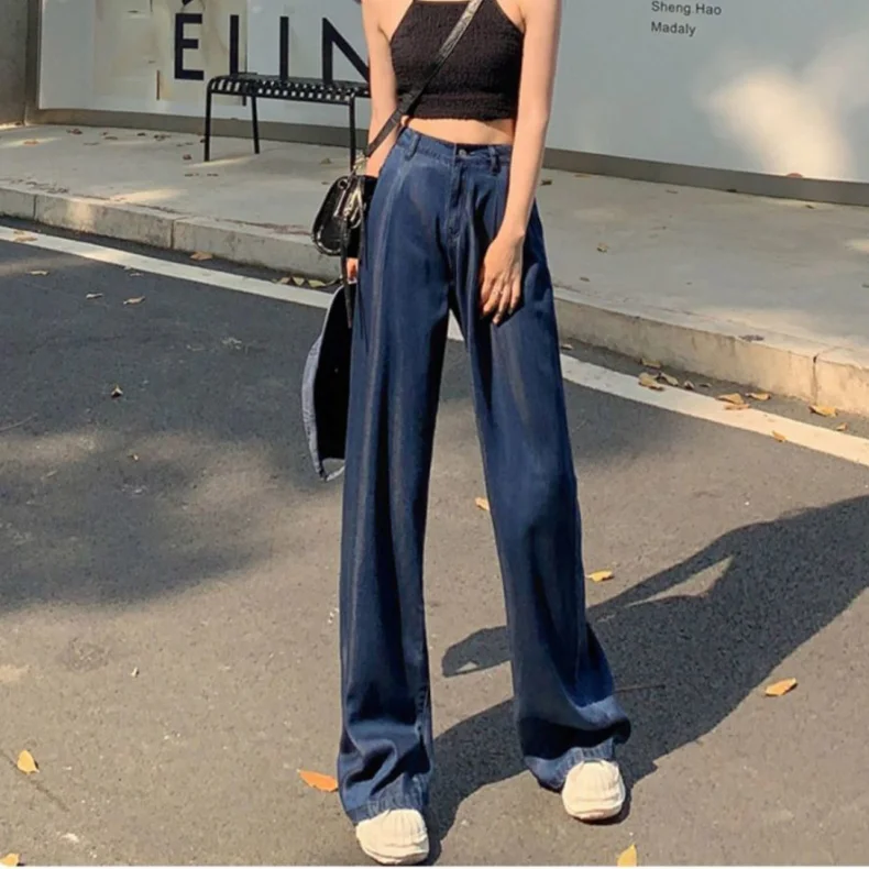 Advbridge Ultra Thin Dark Blue Jeans High Waist Draped Wide Legs Denim Pants Women Summer Loose Straight Ice Silk Casual Pants Streetwear