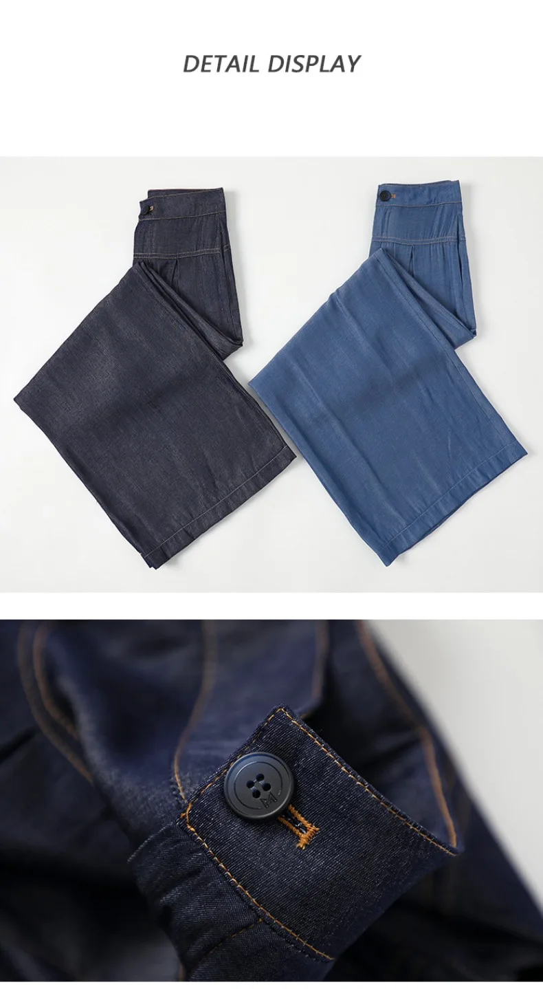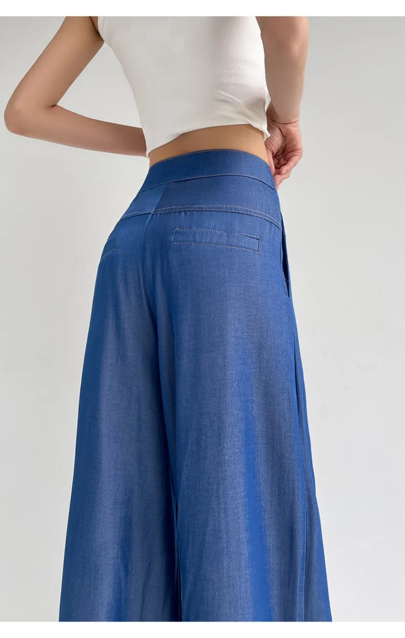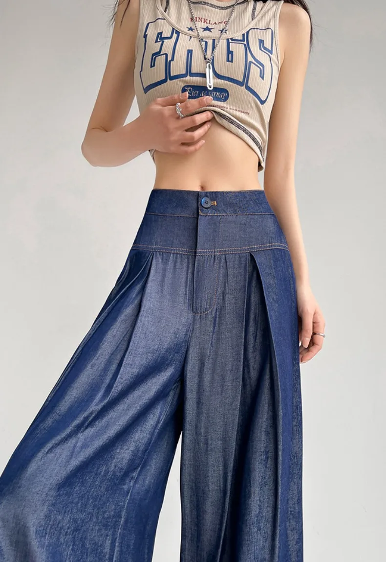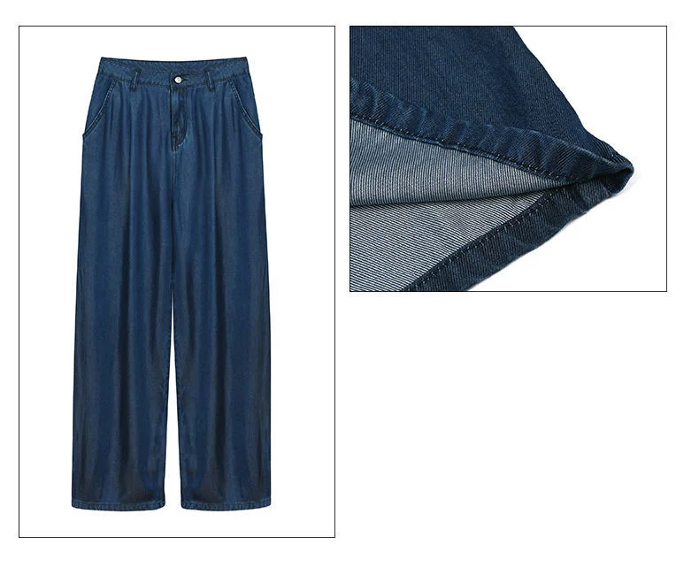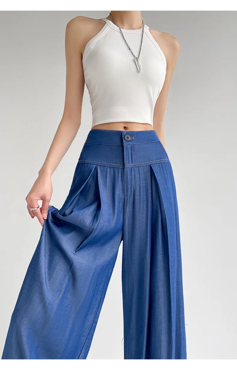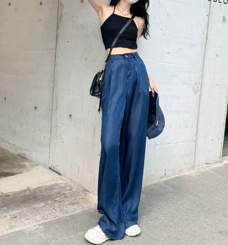 Advbridge Ultra Thin Dark Blue Jeans High Waist Draped Wide Legs Denim Pants Women Summer Loose Straight Ice Silk Casual Pants Streetwear