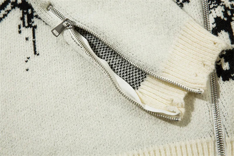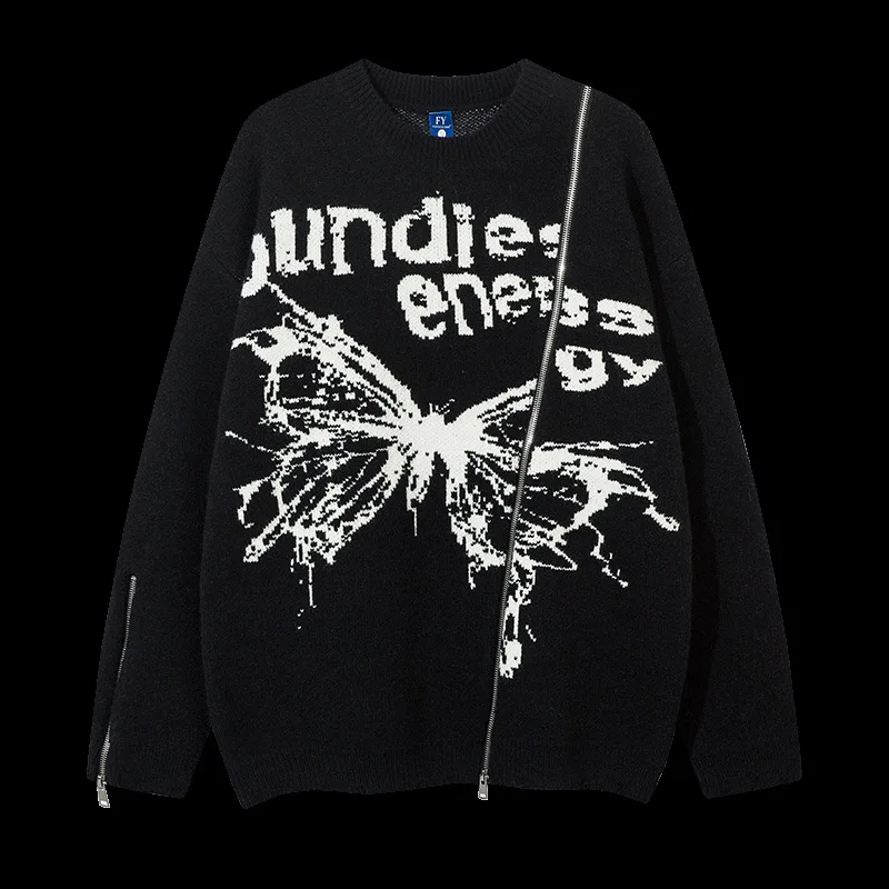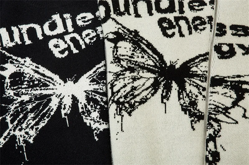 Advbridge Unisex Cardigan Sweater Harajuku Butterfly Letter Knitted Zipper Cardigan Women Autumn Casual Loose Fashion Tops Men Clothing