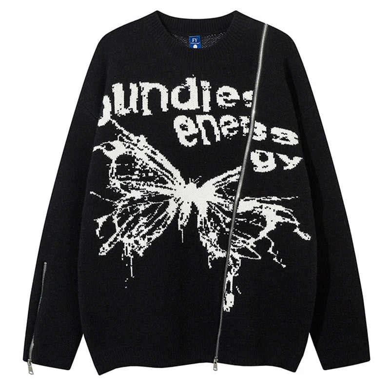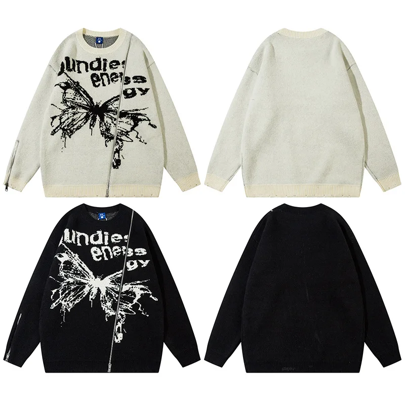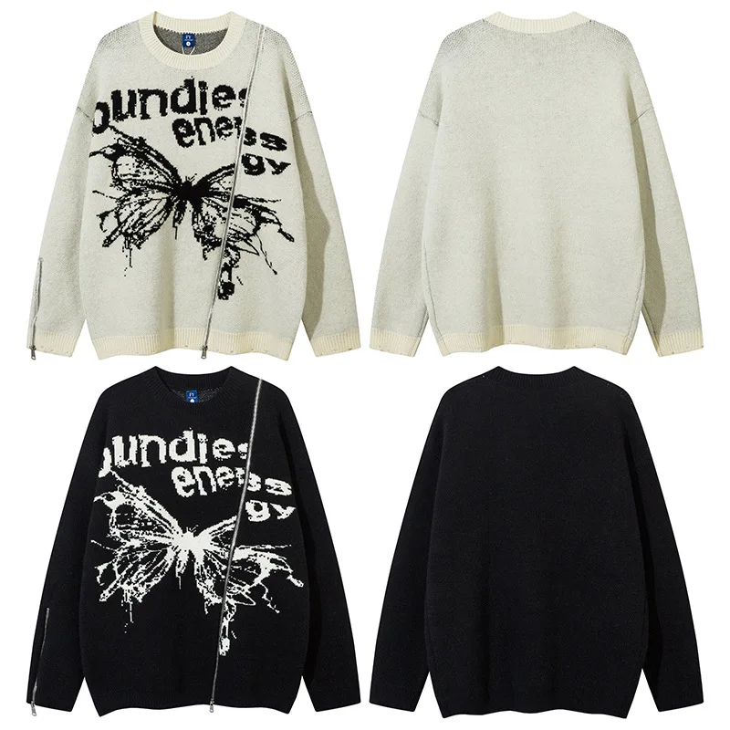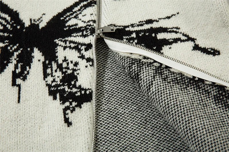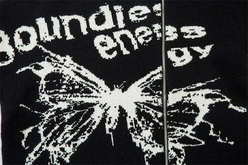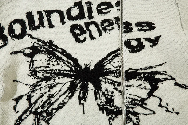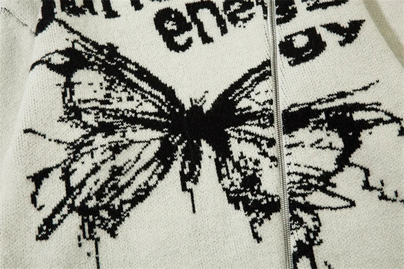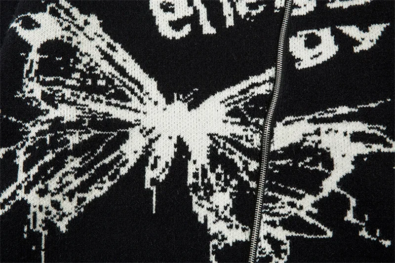 Unisex Cardigan Sweater Harajuku Butterfly Letter Knitted Zipper Cardigan Women Autumn Casual Loose Fashion Tops Men Clothing