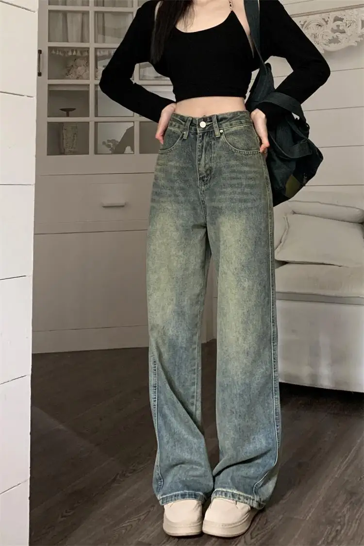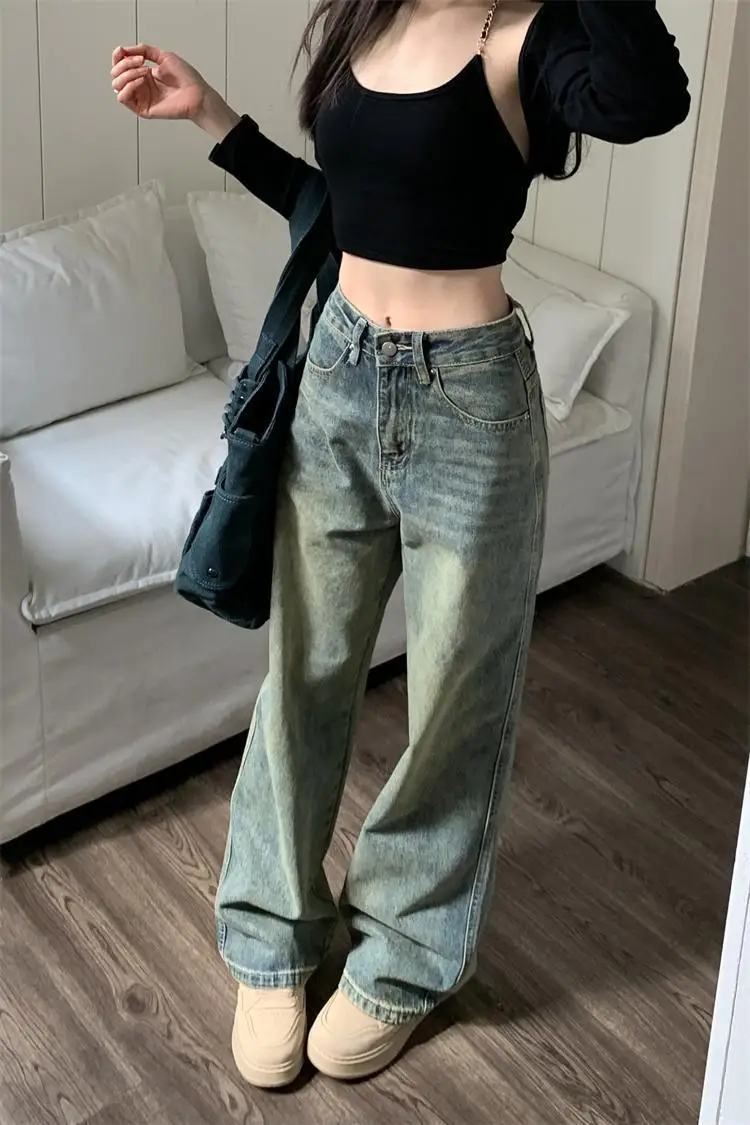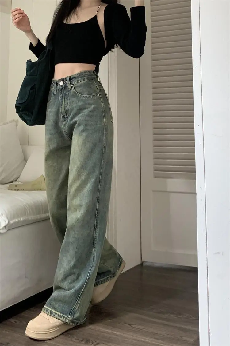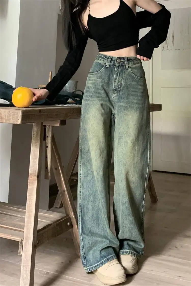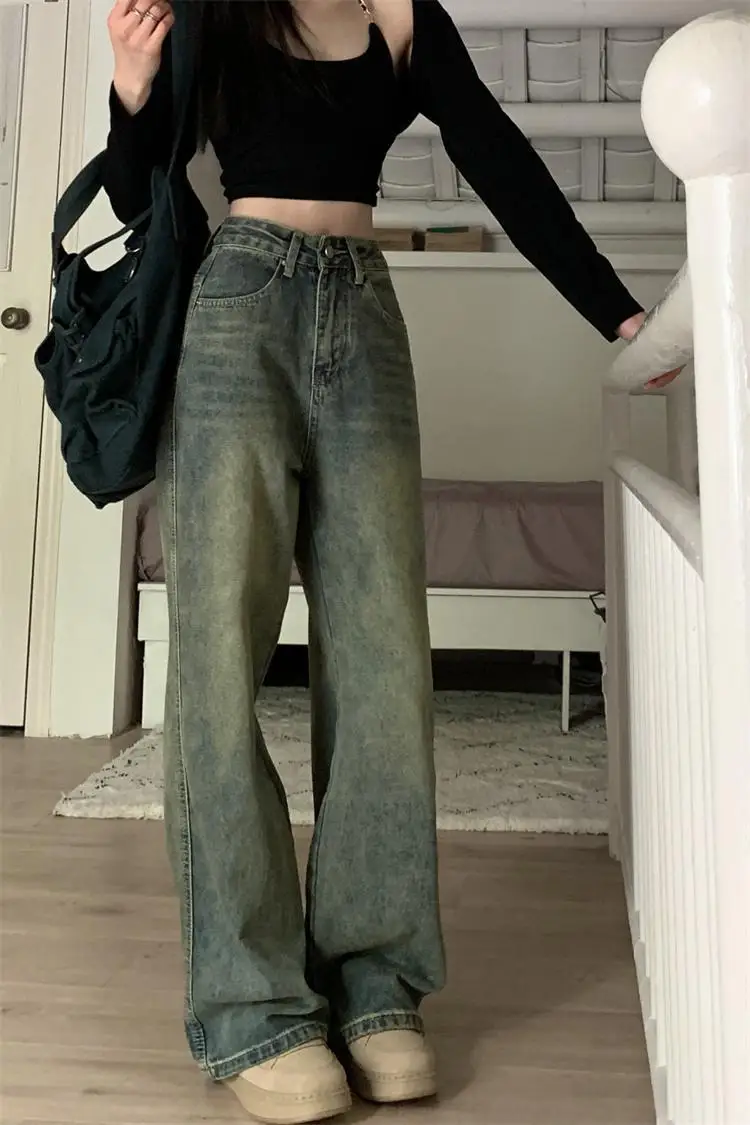 Advbridge Vintage 90S Baggy Jeans Women Y2K High Waist Casual Loose Straight Trousers Distressed Streetwear Denim Wide Leg Jeans