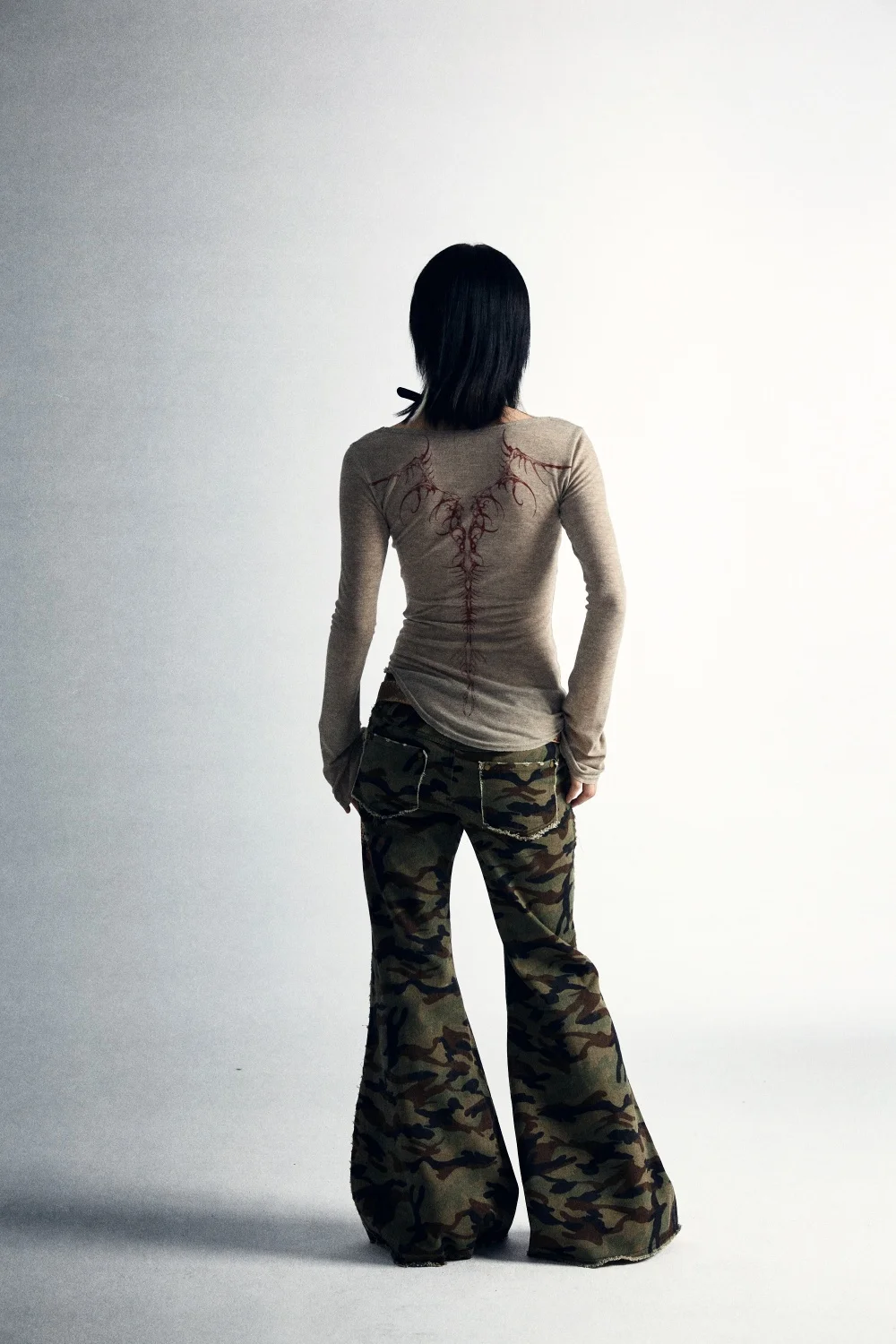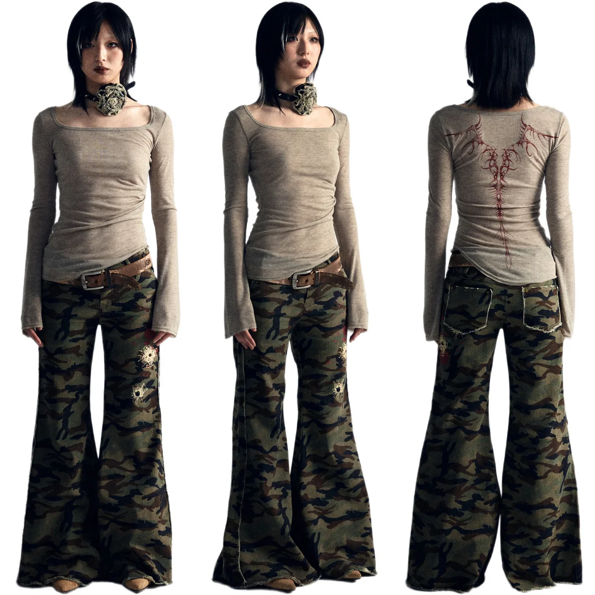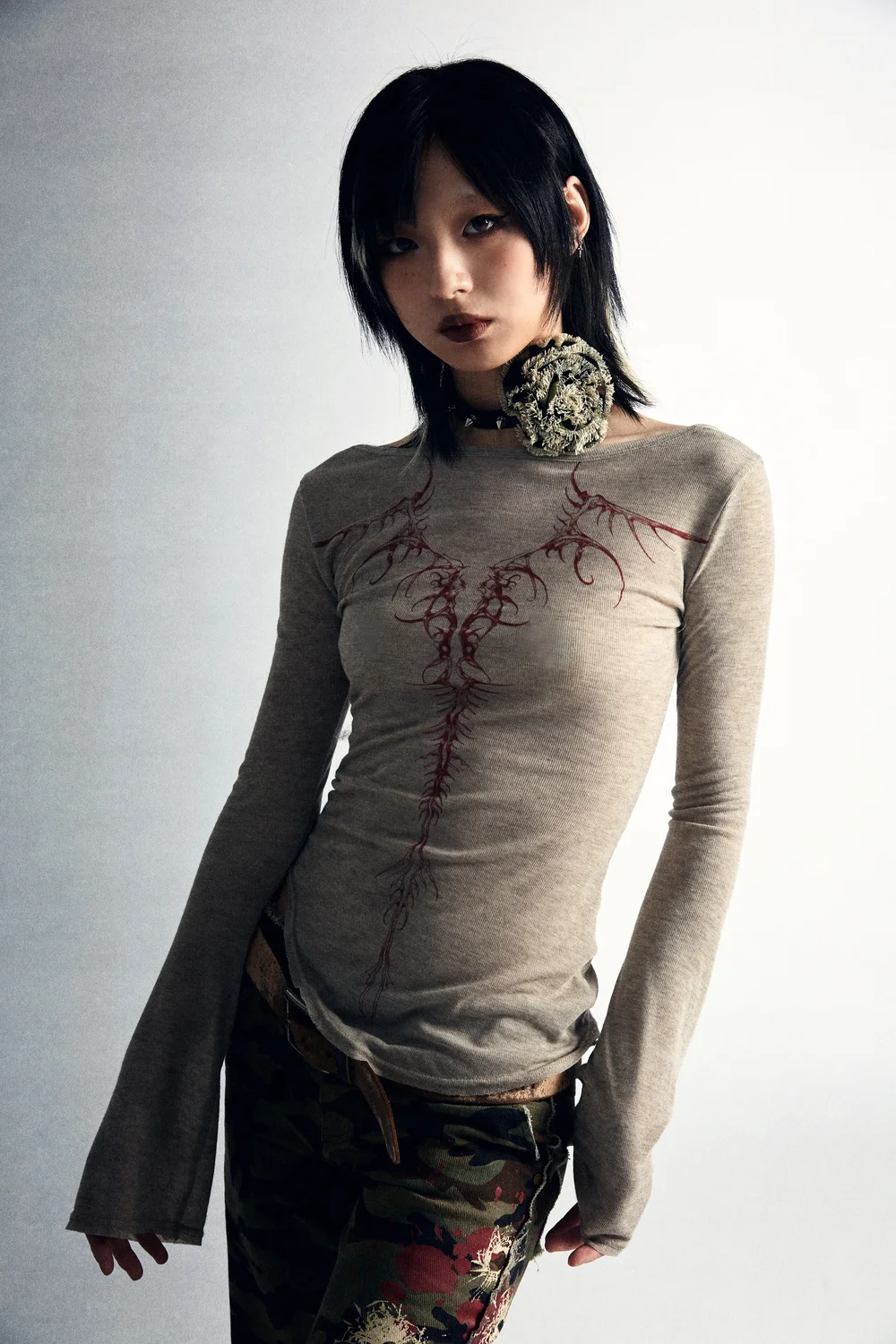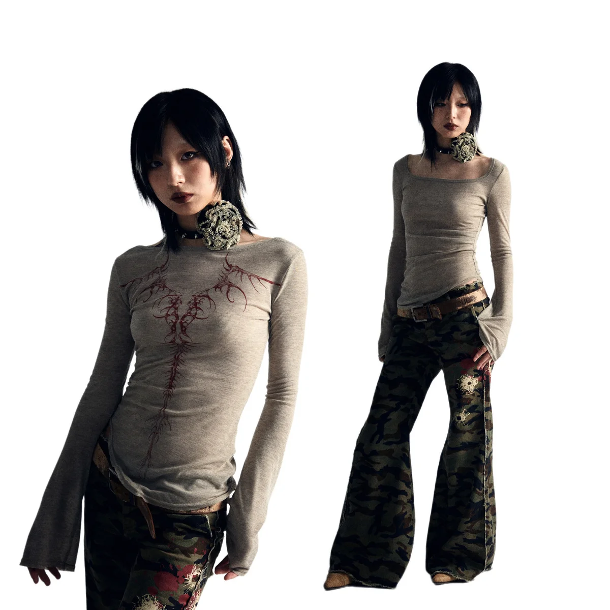 Advbridge Vintage Aesthetics T-shirts Women Grunge Printted Tees Gothic Irregular Tops Punk Streetwear Y2k Long Sleeve Tops Hippie