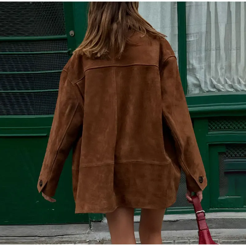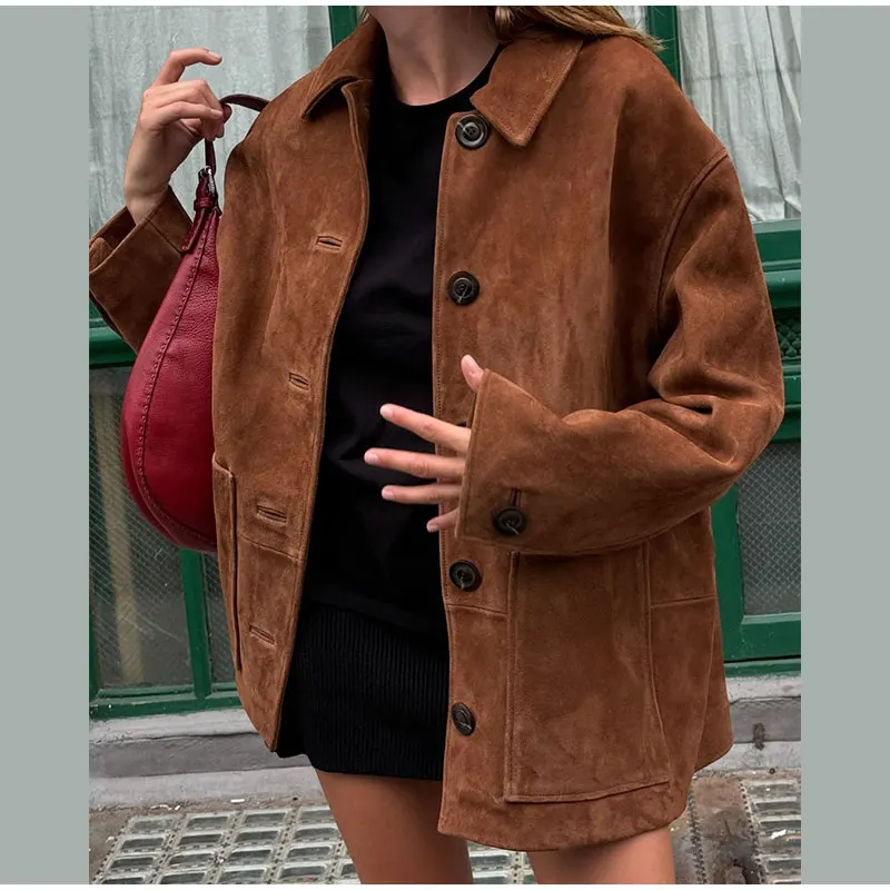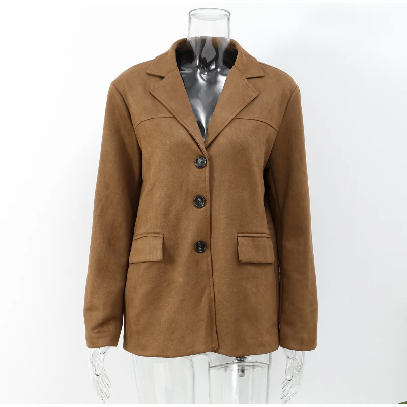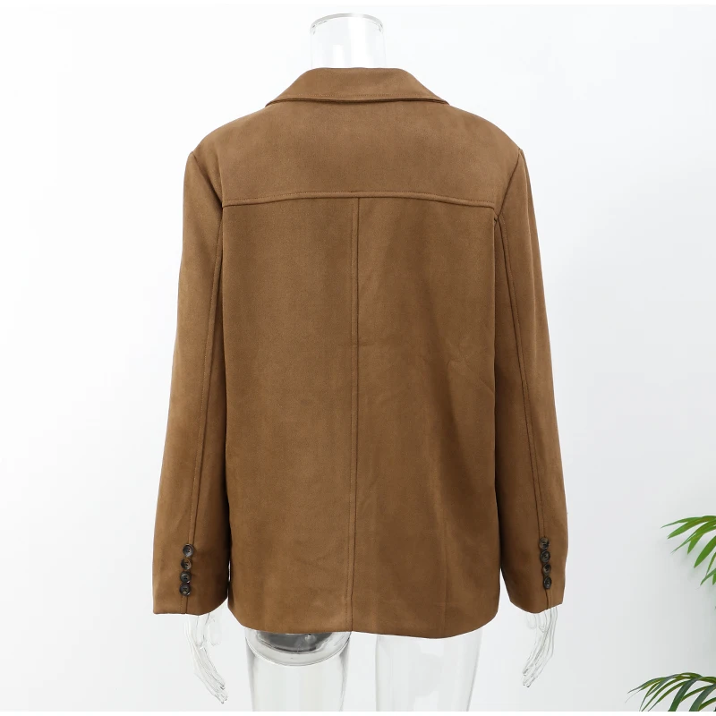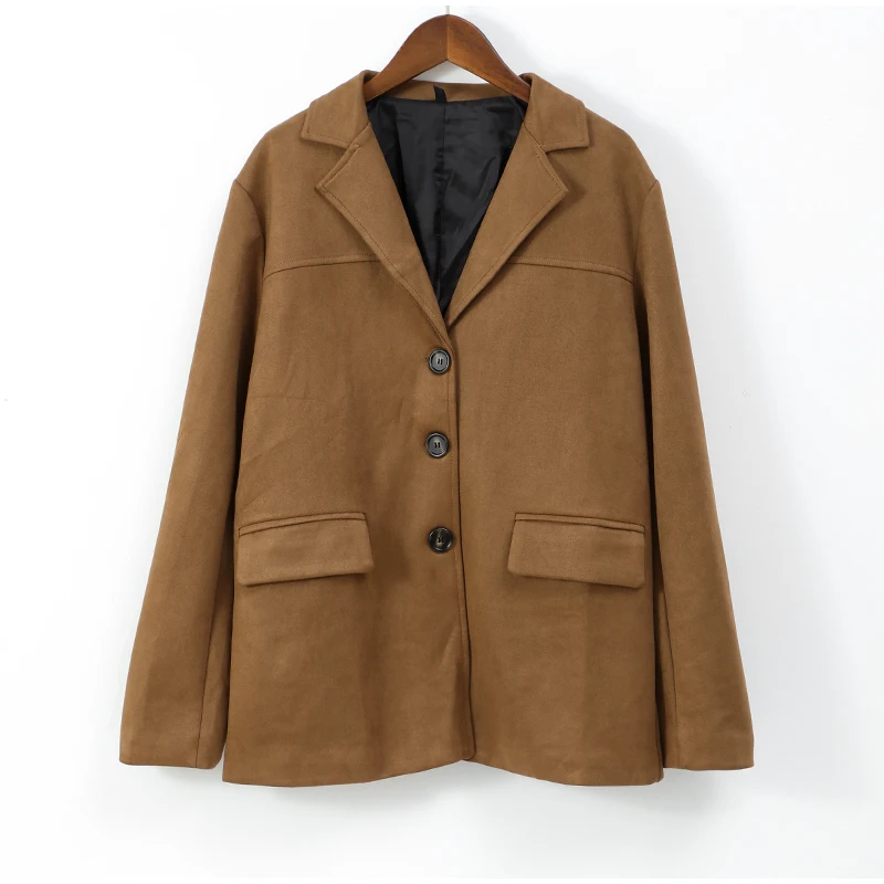 Advbridge Vintage Brown Lapel With Pocket Jacket Women Fashion Long Sleeves Single Breasted Coat 2024 New Autumn Lady Commuting Streetwear