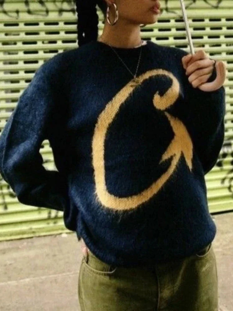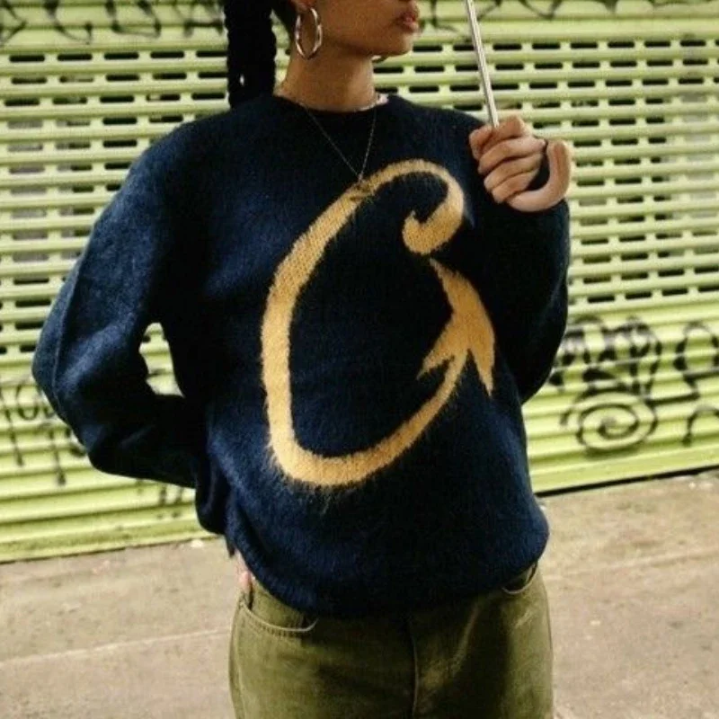 Advbridge Vintage Grunge Y2k Sweaters Women Gothic Long Sleeve Knitted Pullovers Harajuku Graphic Streetwear Casual Loose Sweater