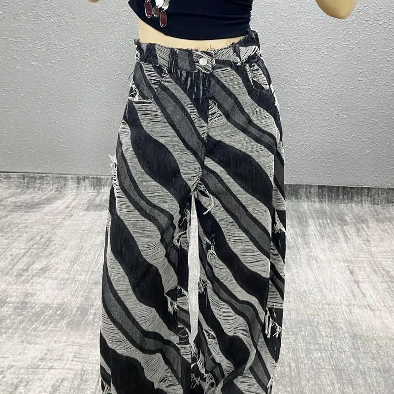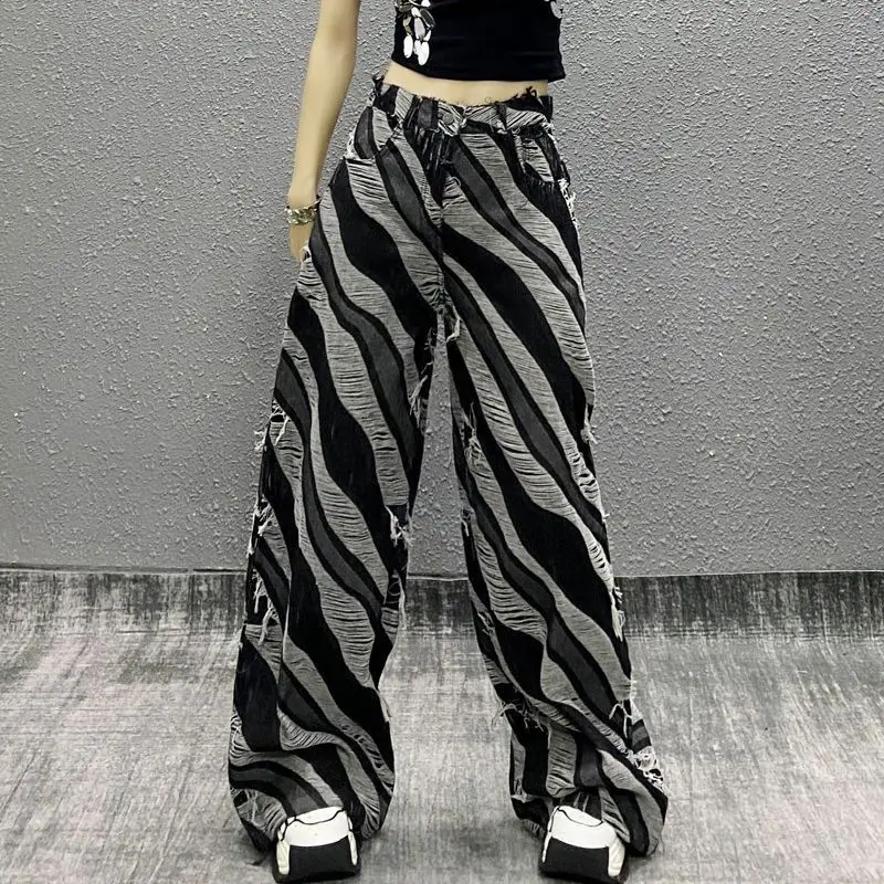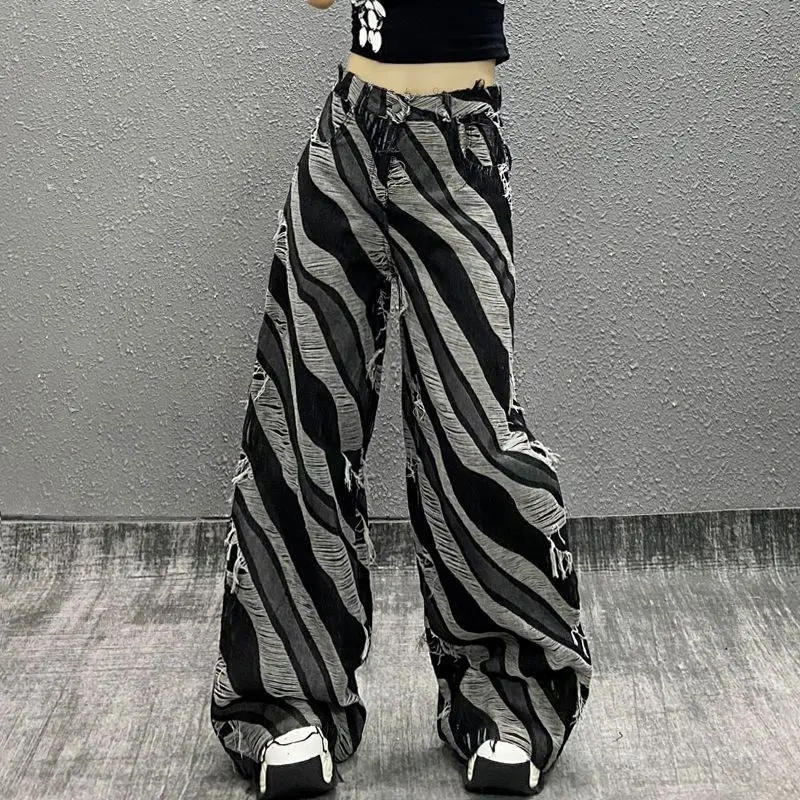 Advbridge Vintage Y2k Jeans Women Streetwear Harajuku Gothic Aesthetic Baggy Trousers Denim Striped Wide Leg Pants Distressed