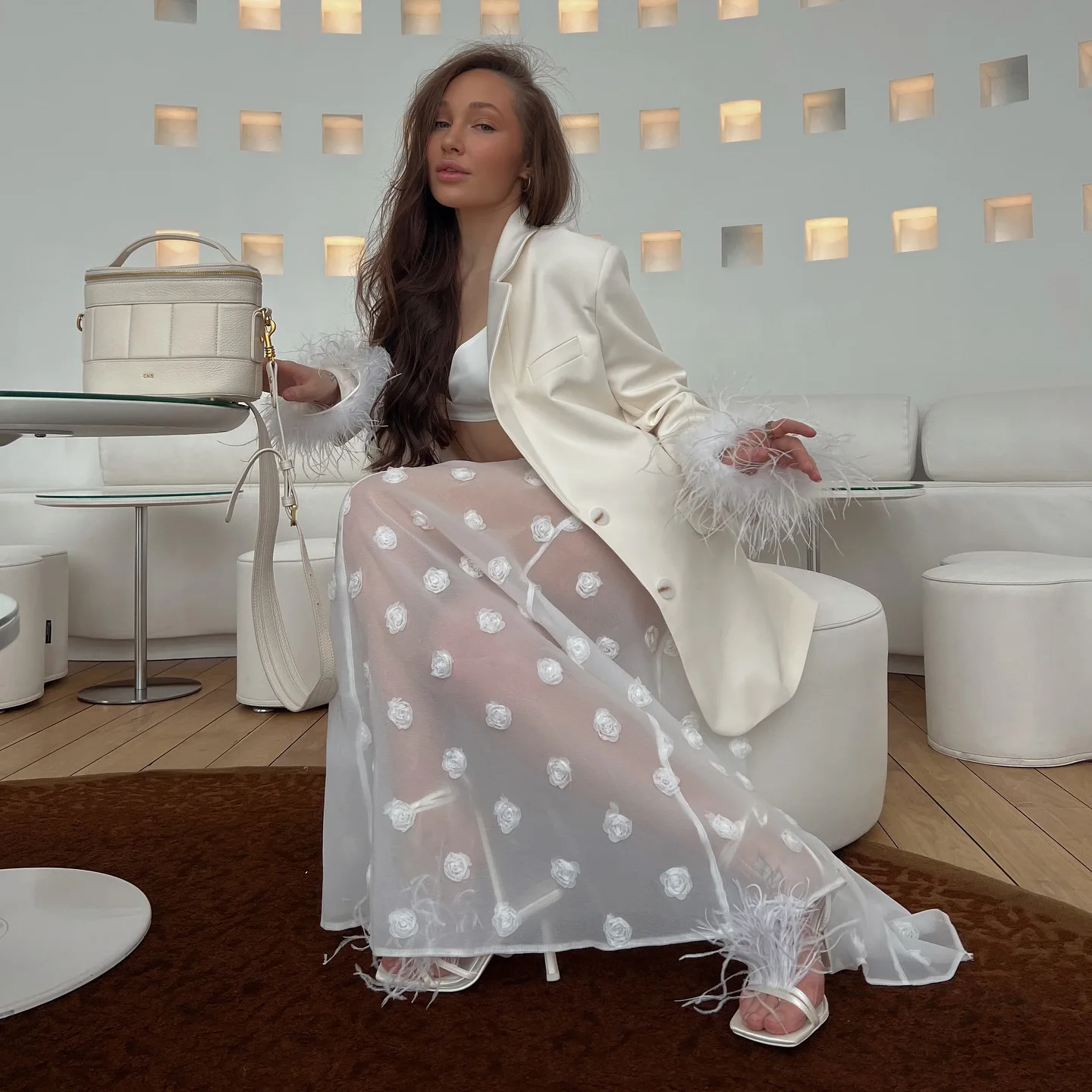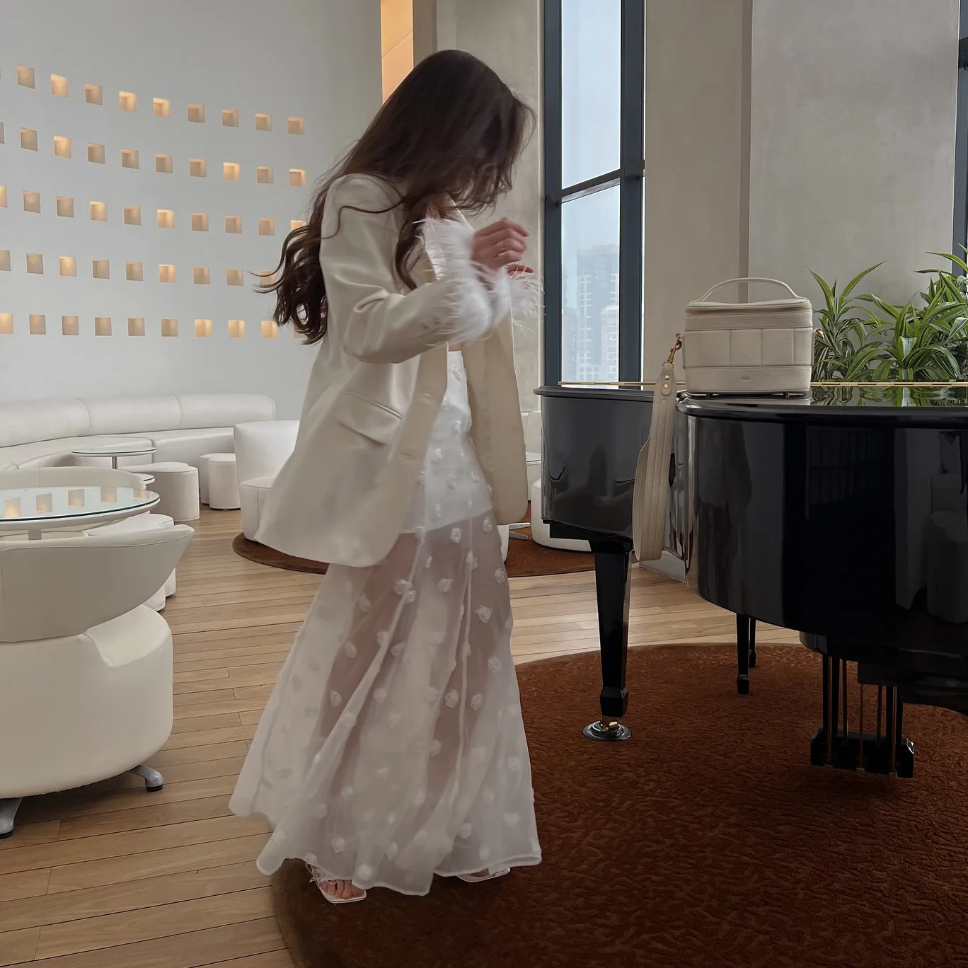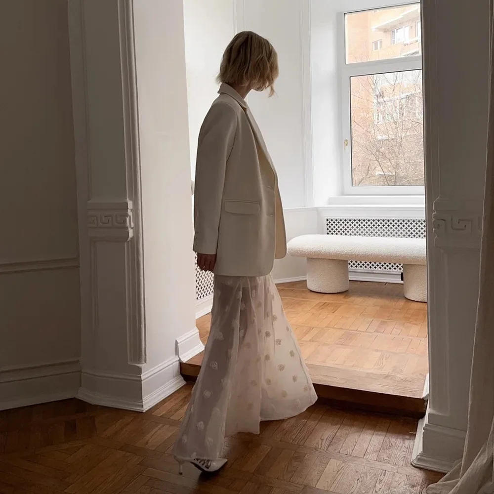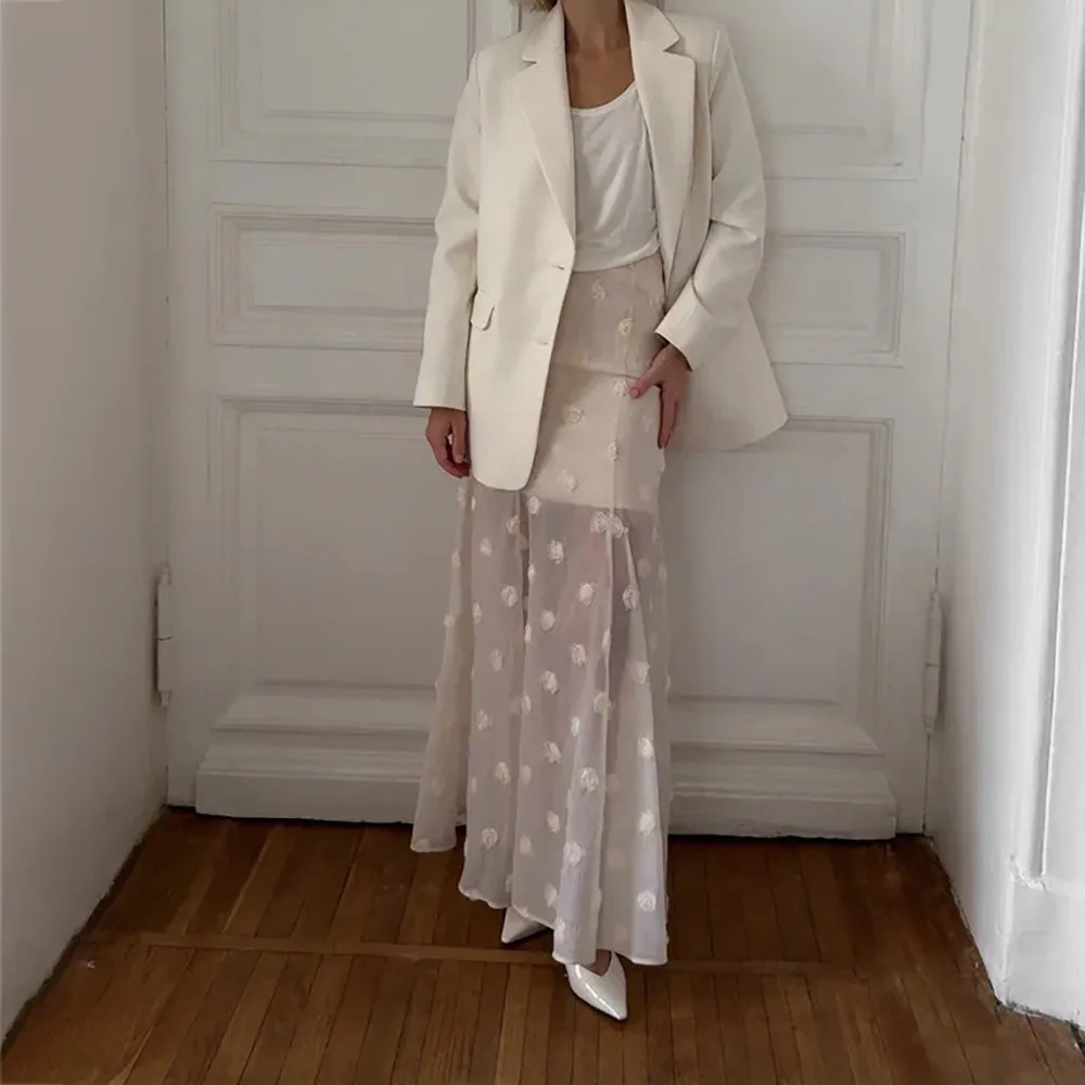 Advbridge White Floral Skirt Women New Perspective High Waist Long Skirt Summer Elegant Office Lady Casual A-Line Long Skirt 2025