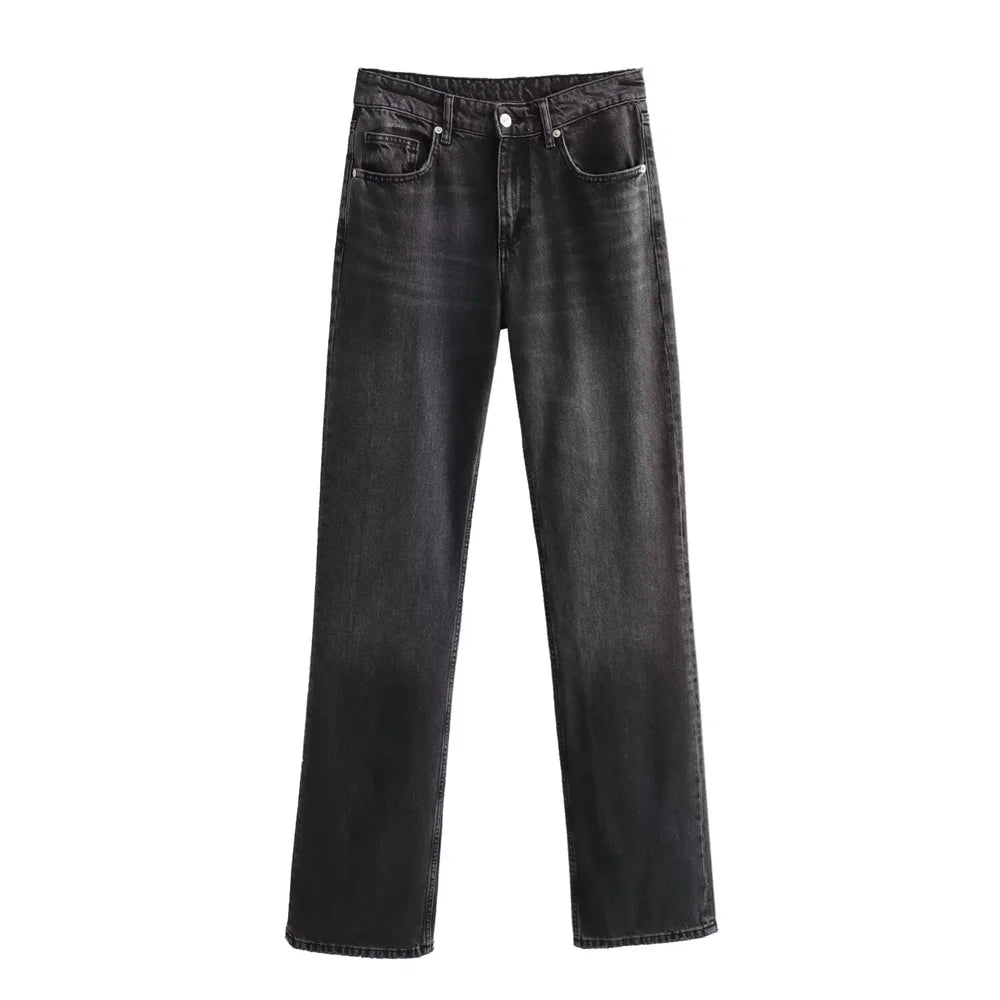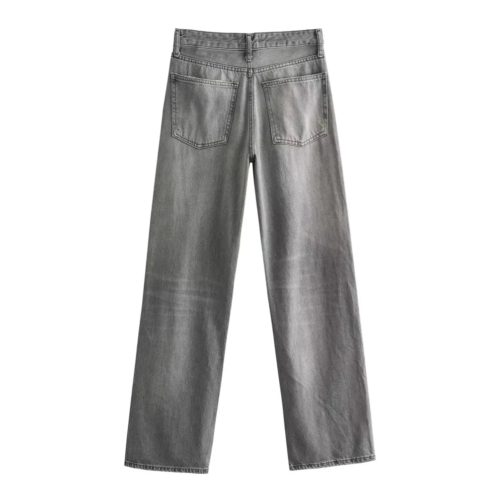 Advbridge Winter New Product Women's Fashion and Casual Versatile Wide Legs, Mid Waist, Long Floor Dragging Jeans