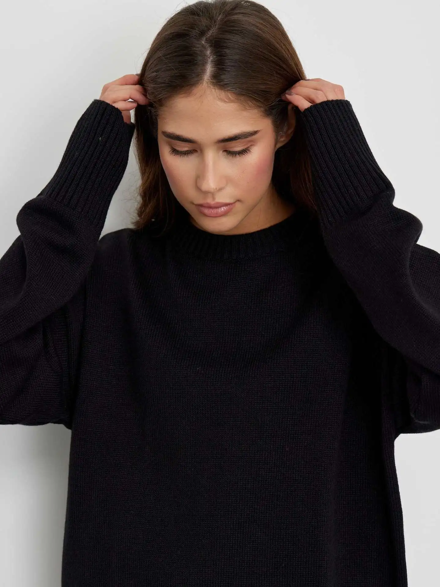 Advbridge Winter Warm Thick Knit Sweaters Solid Black Sweater Soft Pullover Loose Pullovers Korean Autumn Women Coat O Neck Sweater Jumper
