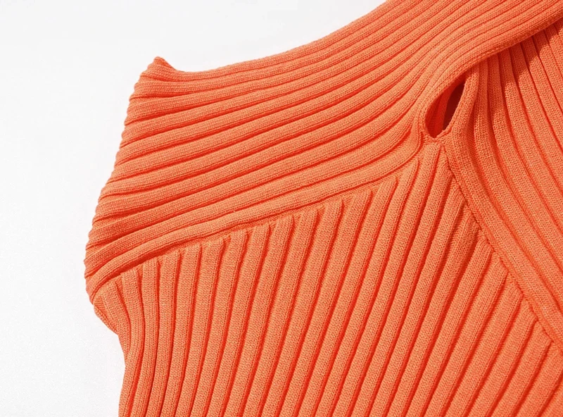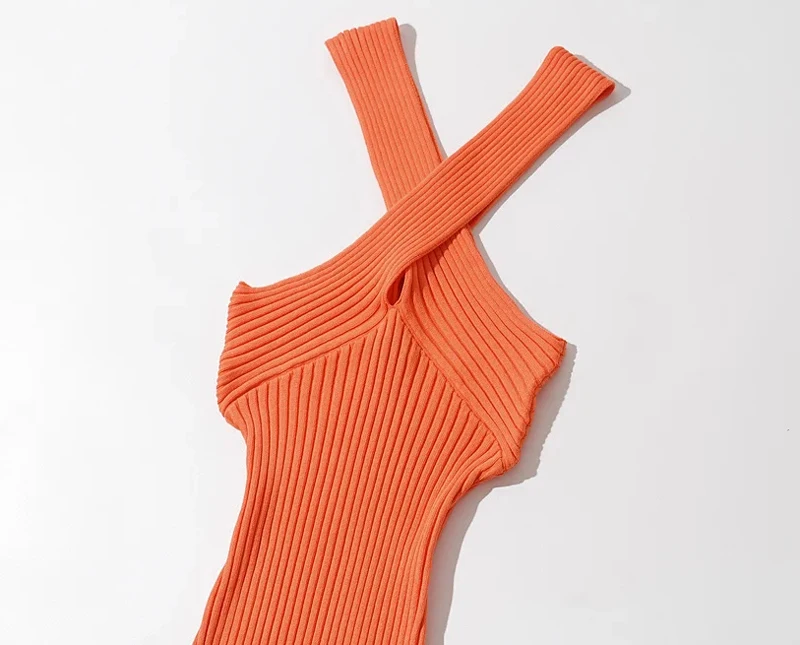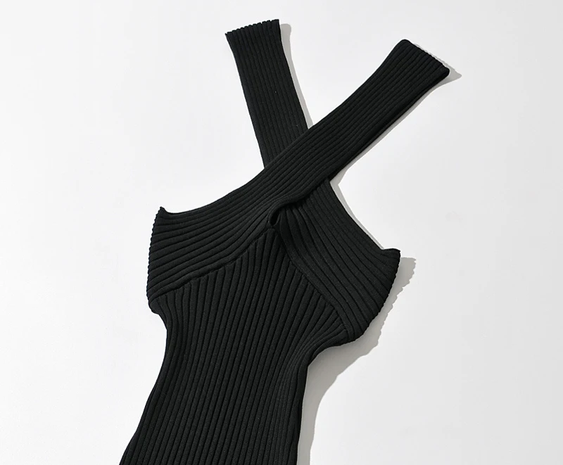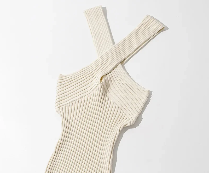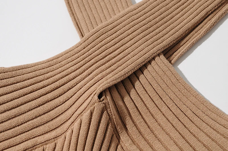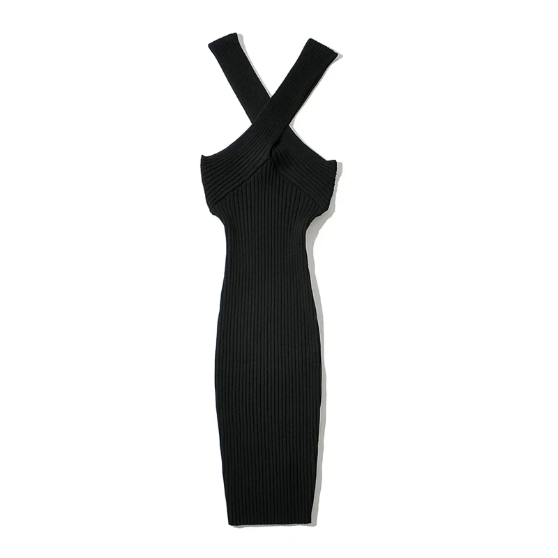 Advbridge - Women Cross Detail Rib Knitted Dress Mini Dress