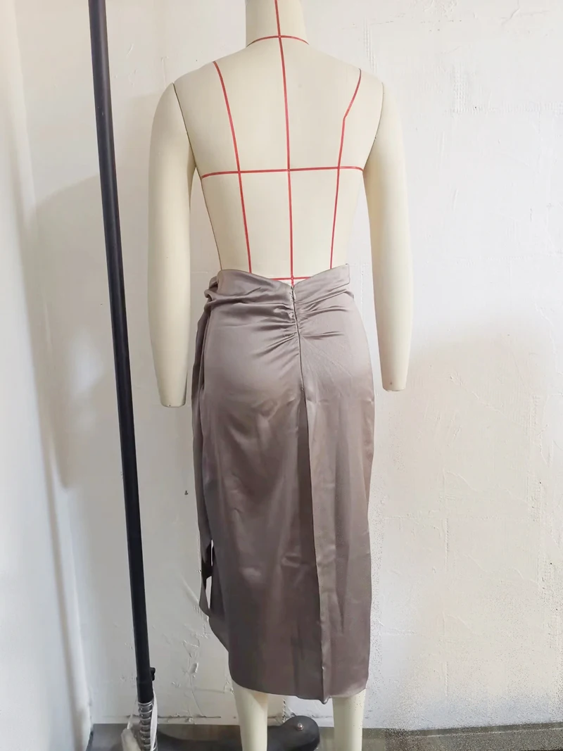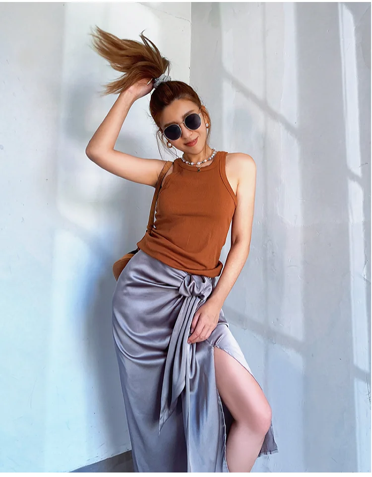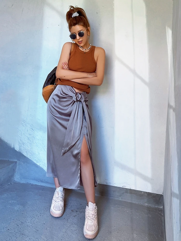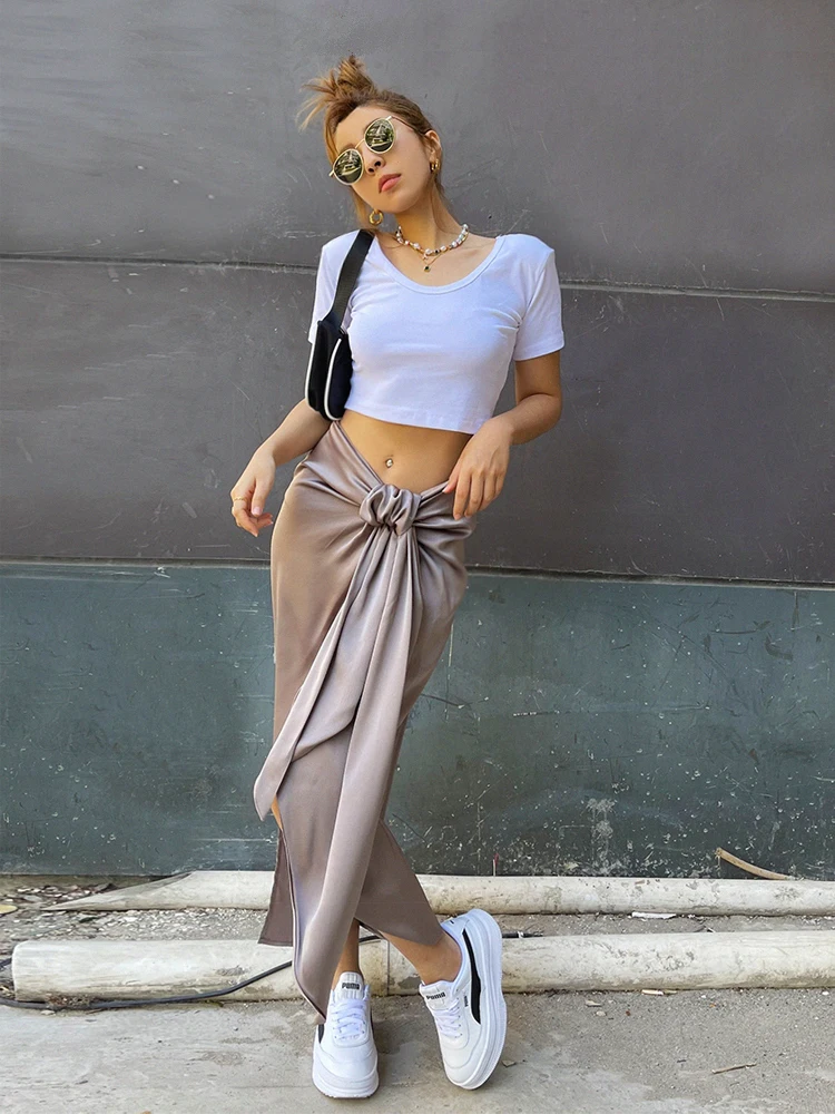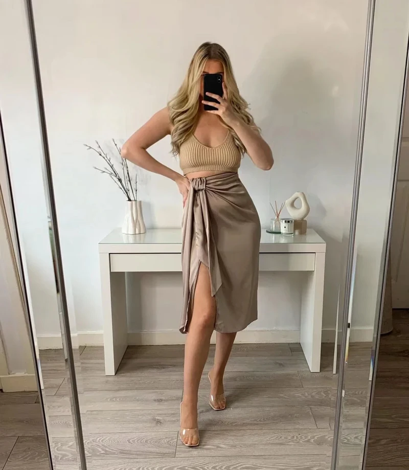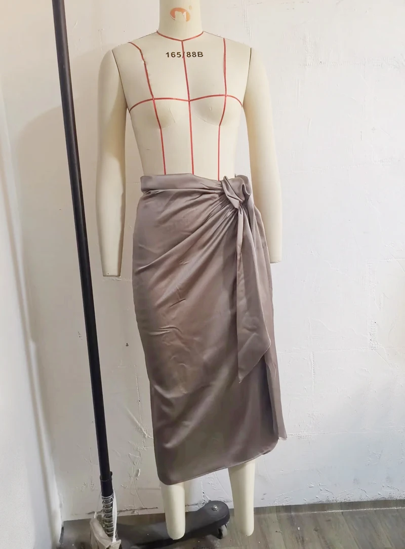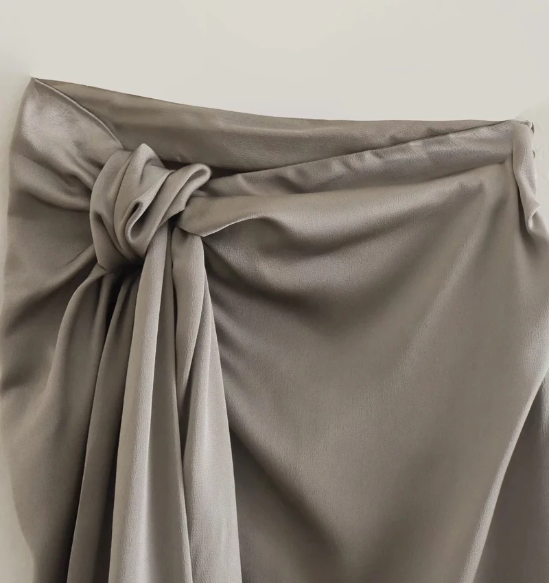 Advbridge Women Knot Wrap Midi Skirt With Ruched Detail