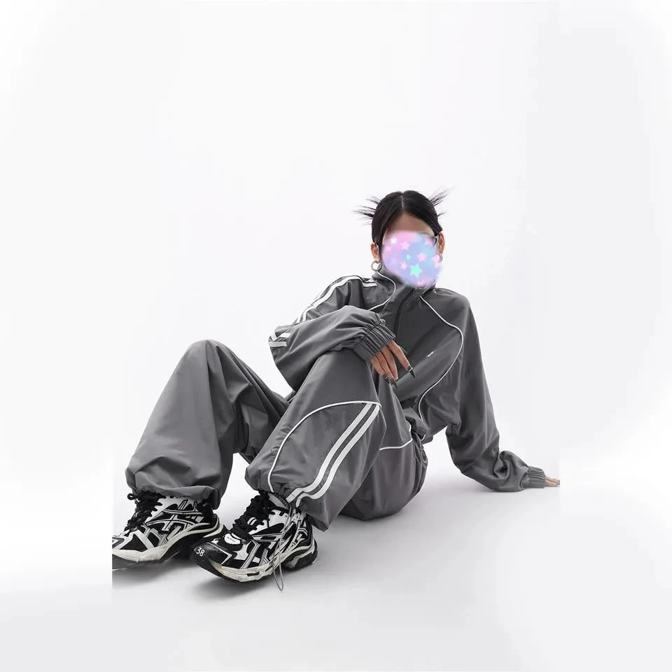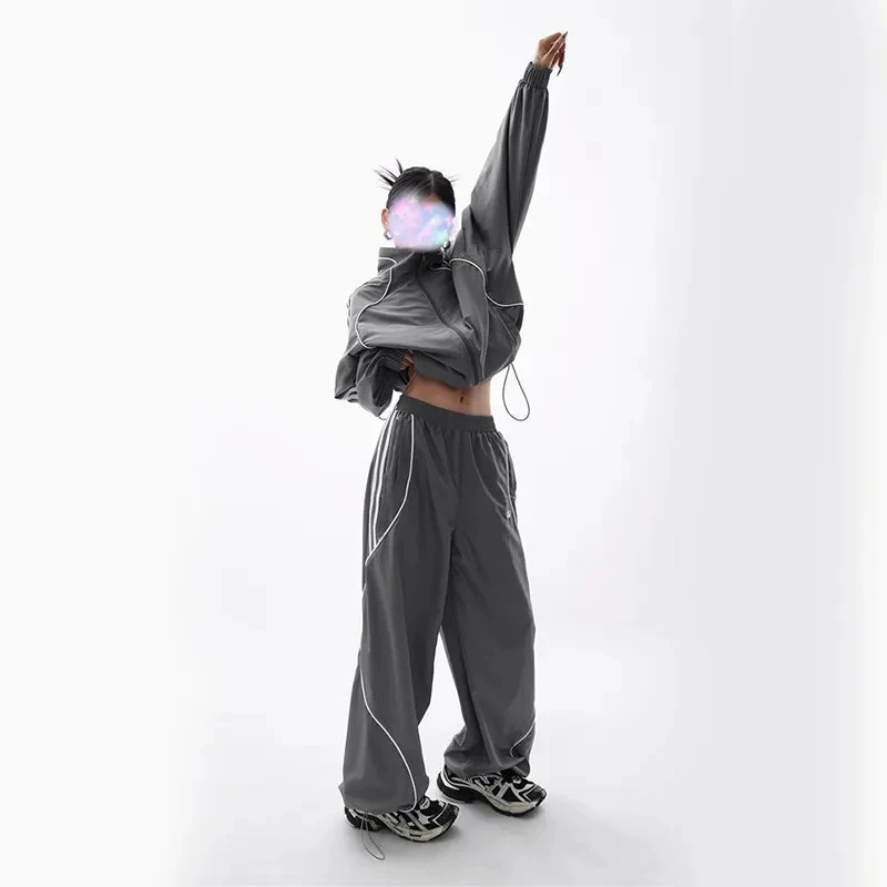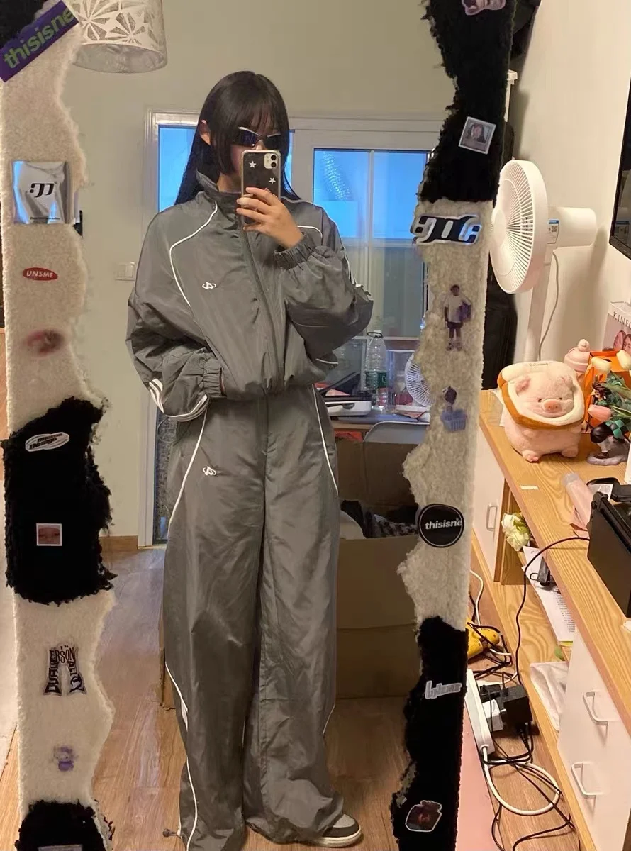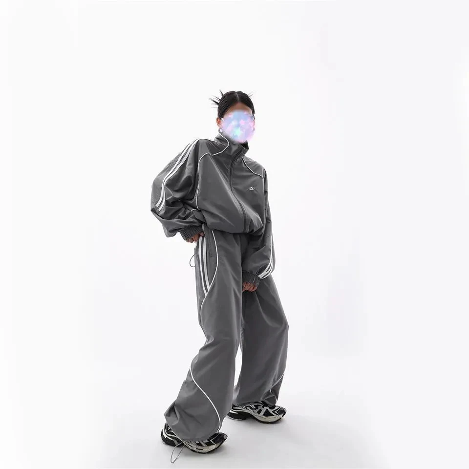 Advbridge Women Loose Pant Jacket Sets Sports Two-Set Streetwear Grey Sport Jacket Loose Sweatpants Ladies Outdoor Joggers Tracksuit