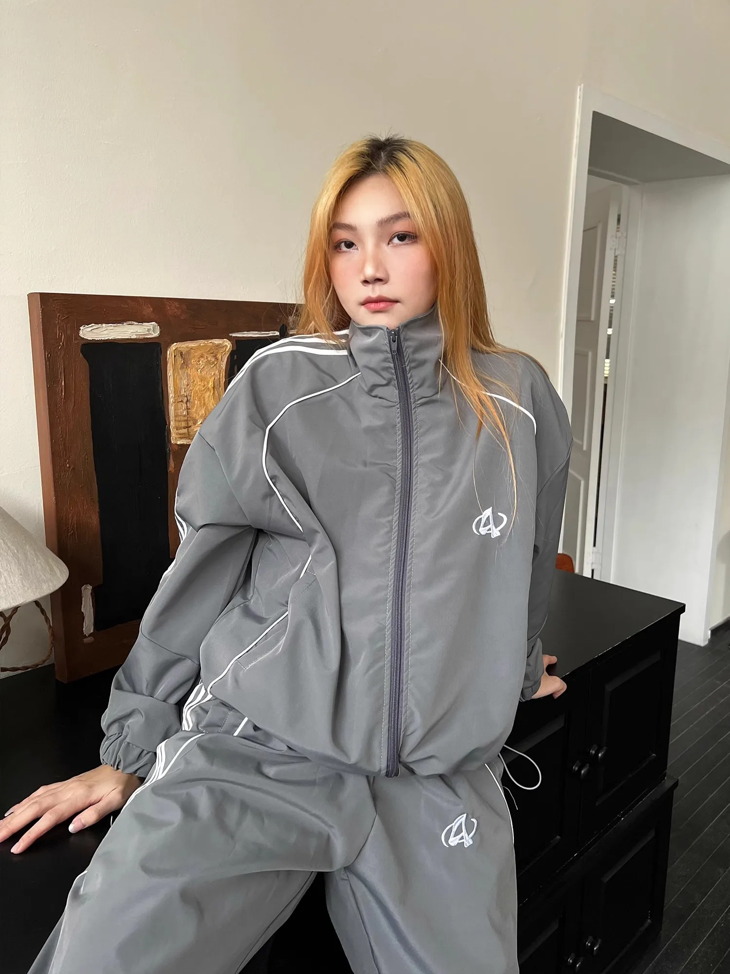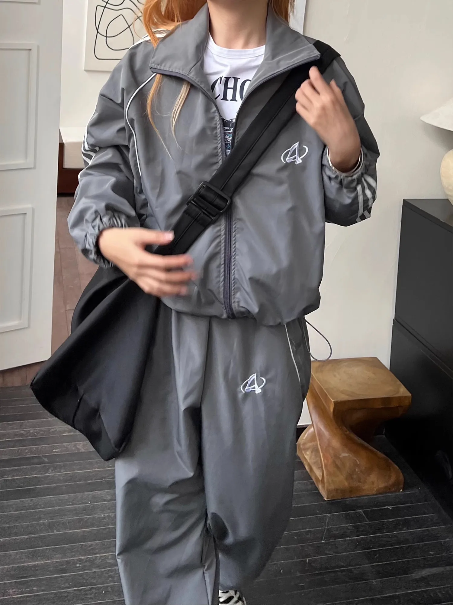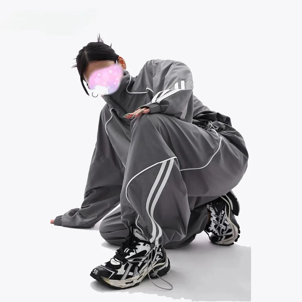 Advbridge Women Loose Pant Jacket Sets Sports Two-Set Streetwear Grey Sport Jacket Loose Sweatpants Ladies Outdoor Joggers Tracksuit