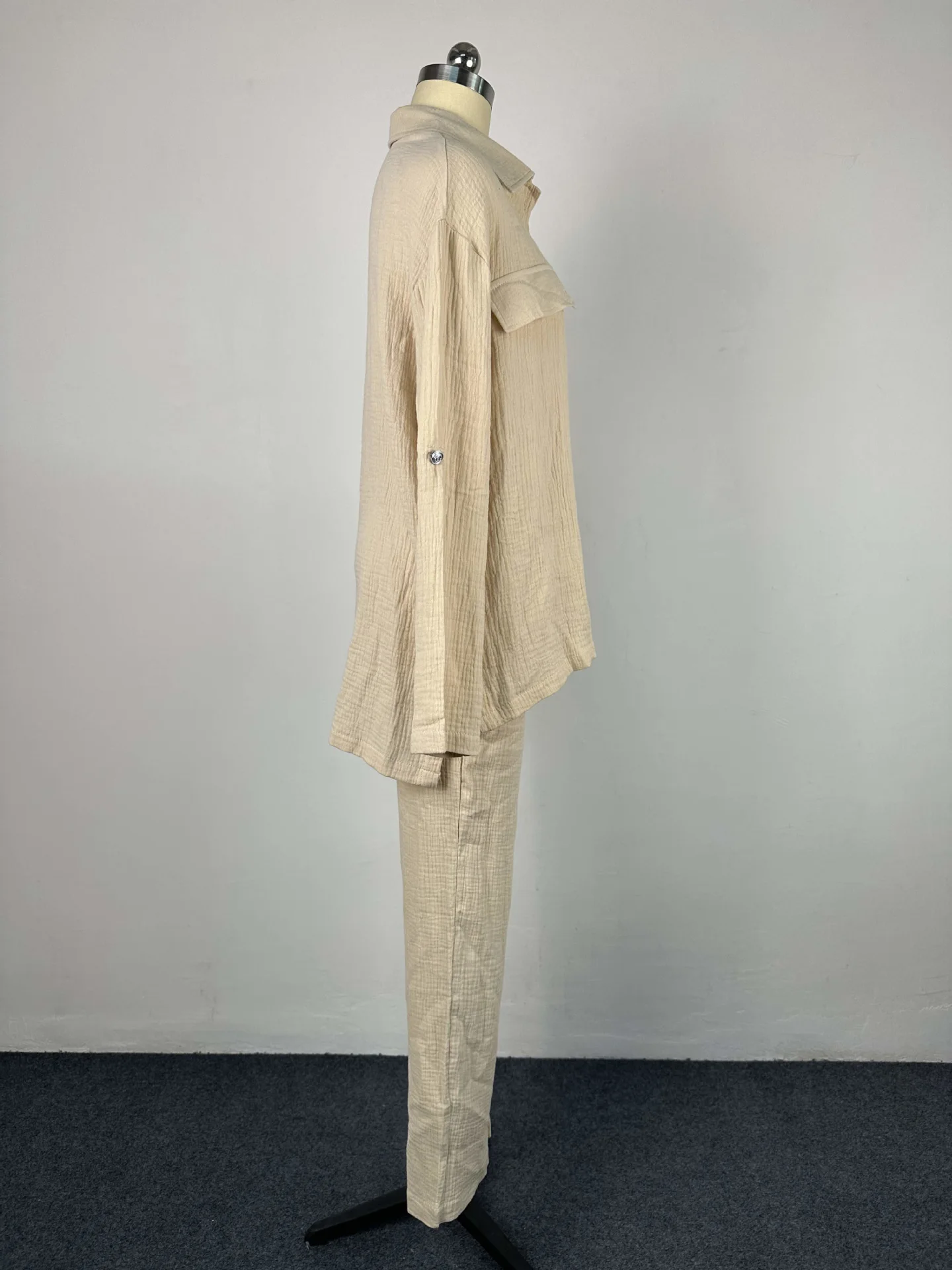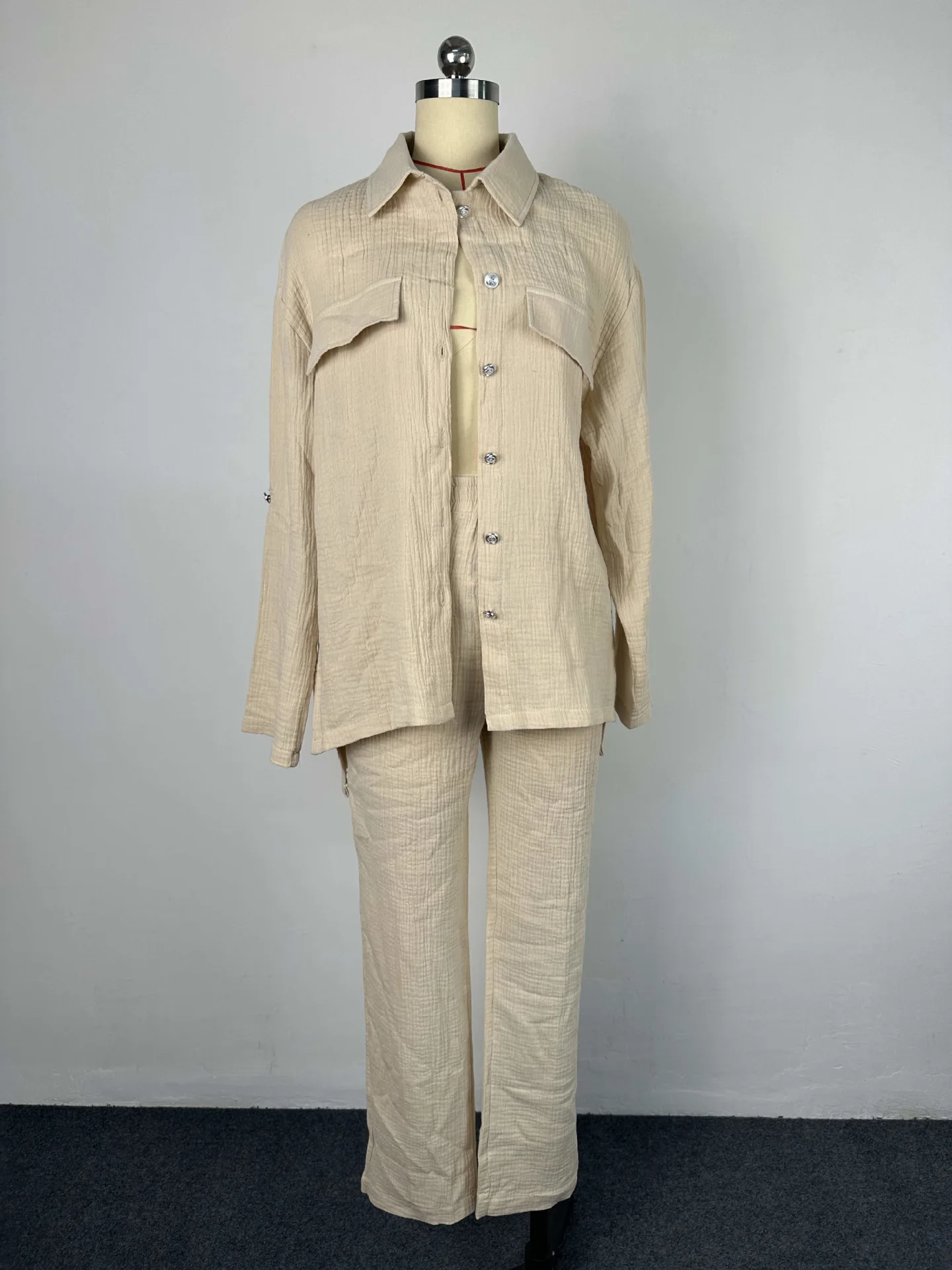 Advbridge Women Pant Sets Long Sleeve Turn Down Collar Button Shirt Loose Wide Leg Trouser Suit Outfits Ladies Two Pieces Set Clothing