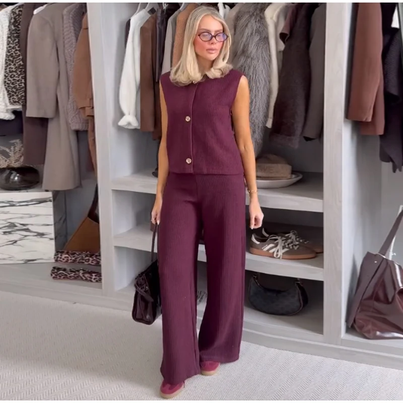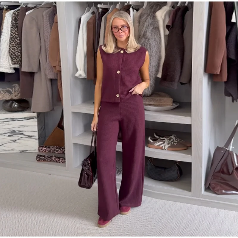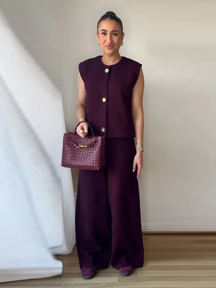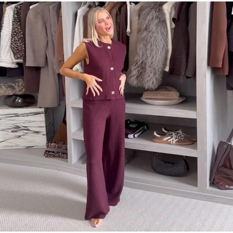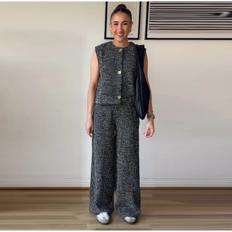 Advbridge Women Pants Set O-neck Knitted Single Breasted Vest Loose Elastic Waist Wide Leg Pants Suit Lady 2025 Spring Female Outfits