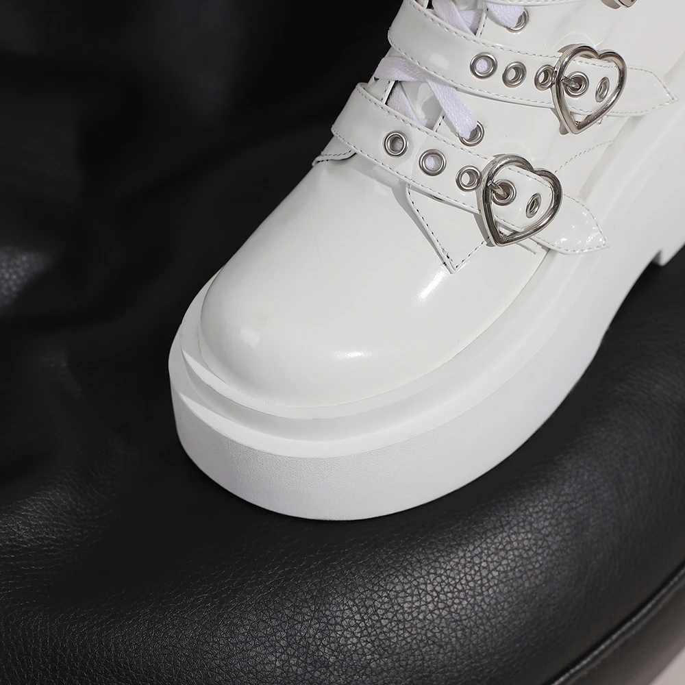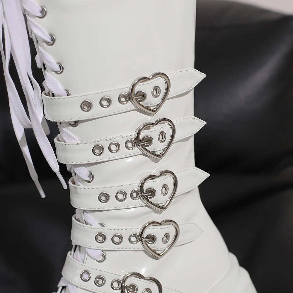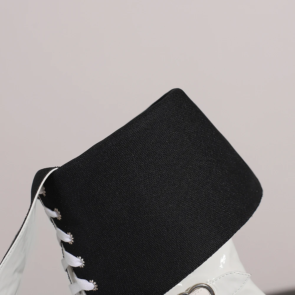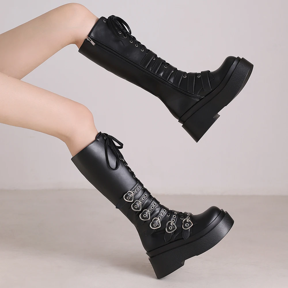 Advbridge Women‘s Thick Bottom Motorcycle Boots Women Punk Knee High Boots Autumn Winter Patent Woman Lace-up Casual Boots Red Size 34-44