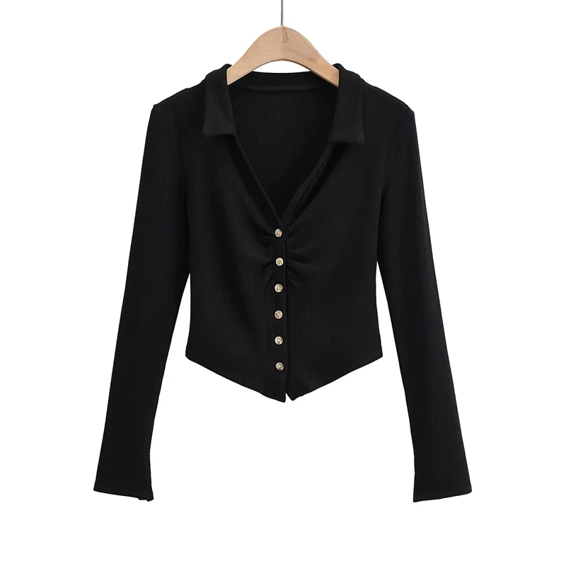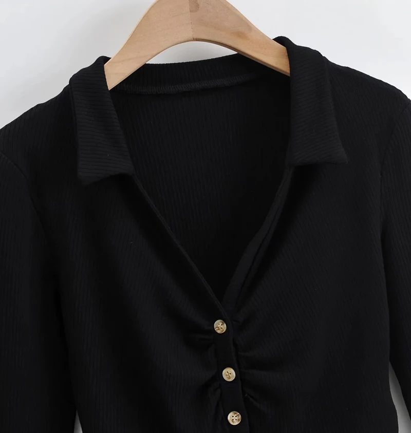 Advbridge - Women Spread Collar Ruched Front Button Through Top With Split Sleeve Detail