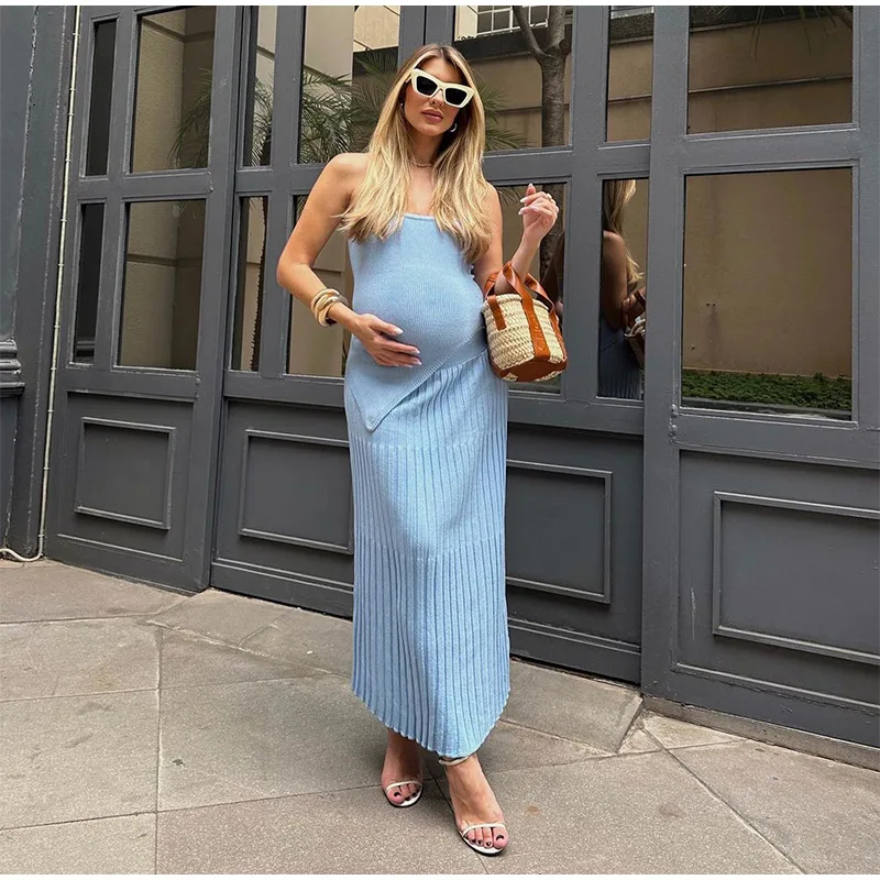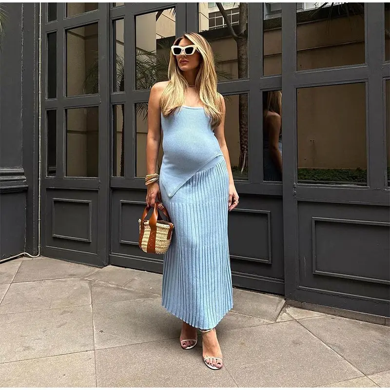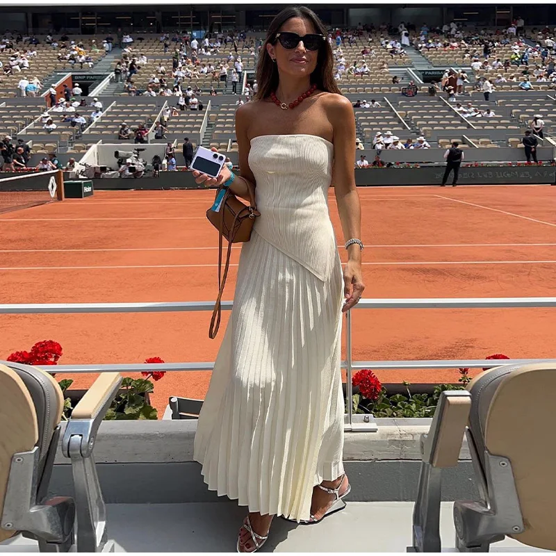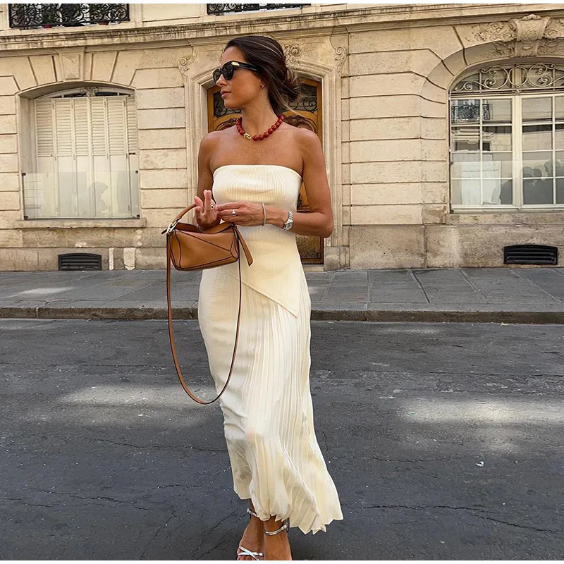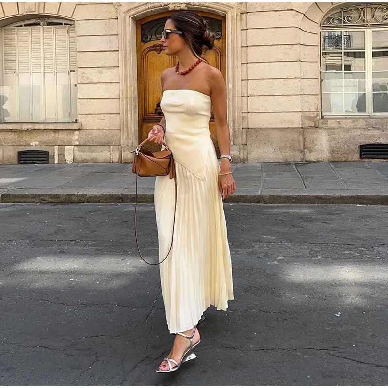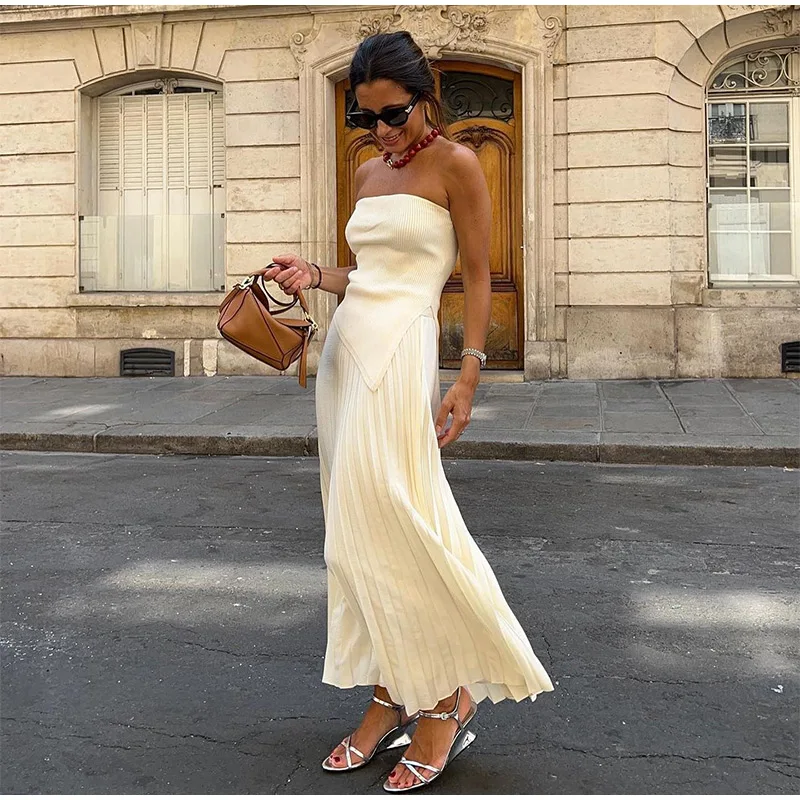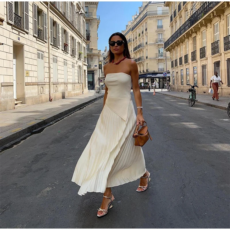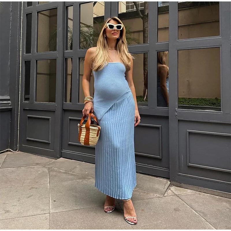 Advbridge - Women Strapless Backless Top And Long Skirt Suit Female Fashion Solid Tops High Waist Skirts Sets Lady Streetwear Spring Suit