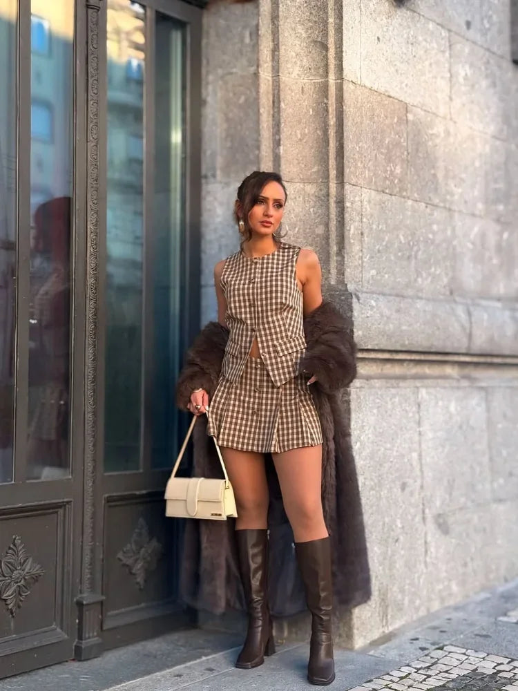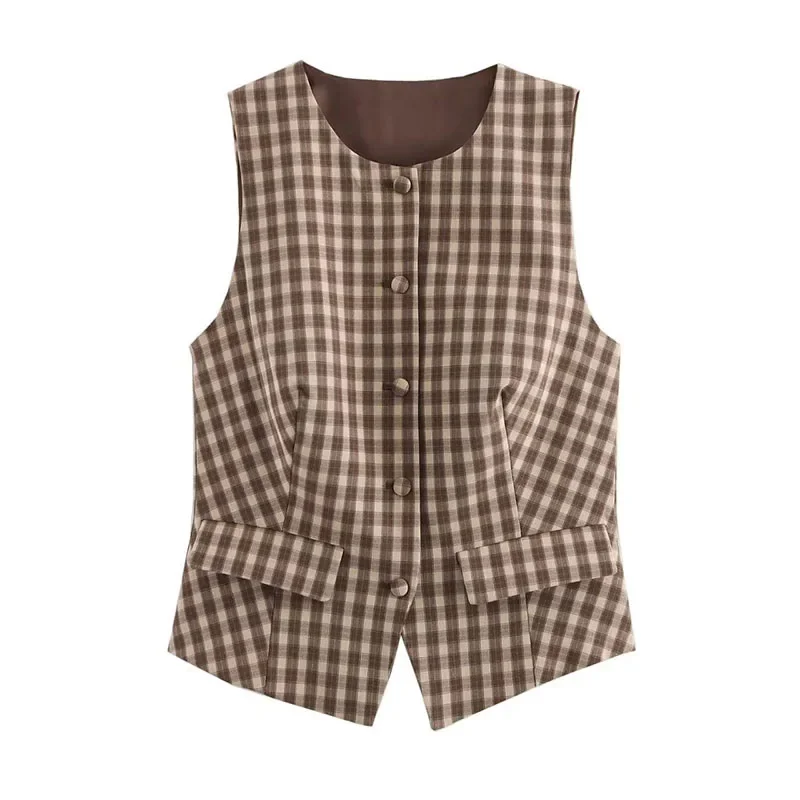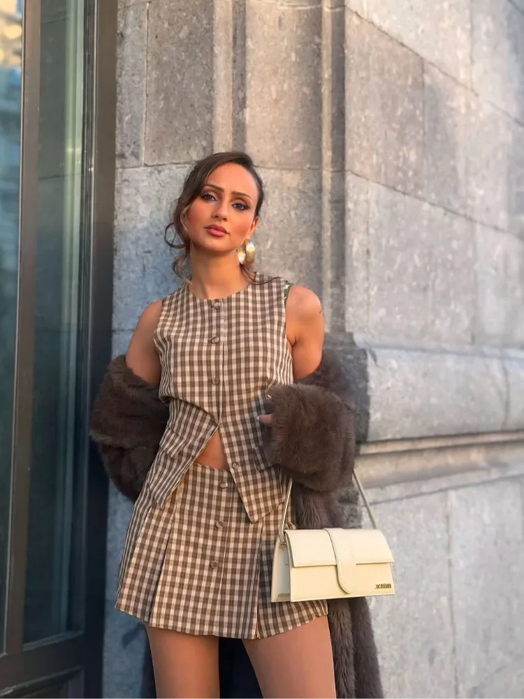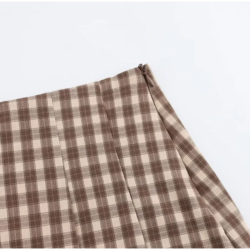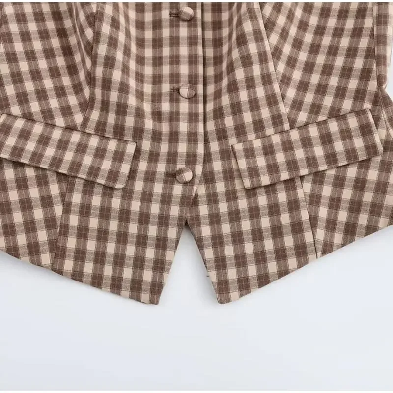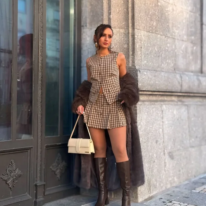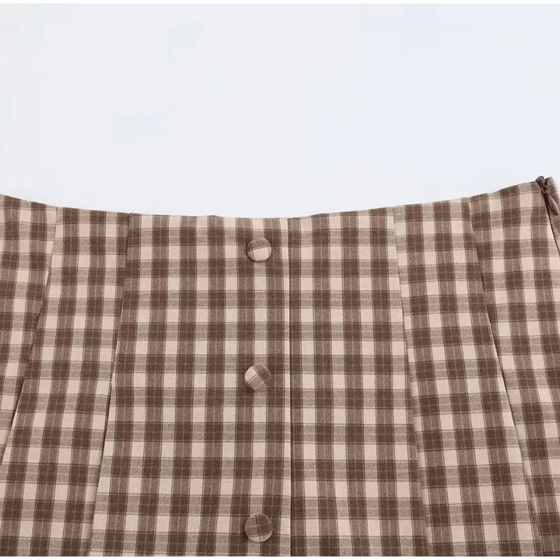 Advbridge Women Vest Mini Skirts Sets Elegant Plaid O-neck Slim Single Breasted Blouse Pleated Skirt Suit Female 2025 Summer Lady Outfits