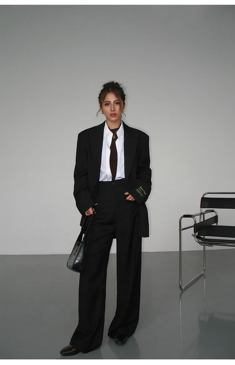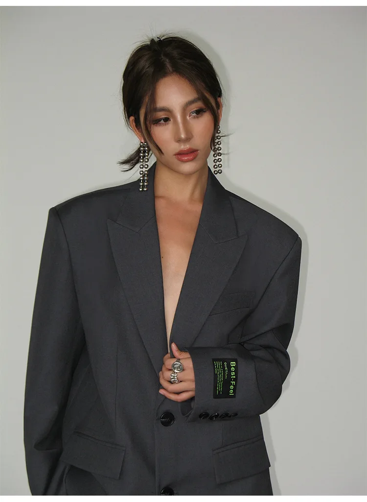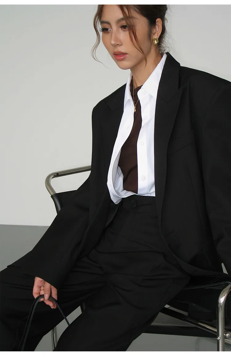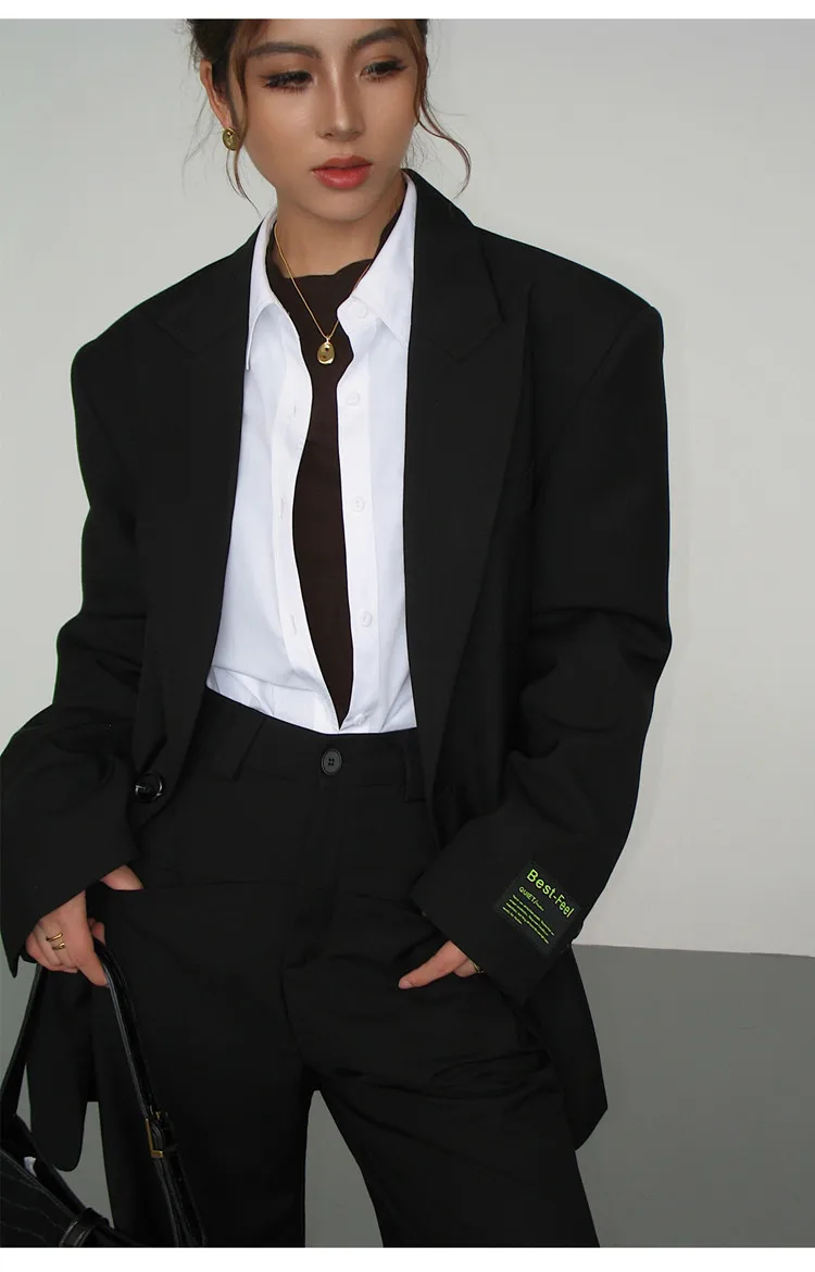 Advbridge Women Wide Shoulder Blazer Casual Loose Suit Jackets Classic Coat Office Lady Clothing Chic Outwear Outfits Female Stylish Tops