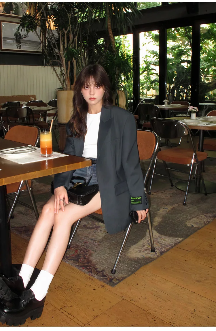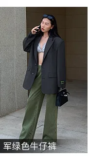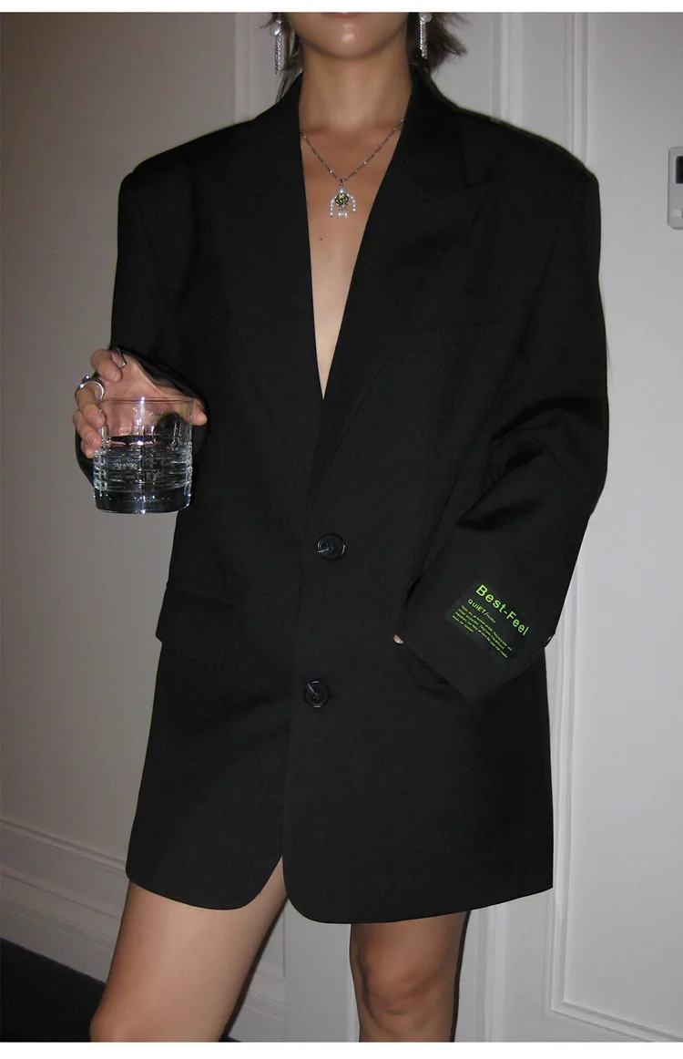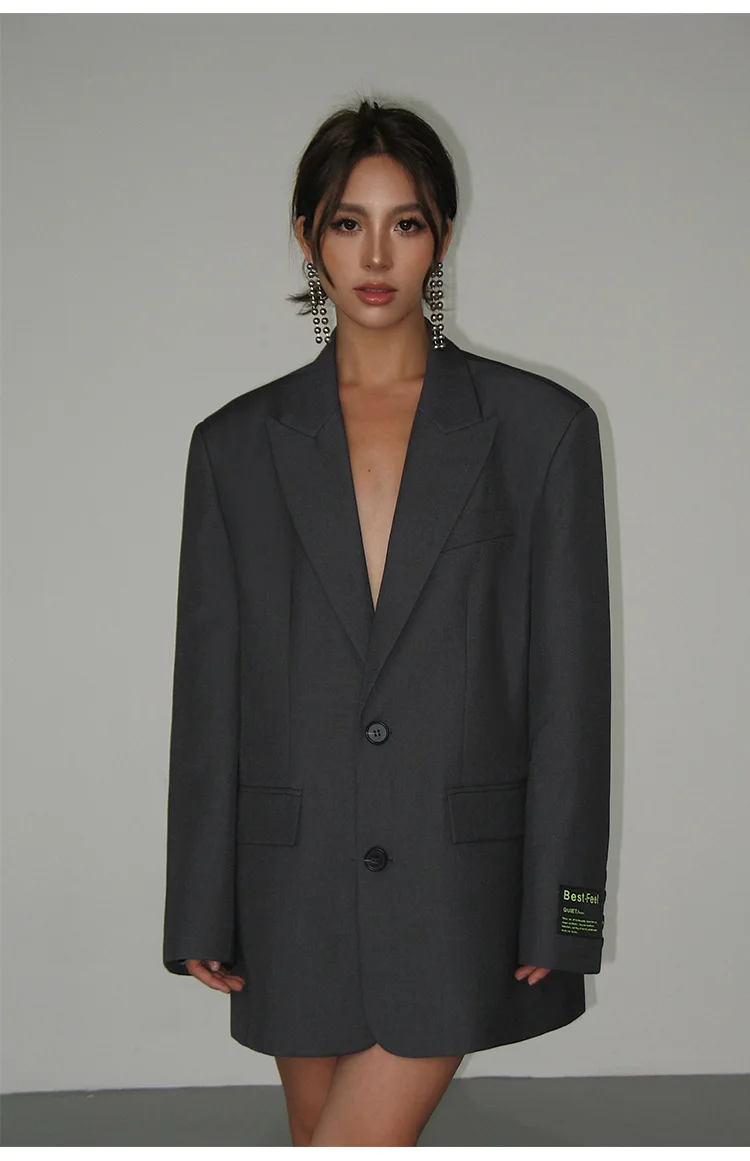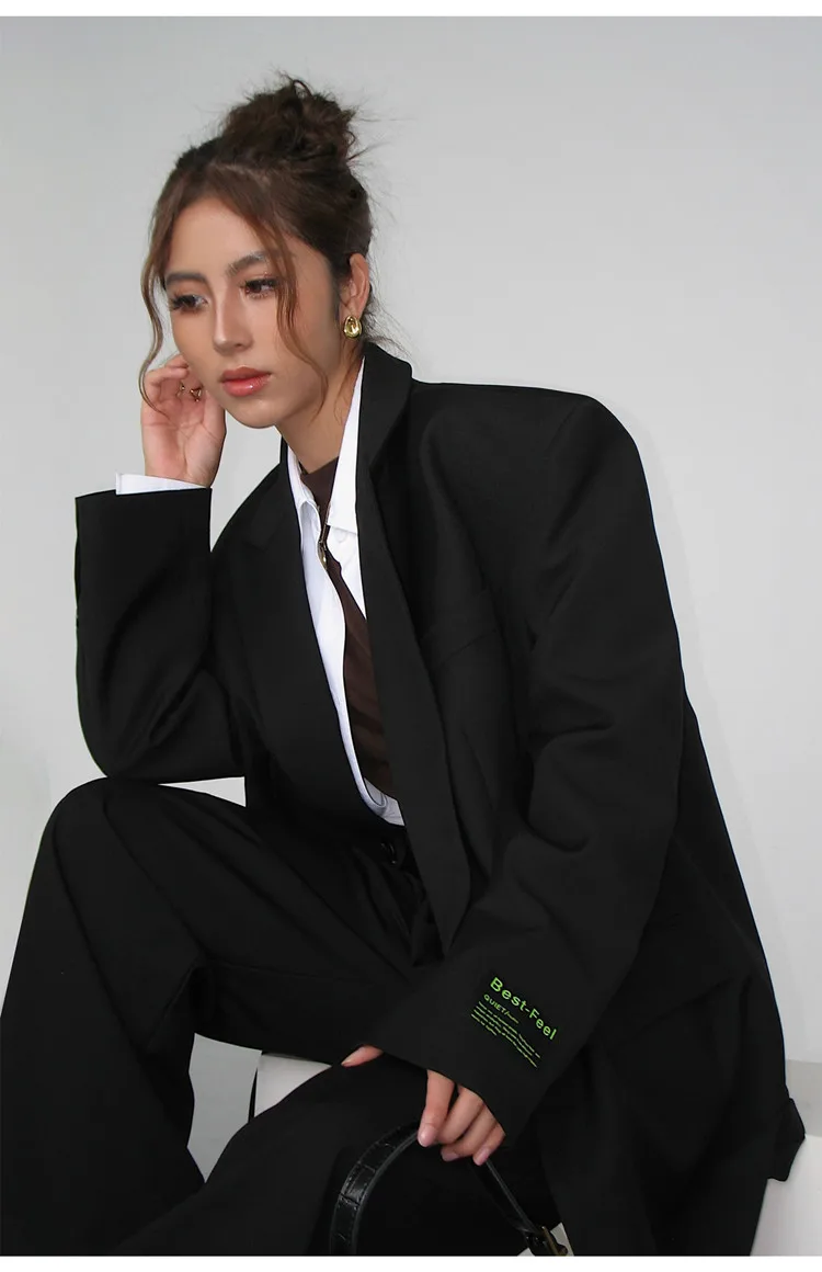 Advbridge Women Wide Shoulder Blazer Casual Loose Suit Jackets Classic Coat Office Lady Clothing Chic Outwear Outfits Female Stylish Tops