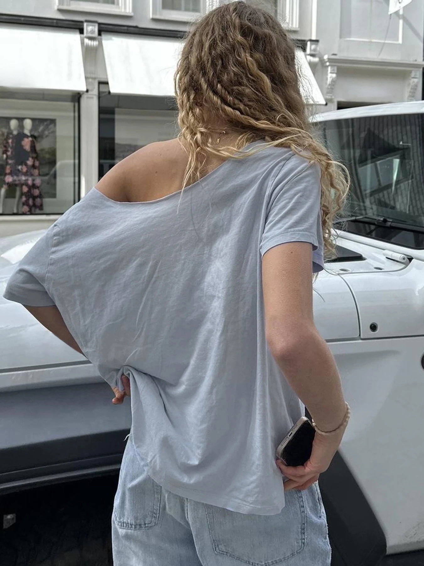 Advbridge Women's Camo No.18 Letter Print Contrast Binding Drop Shoulder Tee Street Hollow Out V Neck Half Sleeve T-shirt Summer