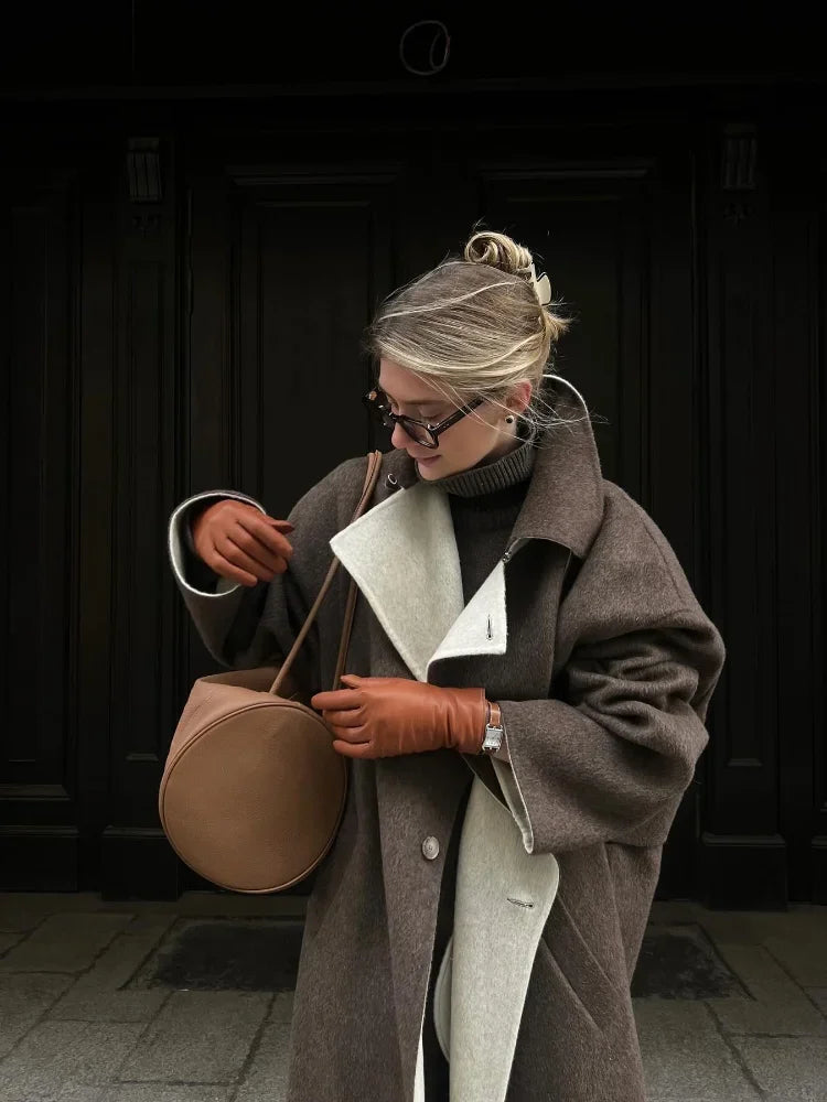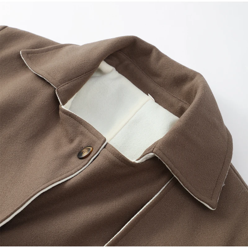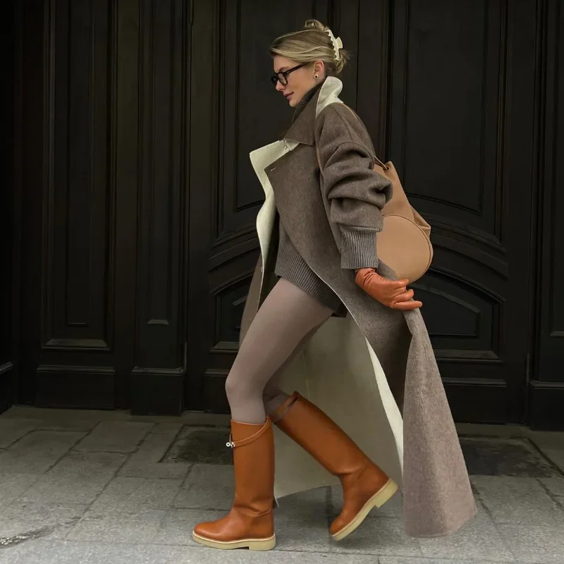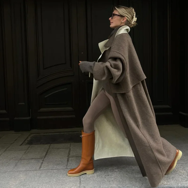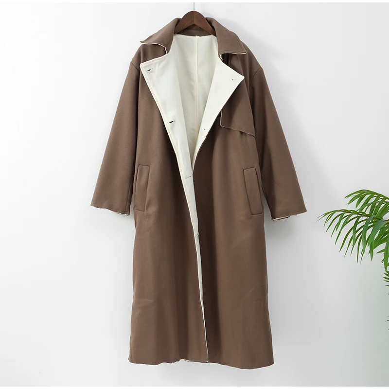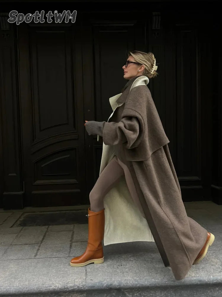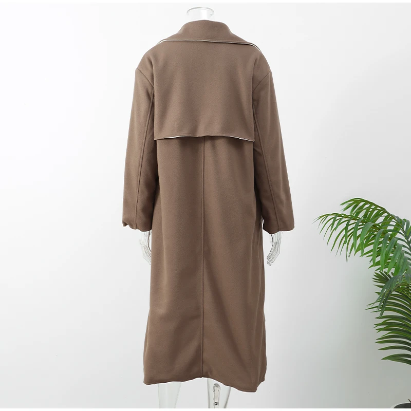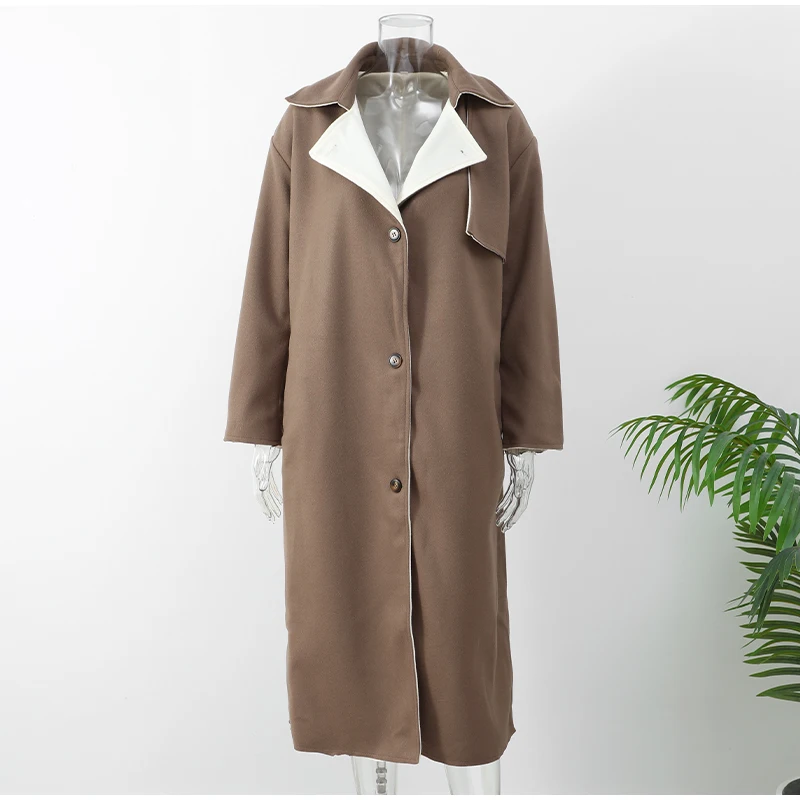 Advbridge Women's Casual Solid Lapel Woolen Coat Single Breasted Pocket Long Sleeved Loose Long Overcoat Autumn High Street Chic Outerwear