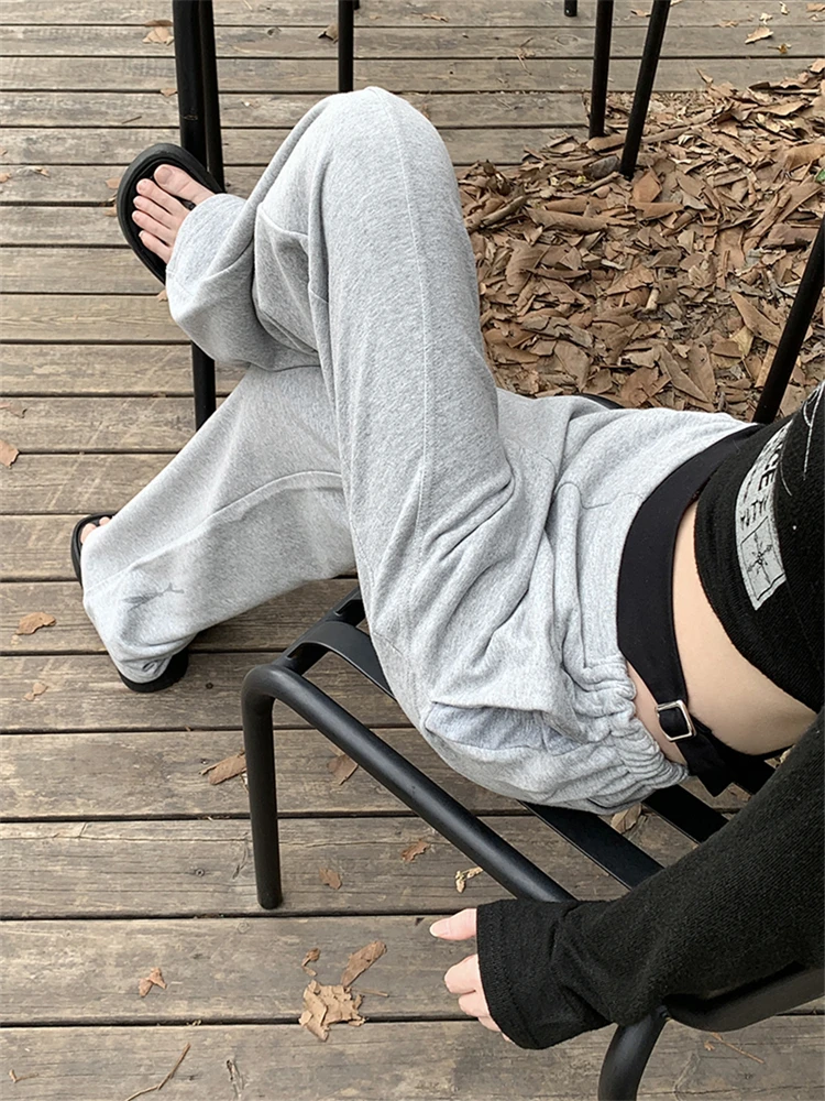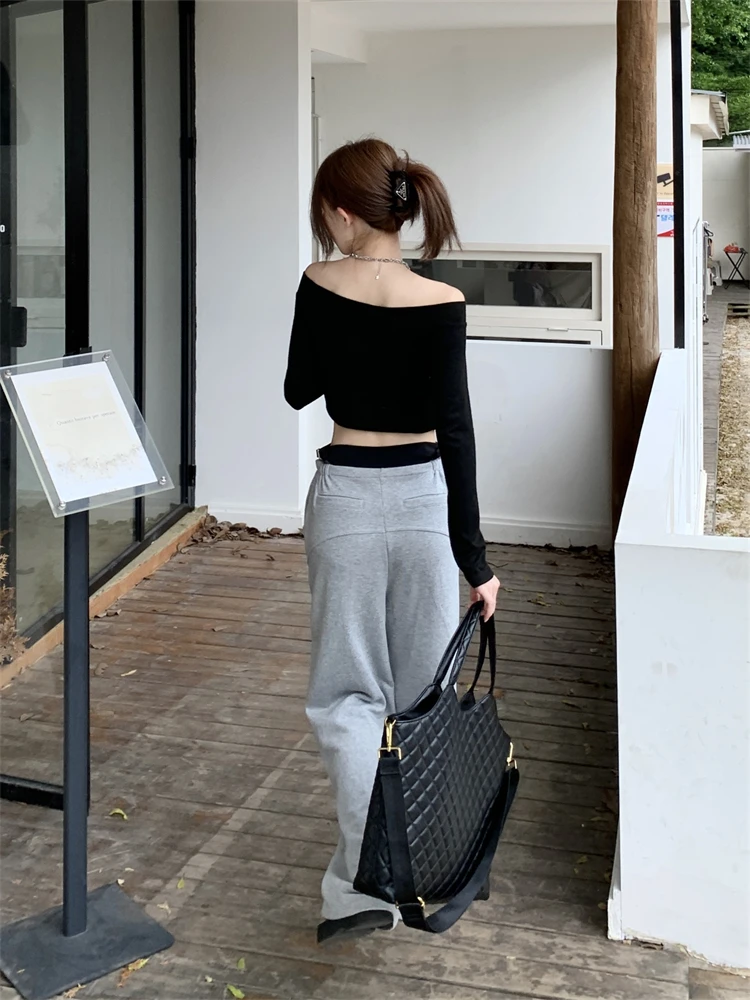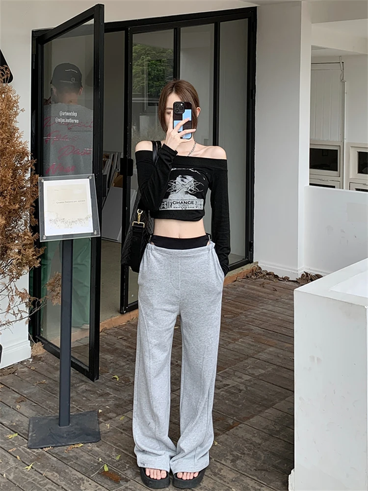 Advbridge Women's Fake Two-piece Design Hollow Out Casual Pants Fashion Girls Temperament Female High Waisted Straight Thin Trousers