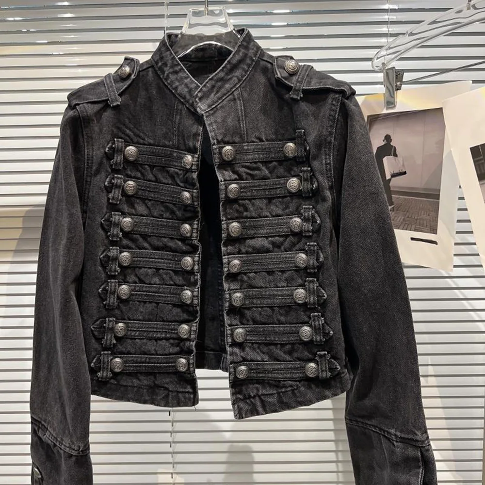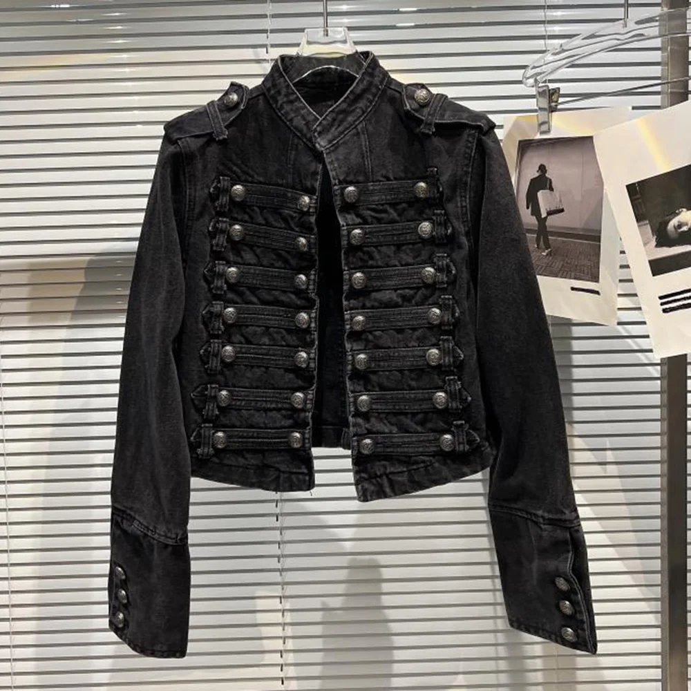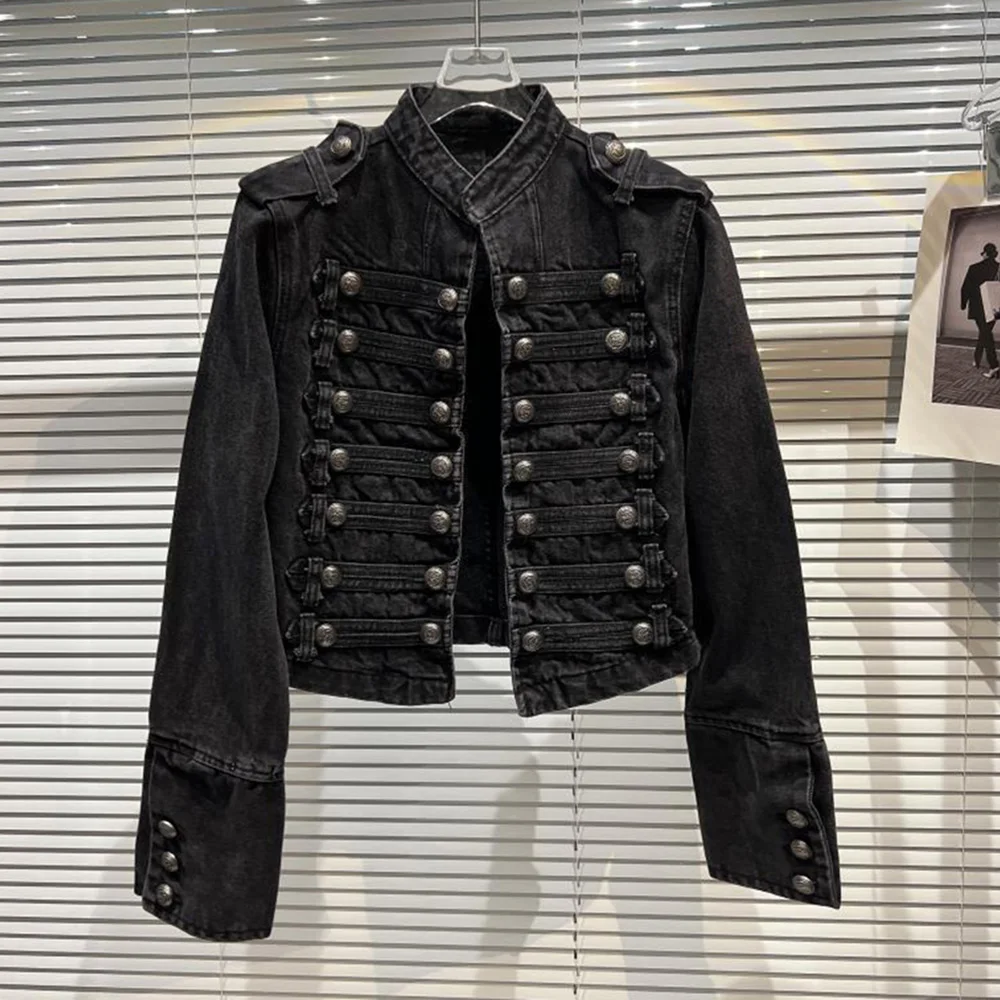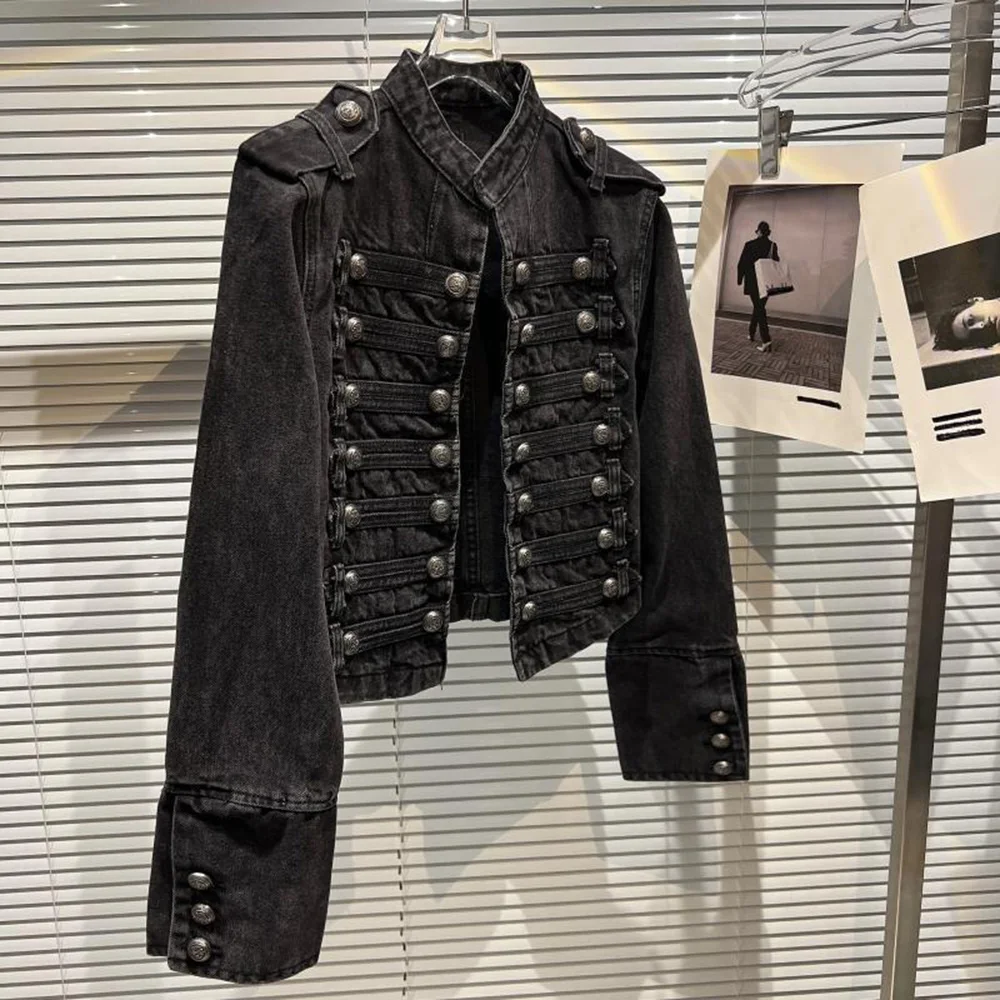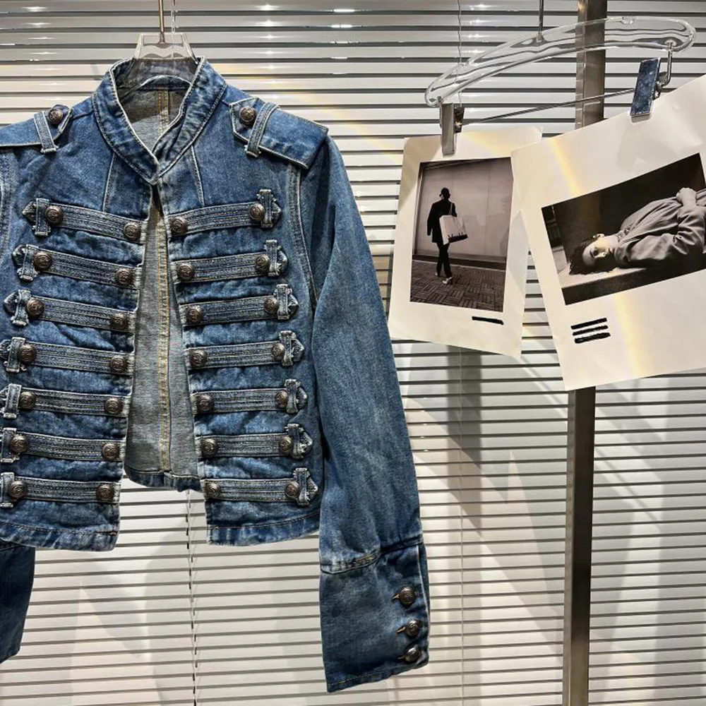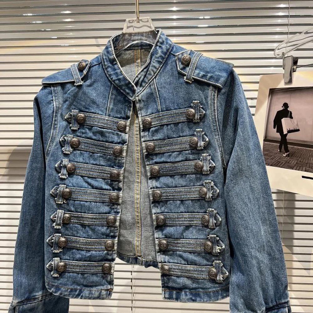 Advbridge Womens Slim Metal Rib Button Design Denim Top Short Style Fashion Outer Washed Jacket Women'S Clothing Spring Autumn New
