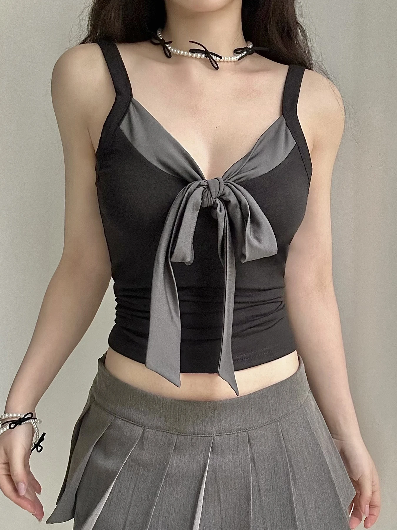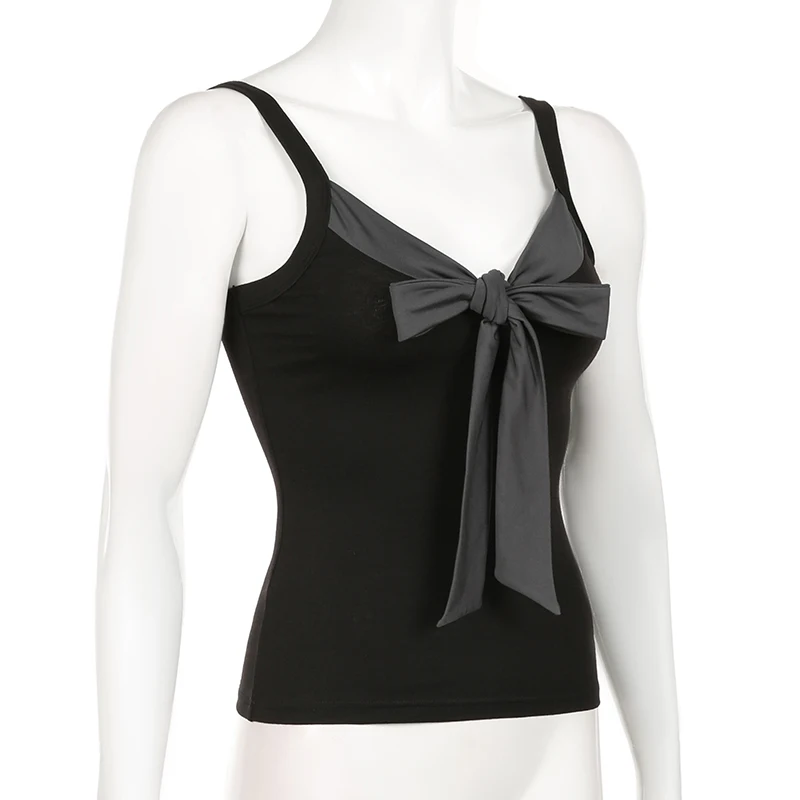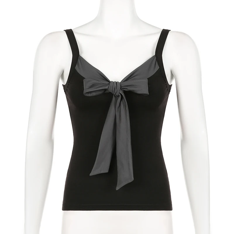 Advbridge Women's Solid Bow Patchwork Cami Top Casual Spaghetti Strap Crop Tops for Summer Ladies Clothes for Daily Wear 2024