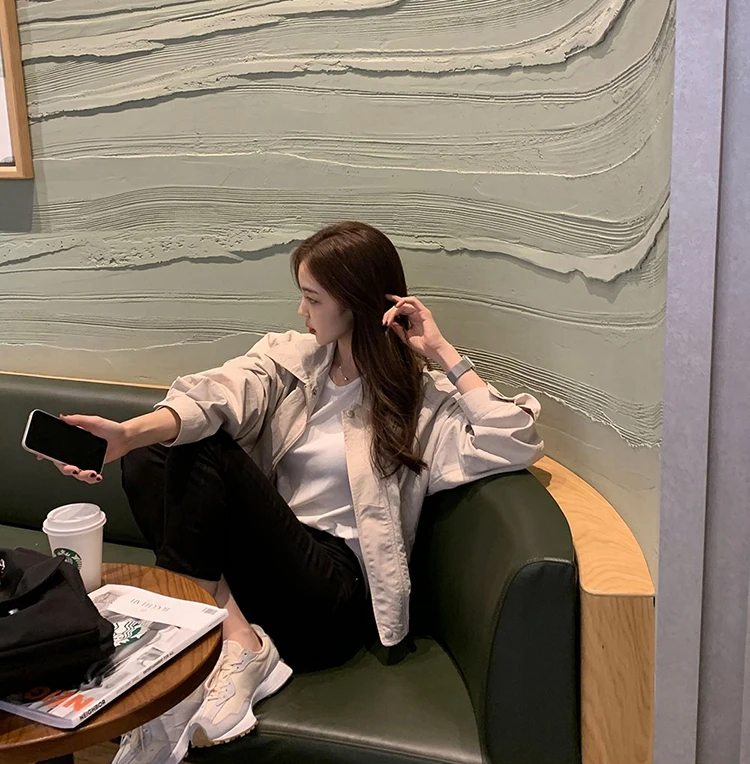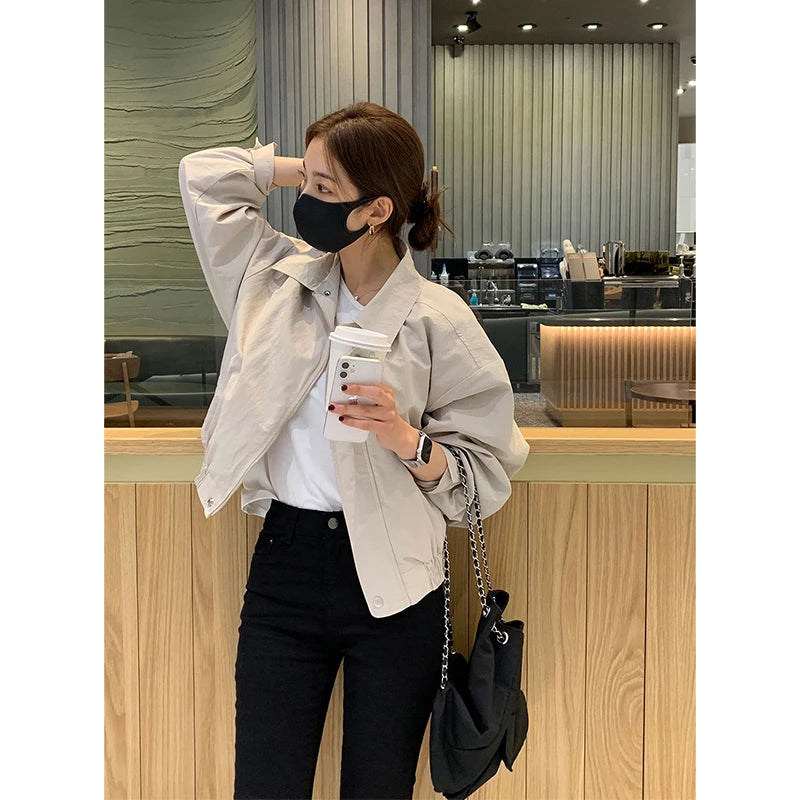 Advbridge Women's Solid Zipper Jacket Fashion Korean Loose Streetwear Button Coat Autumn Winter Lady Casual Simple Cardigan Outerwear