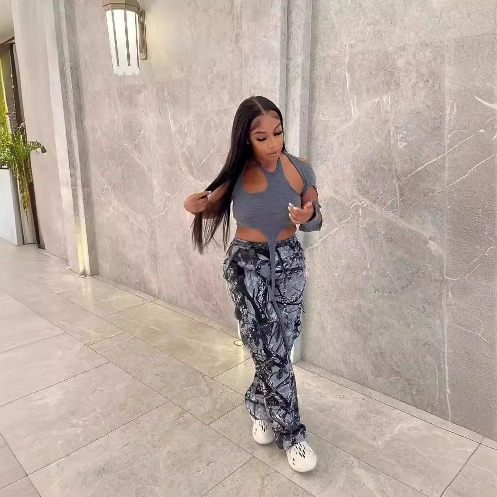 Advbridge Y2k American Retro Jeans for Women Washed Camouflage Pleated Overalls Street Wear Loose Mid High Waist Jeans for Women