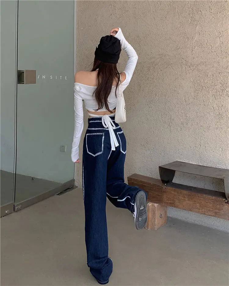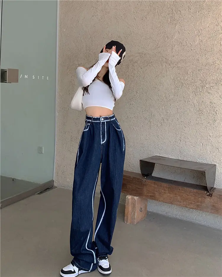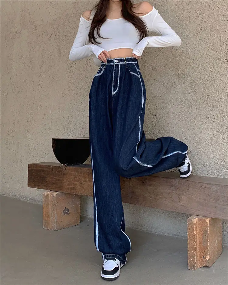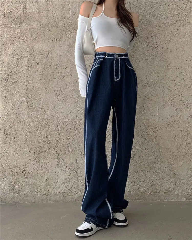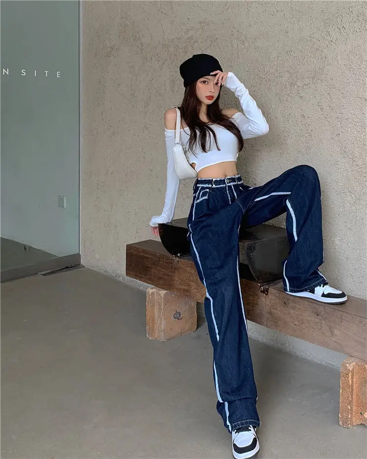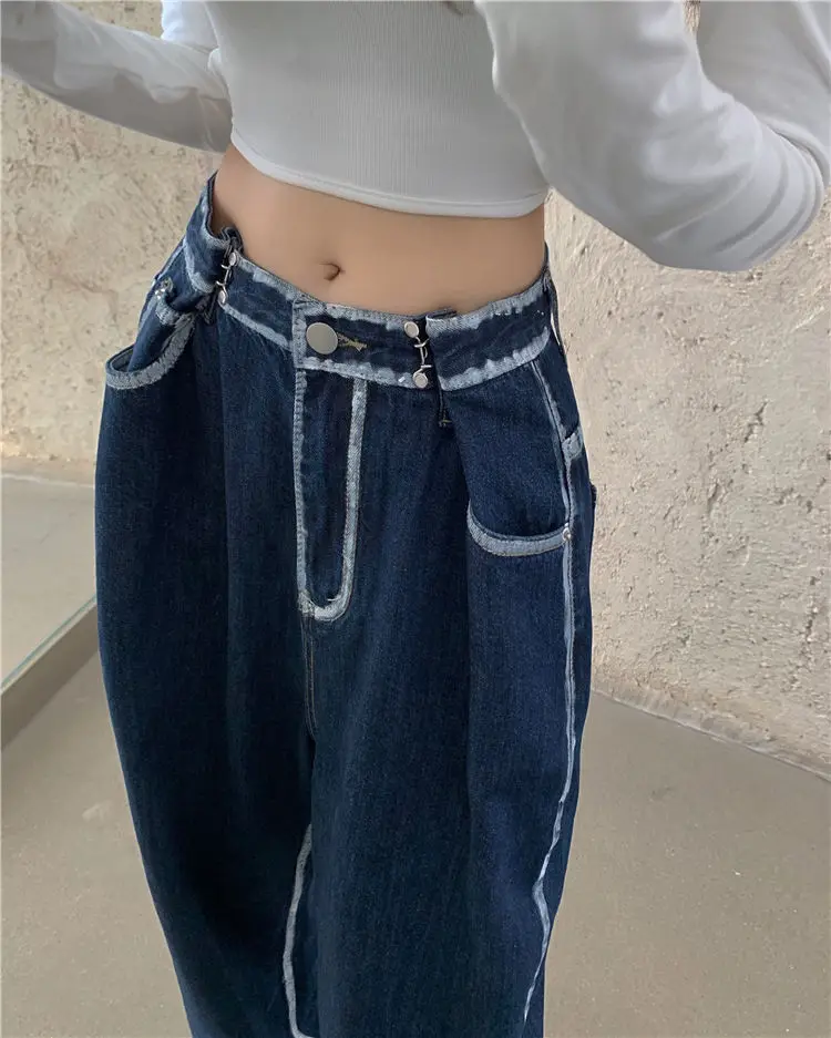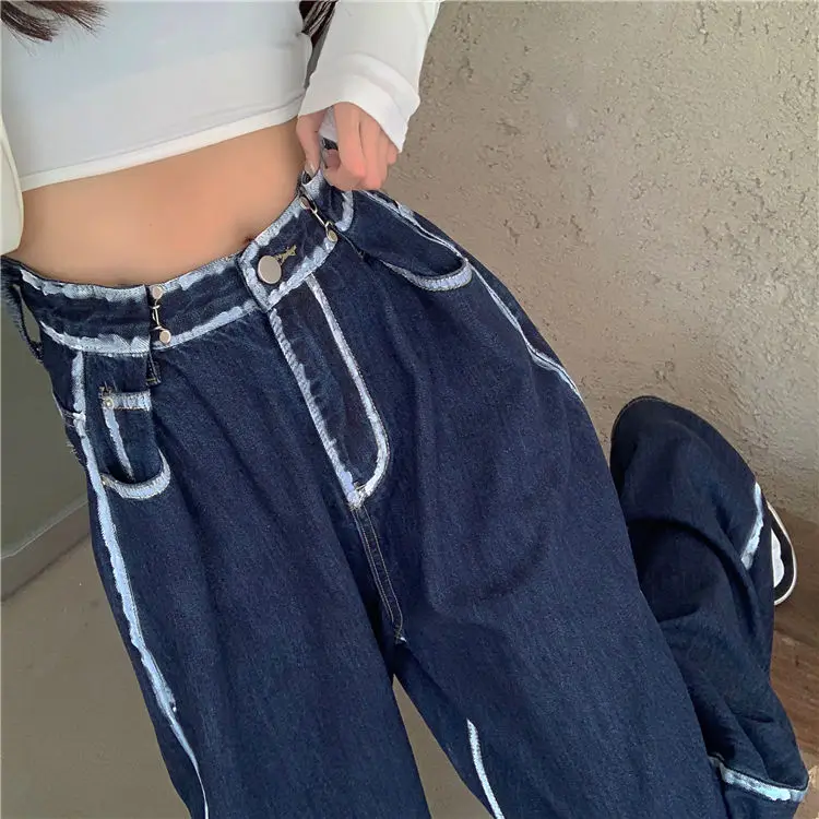 Advbridge Y2K Dark Blue brown High Waist Streetwear Open Line Decoration Jeans Harajuku Cargo Jeans Women Pants Straight wide leg jeans