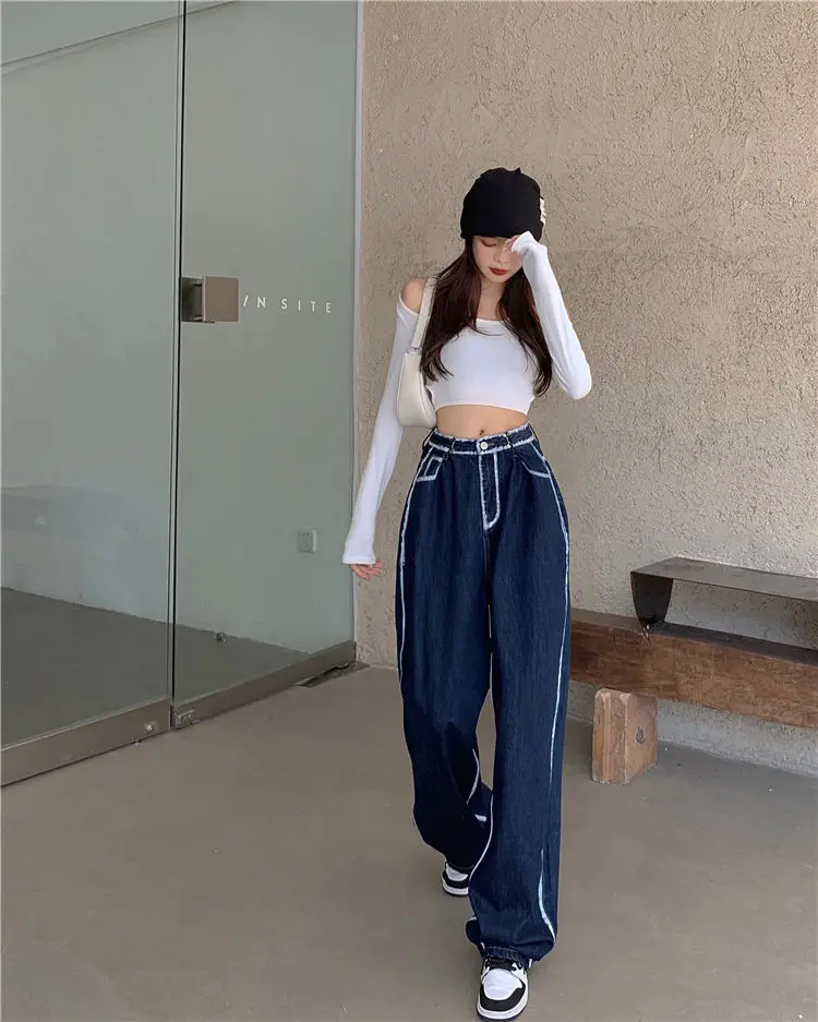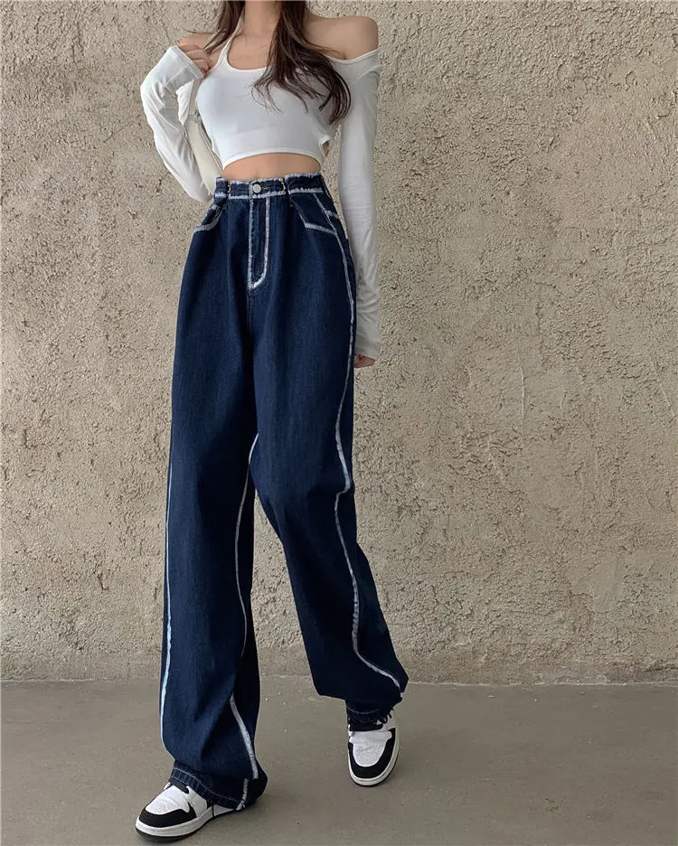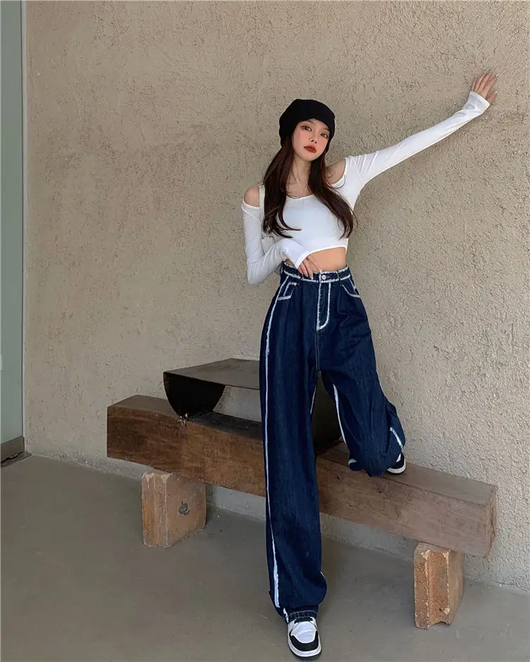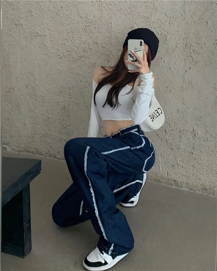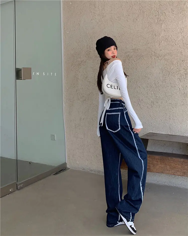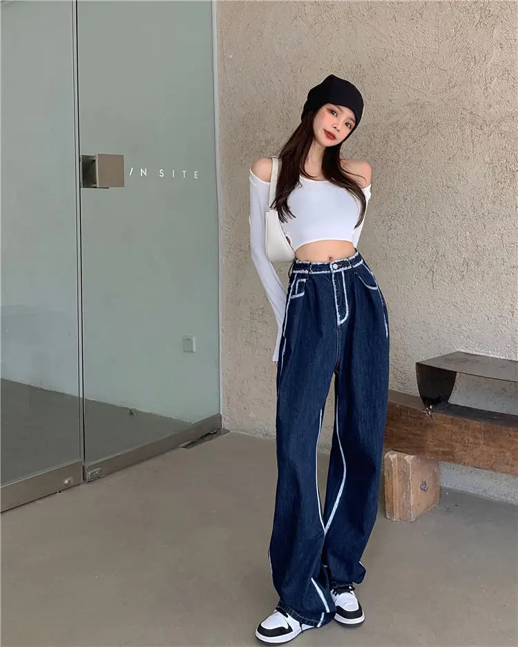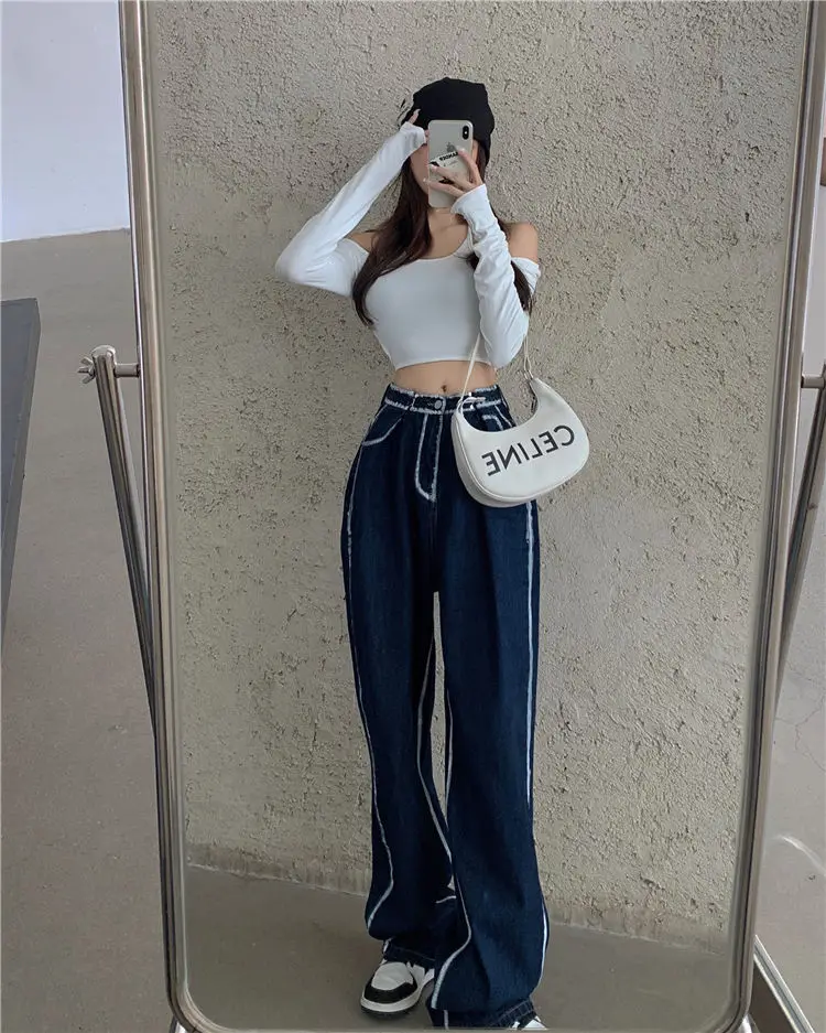 Advbridge Y2K Dark Blue brown High Waist Streetwear Open Line Decoration Jeans Harajuku Cargo Jeans Women Pants Straight wide leg jeans