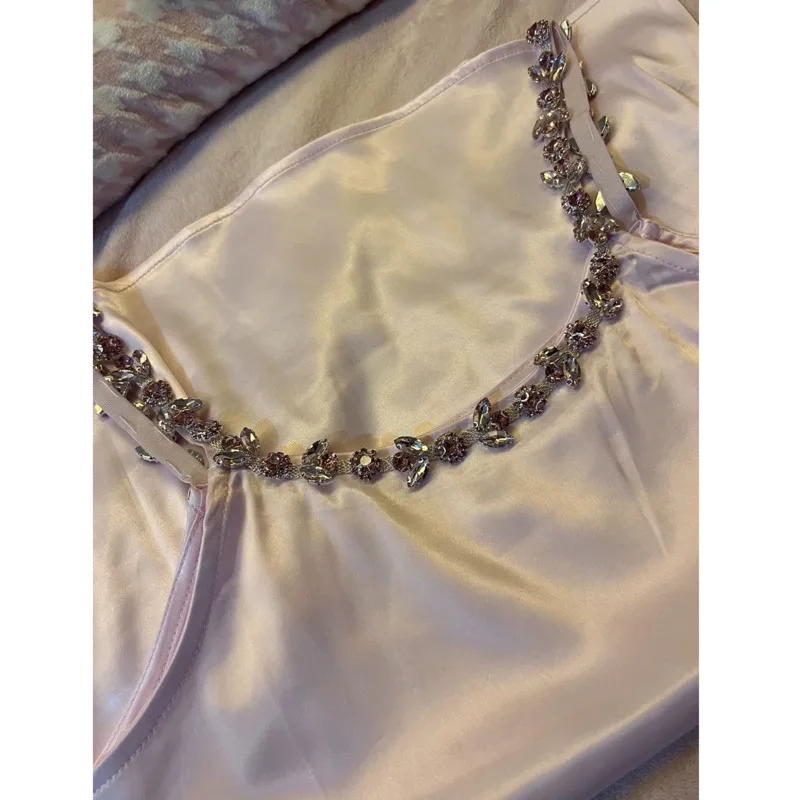 Advbridge Y2k Diamonds Pink Slim Tank Top 2024 New Sexy Sleeveless Solid Camis Shirt Kawaii Lolita Crop Top Casual Sling Shirts For Women