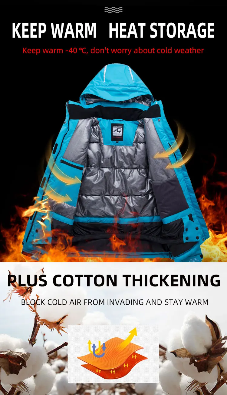 Advbridge New Thermal Winter Ski Suit Men Women Windproof Waterproof Skiing and Snowboarding Jacket Pants Suit Male Snow Costume Wear