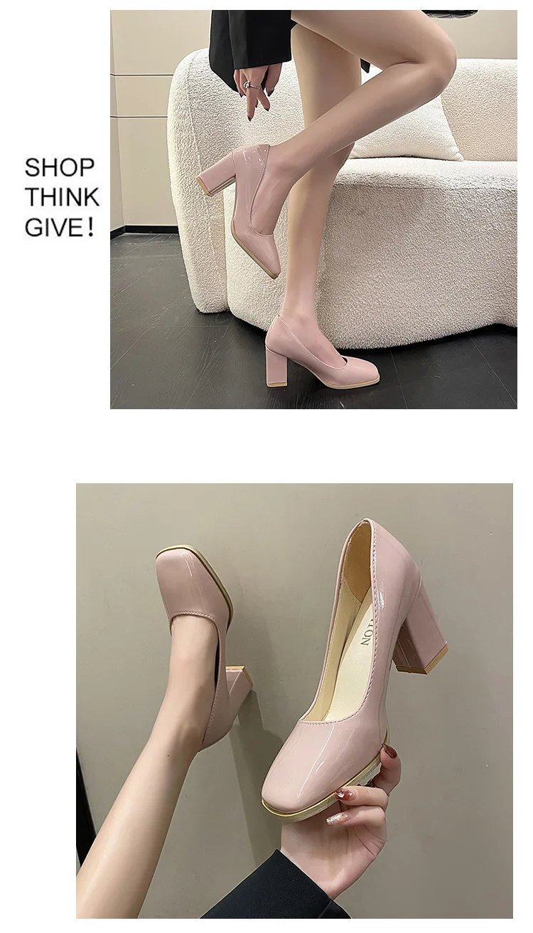 ADVBRIDGE - New Retro Pumps Women Temperament Square Toe Thick Heel Ladies Dress Shoes High-heeled OL Fashion High Heels Pumps Plus Size 43
