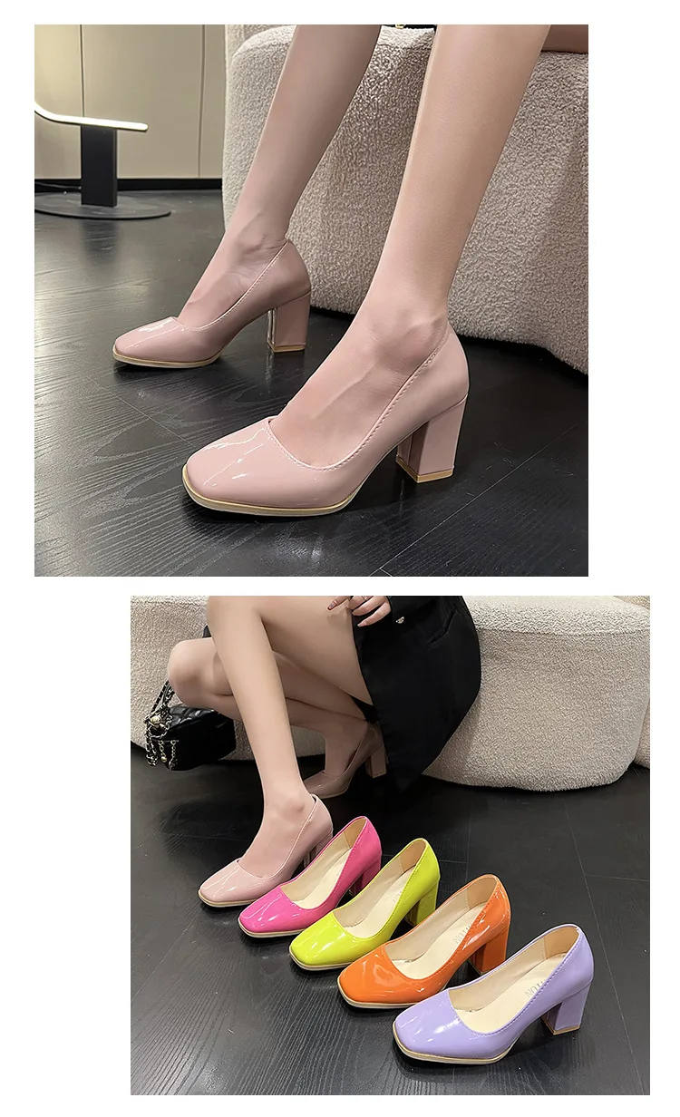Advbridg New Retro Pumps Women Temperament Square Toe Thick Heel Ladies Dress Shoes High-heeled OL Fashion High Heels Pumps Plus Size 43