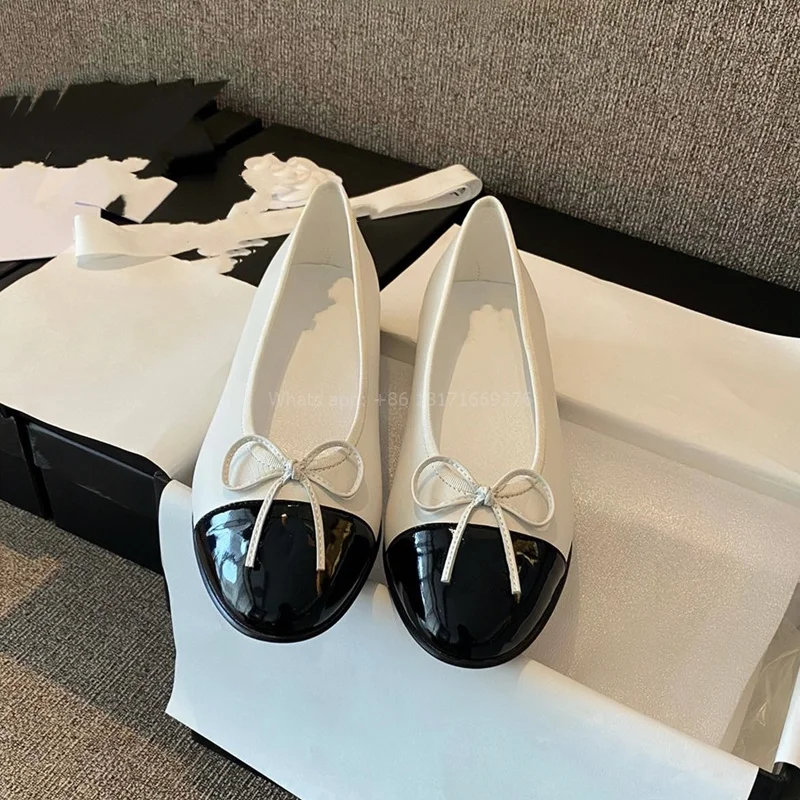Advbridge Bowtie Mary Jane Round Toe Flats Ballet Shoes Dress Slip on Luxury Leather Patchwork Pumps Lady Fall 2024 Women Casual Shoes