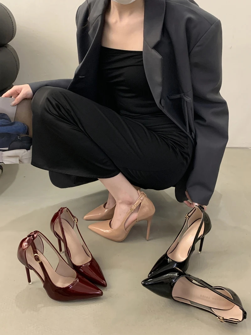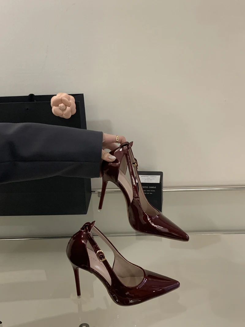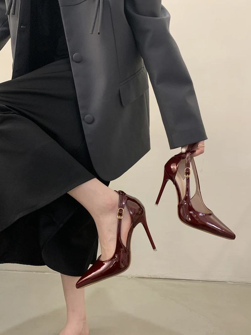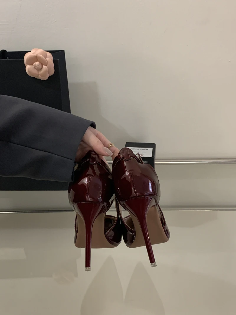 ADVBRIDGE - Burgundy Heels 11cm Ladies Party Shoes Black Patent Leather Stiletto High Heels Classy Dress Shoes Women Summer Pumps Damen